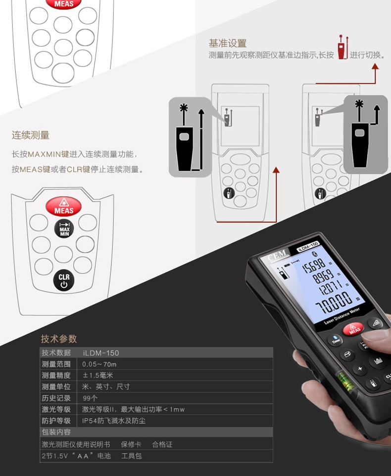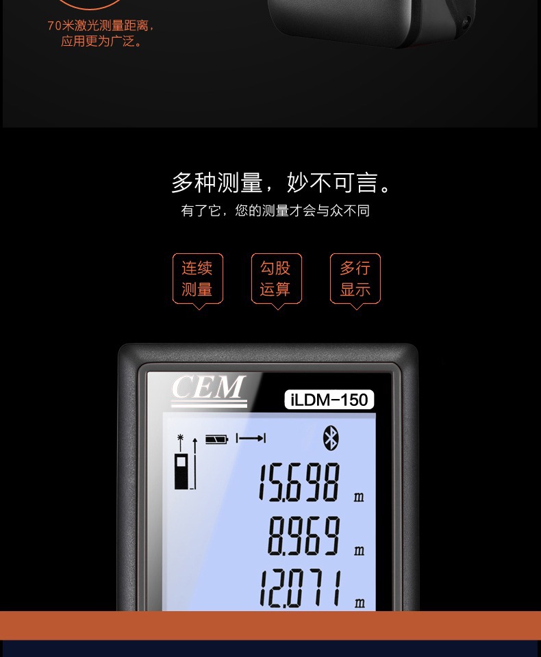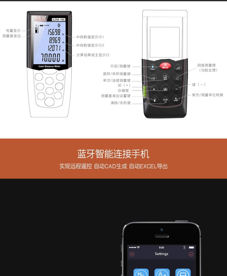 CEM Huasheng Chang Электронная линейка интеллектуальный bluetooth инфракрасный дальномер лазерный дальномер с высокой точностью iLDM-150