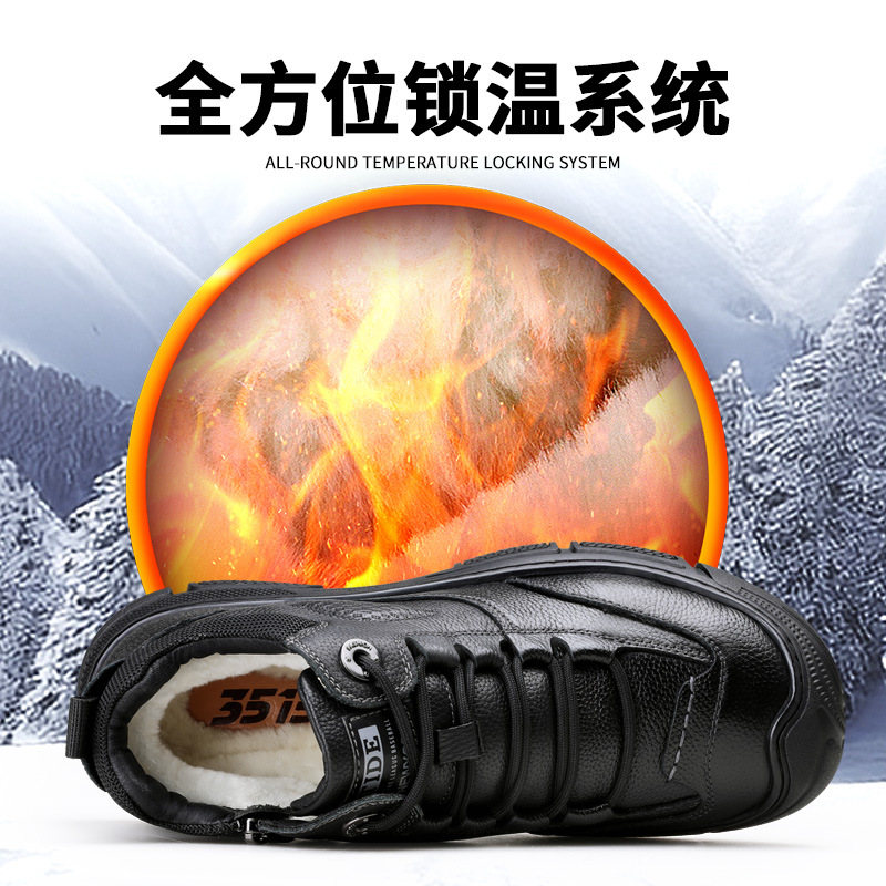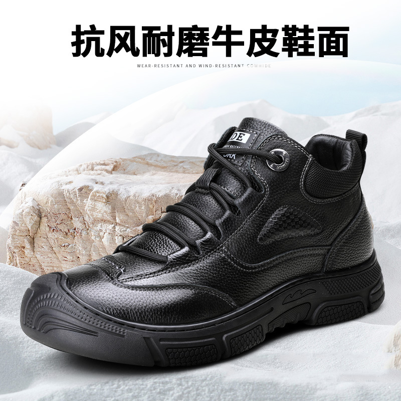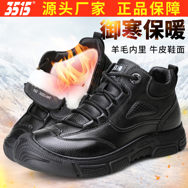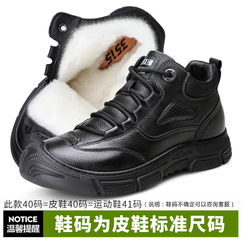 Jihua 3515 сильный мужская зимняя теплая шерстяная повседневная кожаная обувь нескользкая и износостойкая высокая северо-восточная толстая хлопковая обувь