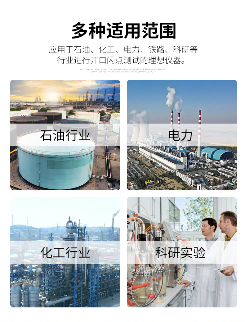 В основном используется для определения более низких закрытых точек вспышки, таких как фармацевтика, пестициды и нефтяная продукция, особенно легковоспламеняющиеся продукты.