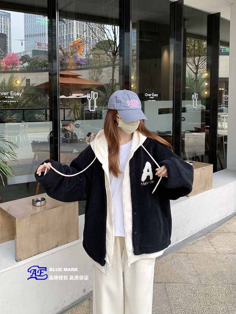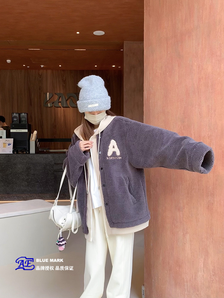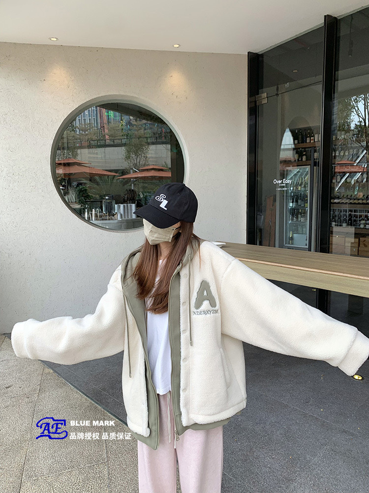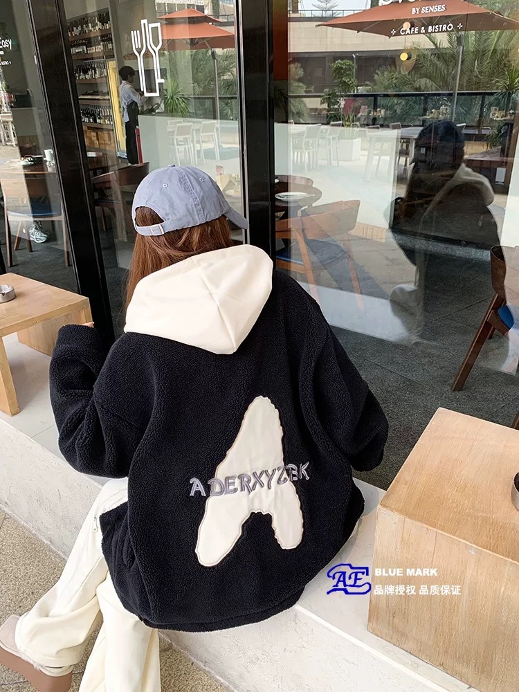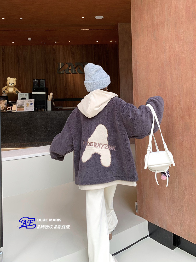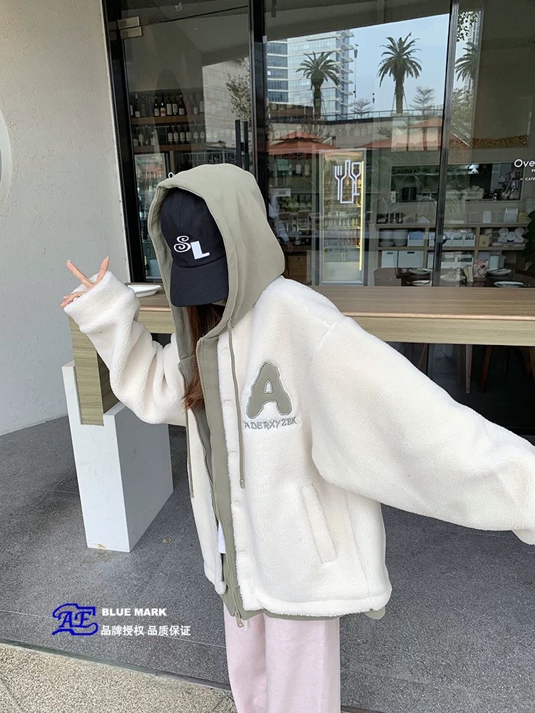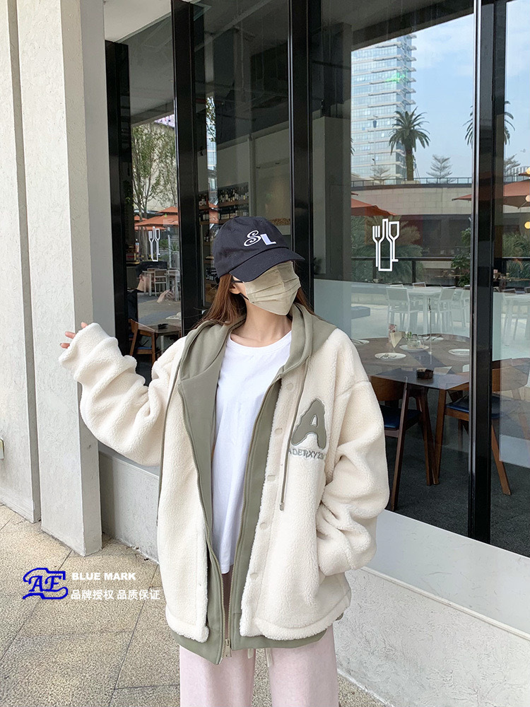 ADER кашемировая куртка для ягненка женская зима новая буква свободная теплая мужская и женская куртка с капюшоном утолщенные поддельные две части