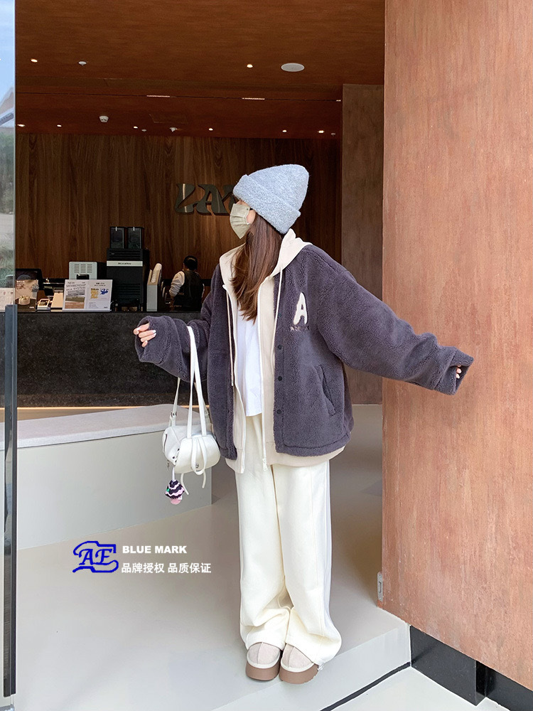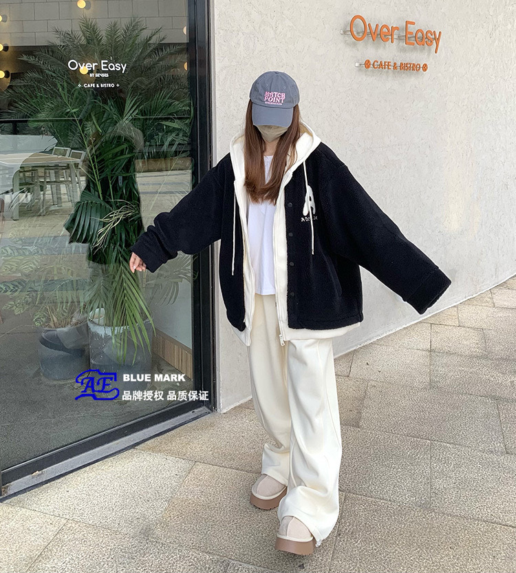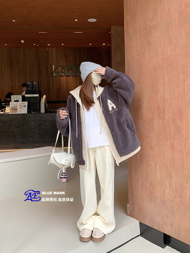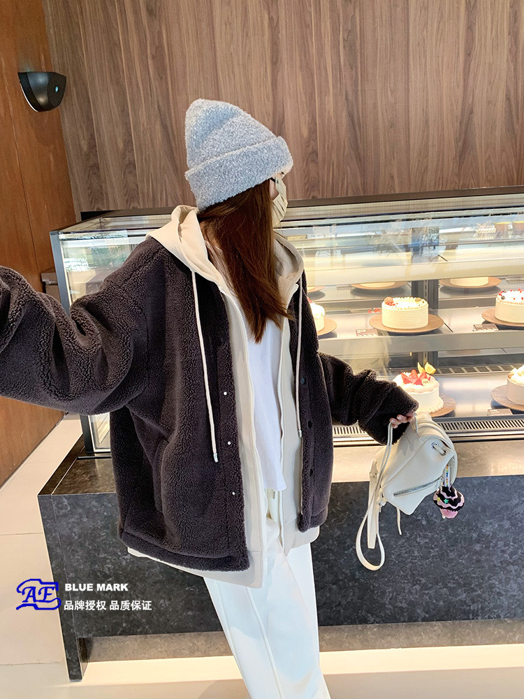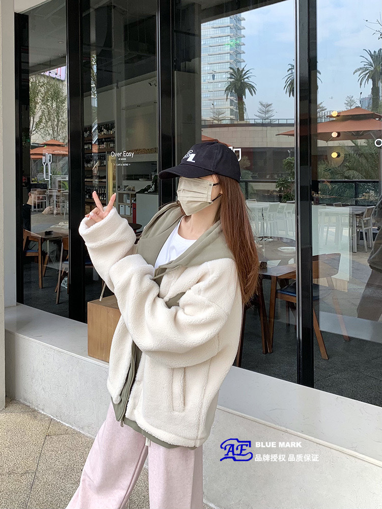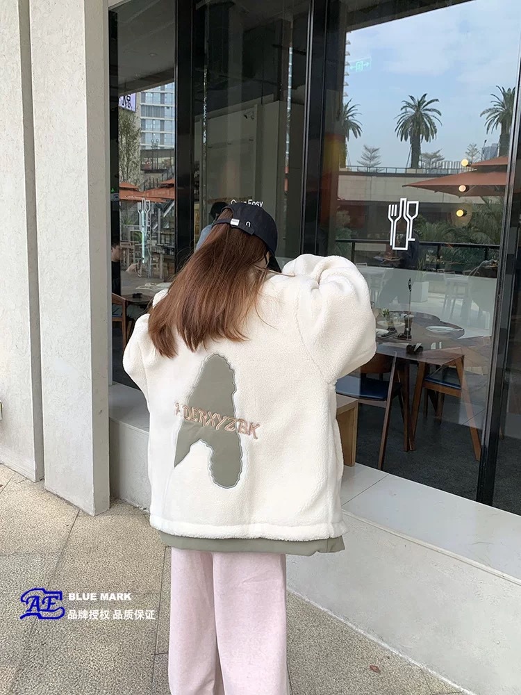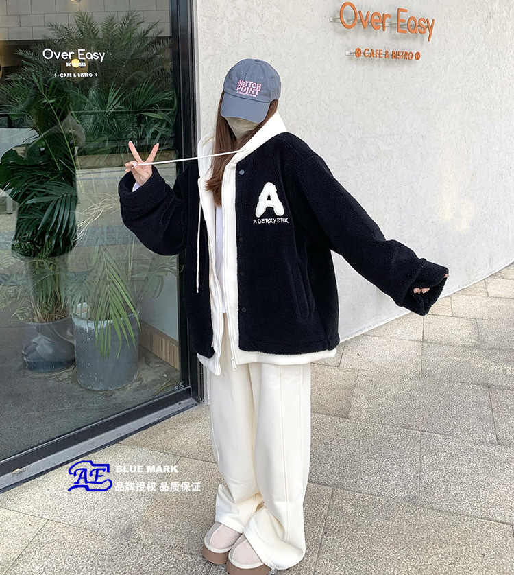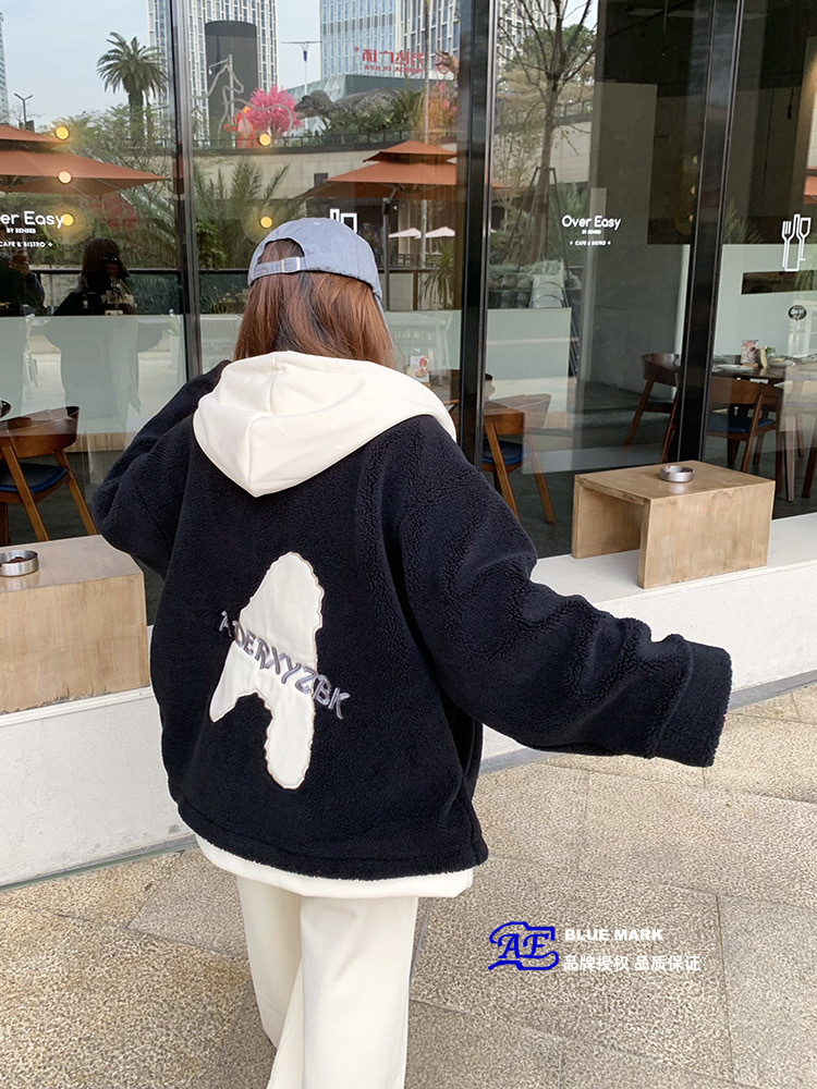 ADER кашемировая куртка для ягненка женская зима новая буква свободная теплая мужская и женская куртка с капюшоном утолщенные поддельные две части