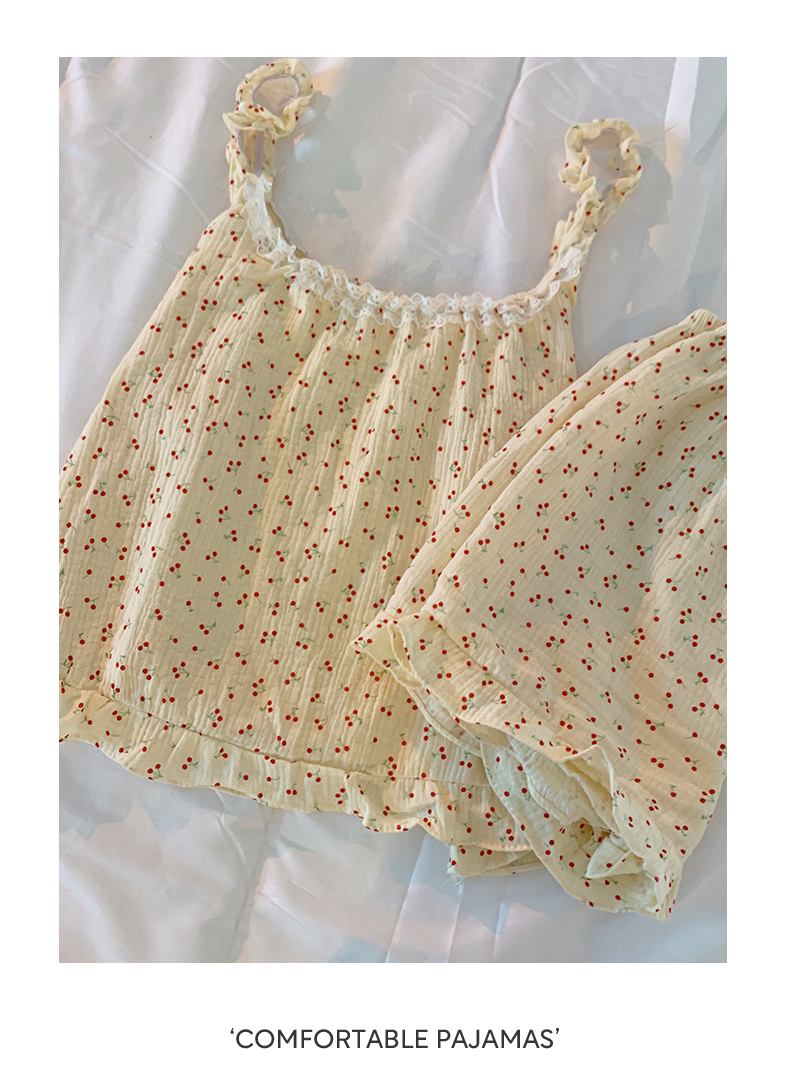 Ins ветреная пижама женский летний день хлопок сладкий подтяжка шорты сексуальный новый милый японский стиль