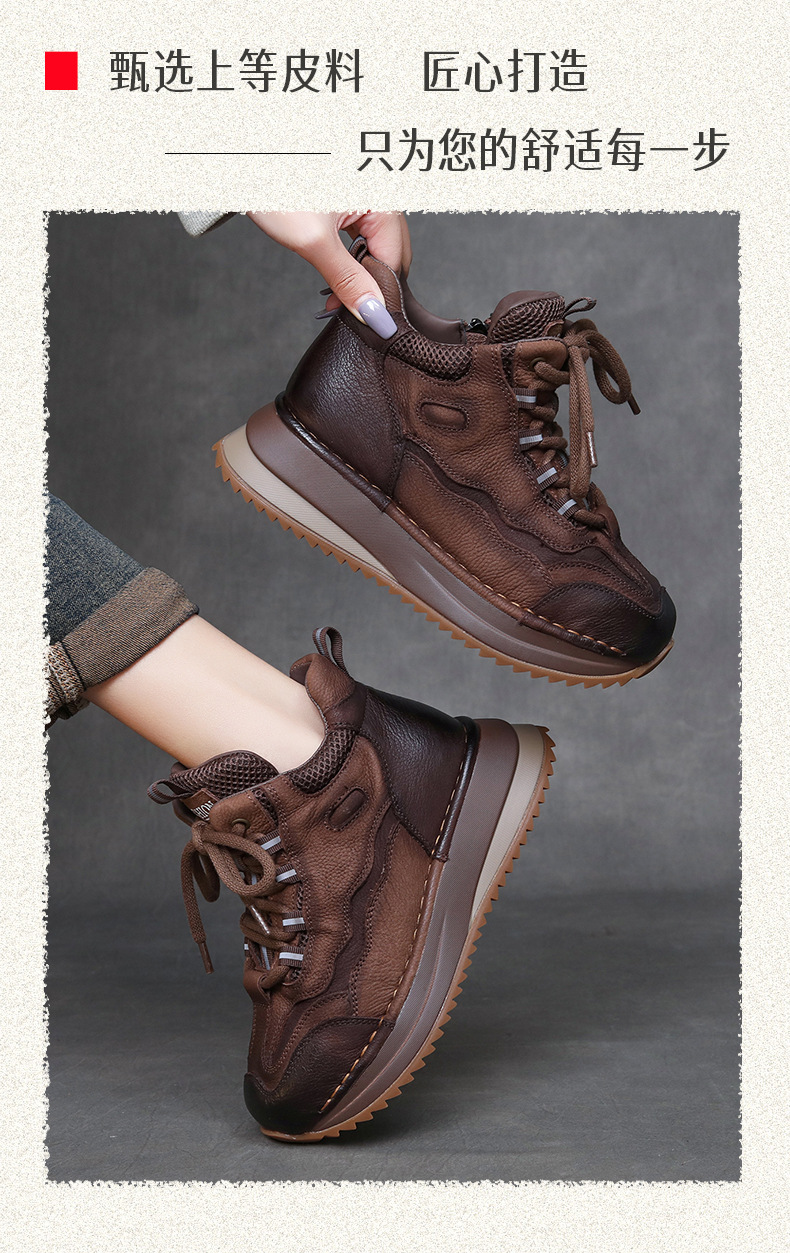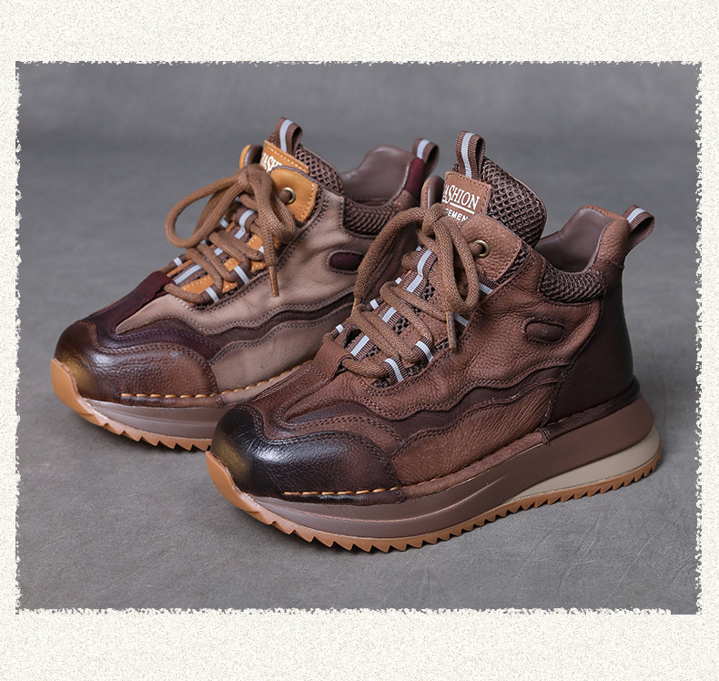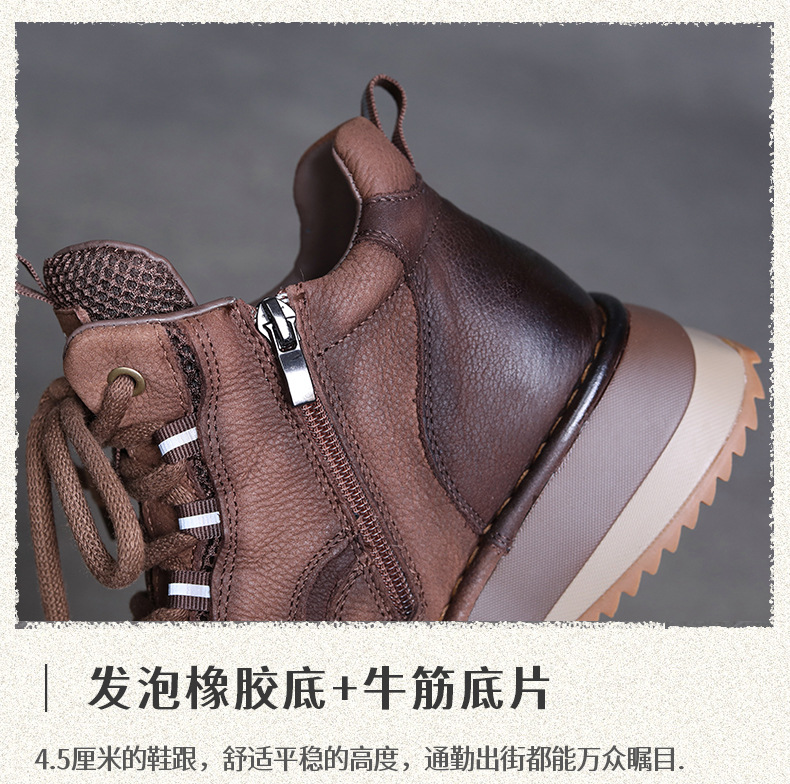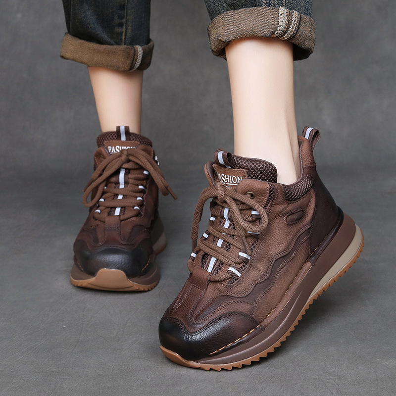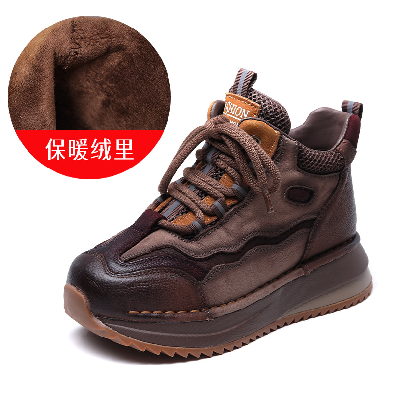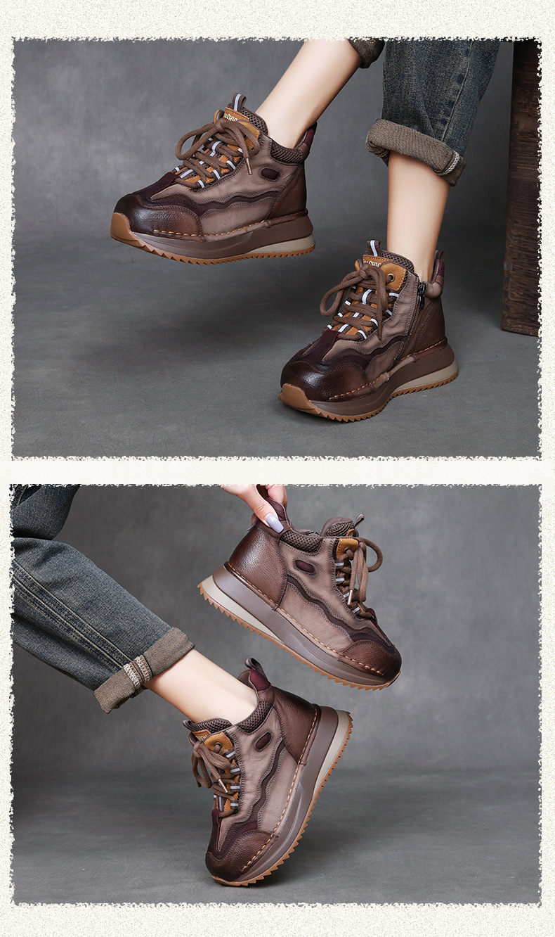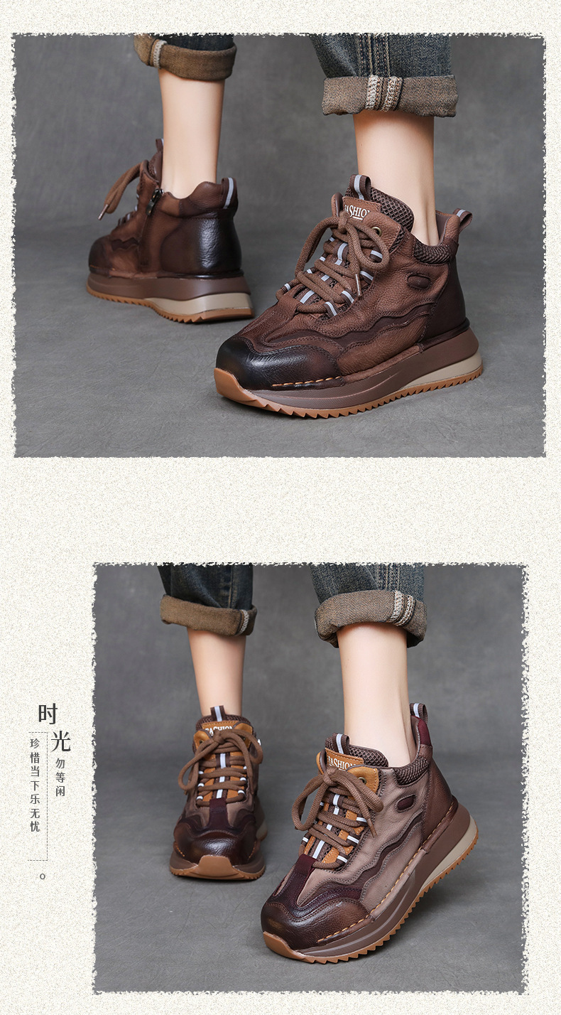 Женские повседневные туфли из натуральной кожи с толстой подошвой в стиле ретро, новая осенняя коллекция, универсальные высокие ботинки с цветовыми блоками, короткие сапоги на мягкой подошве