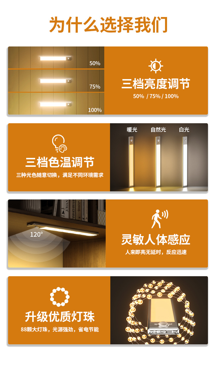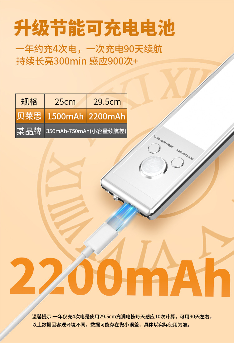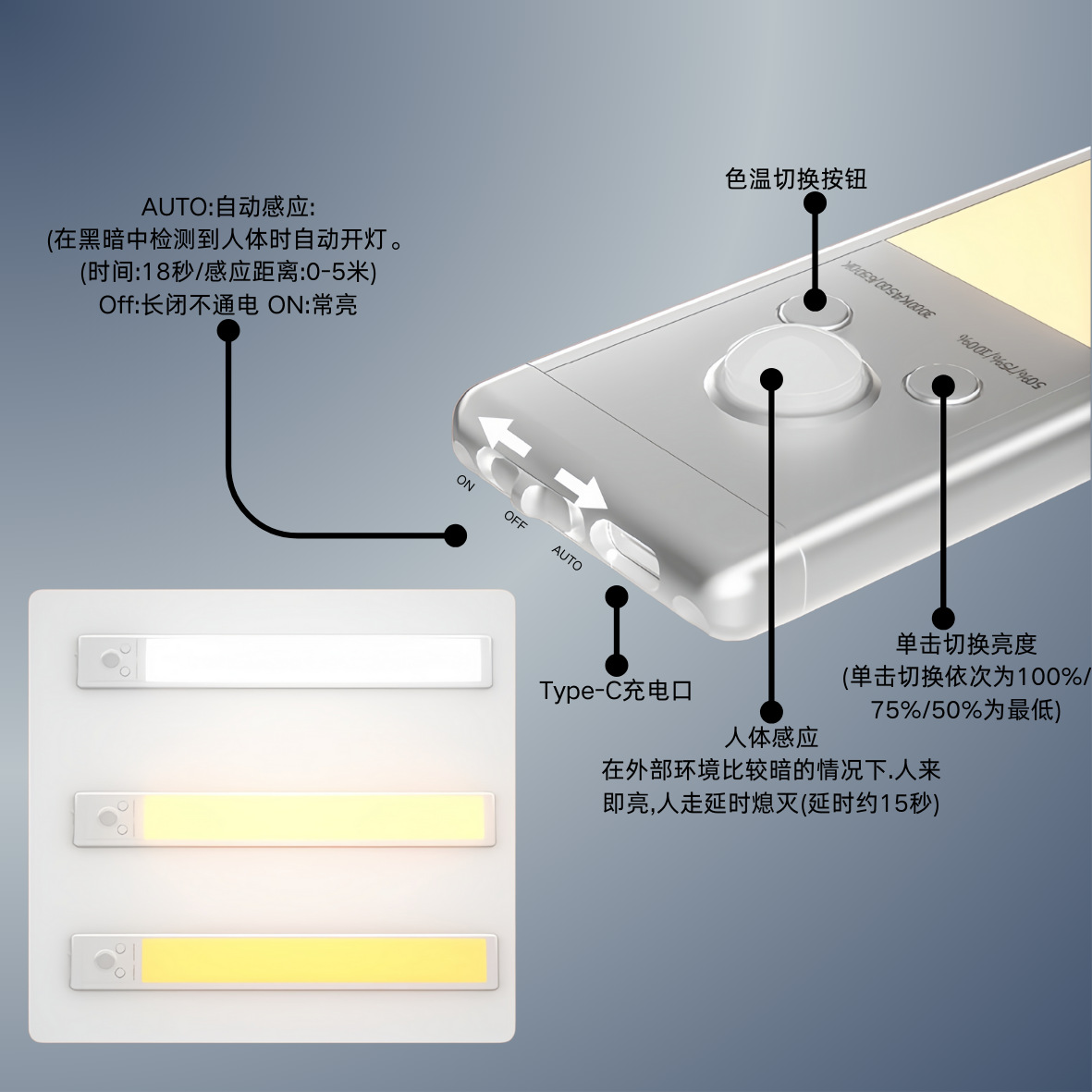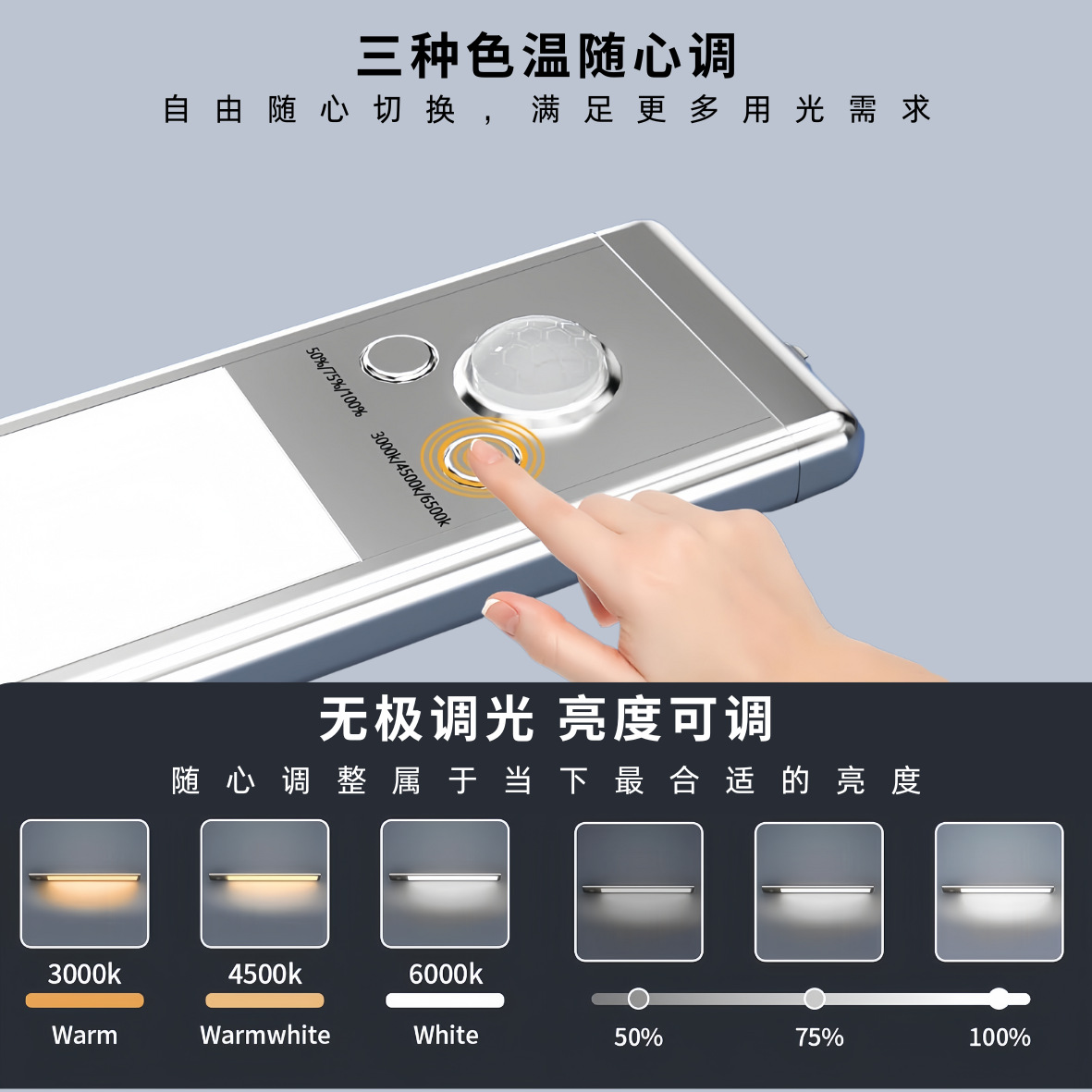 Популярная ультратонкая светодиодная лента с датчиком движения, для шкафов, винных шкафов, витрин, с функцией умной зарядки, самоклеящаяся, без сверления