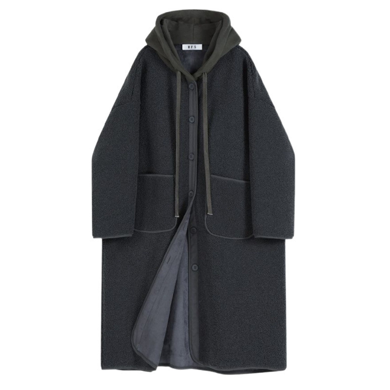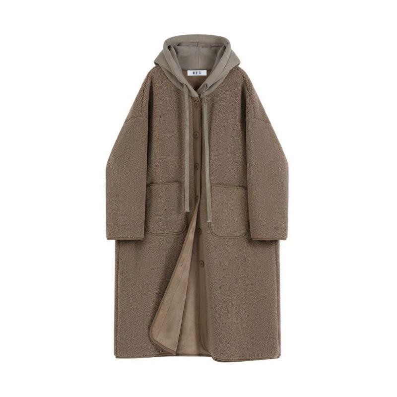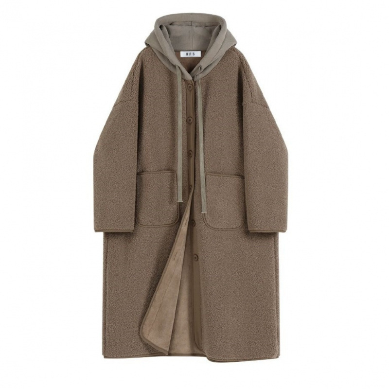 Пальто из овечьей шерсти женская осень-зима мода досуг ленивый ветер свободный большой размер толстая куртка с капюшоном