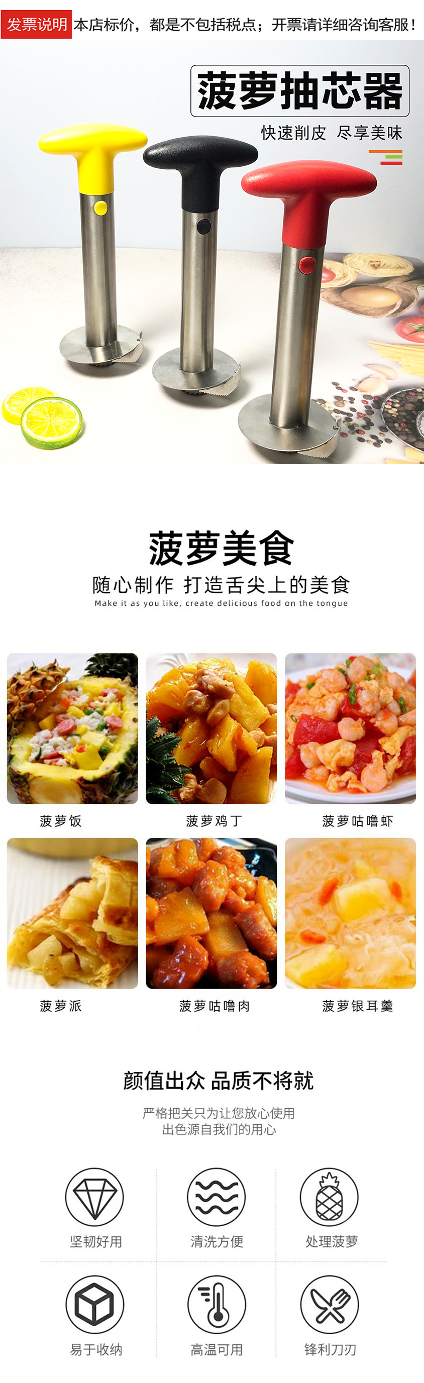 Съемник сердцевины черного ананаса (полипропиленовый пакет); Устройство для удаления сердцевины из красного ананаса (полипропиленовый пакет); Средство для удаления сердцевины из желтого ананаса (полипропиленовый пакет); Съемник сердцевины черного ананаса (цветная коробка); Средство для удаления сердцевины из красного ананаса (цветная коробка); Средство для удаления сердцевины из желтого ананаса (цветная коробка)