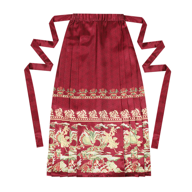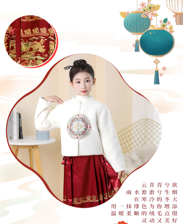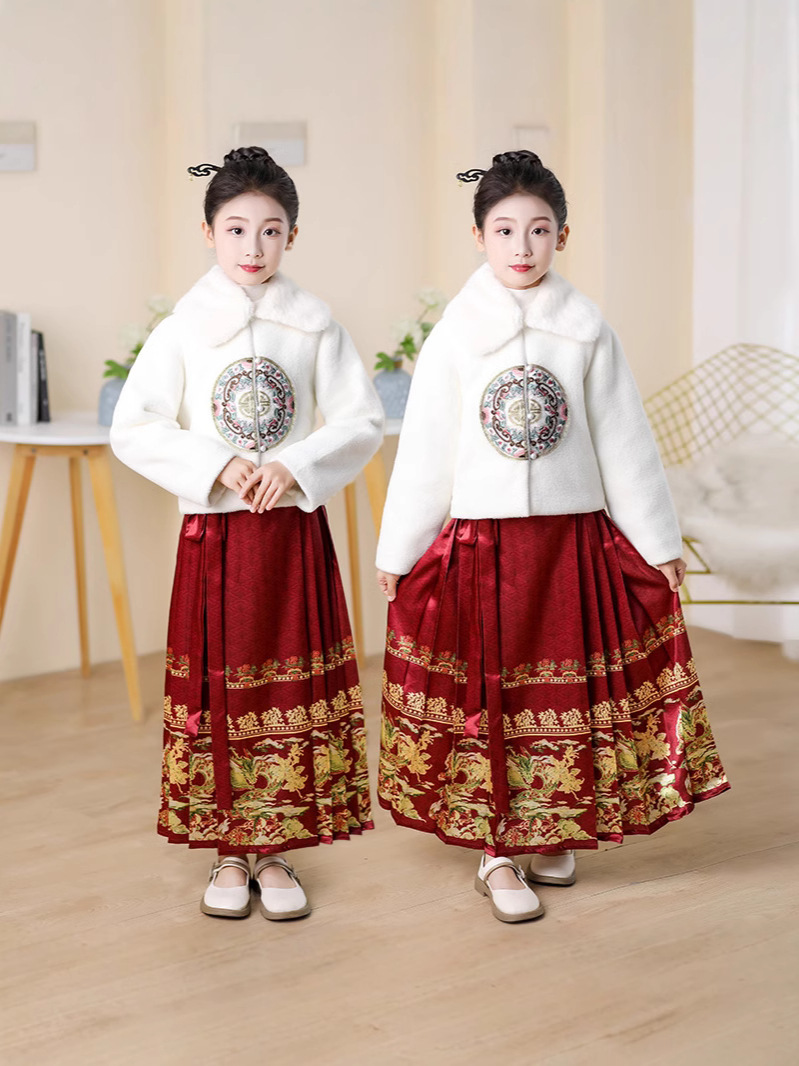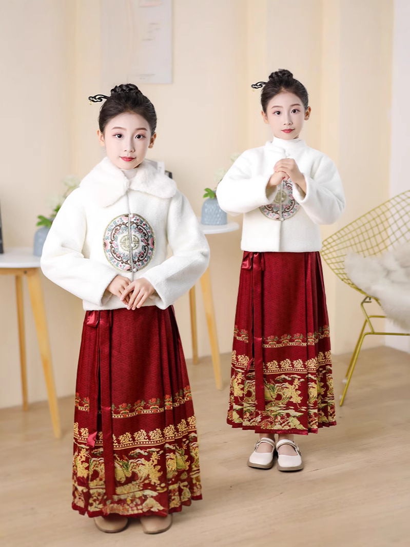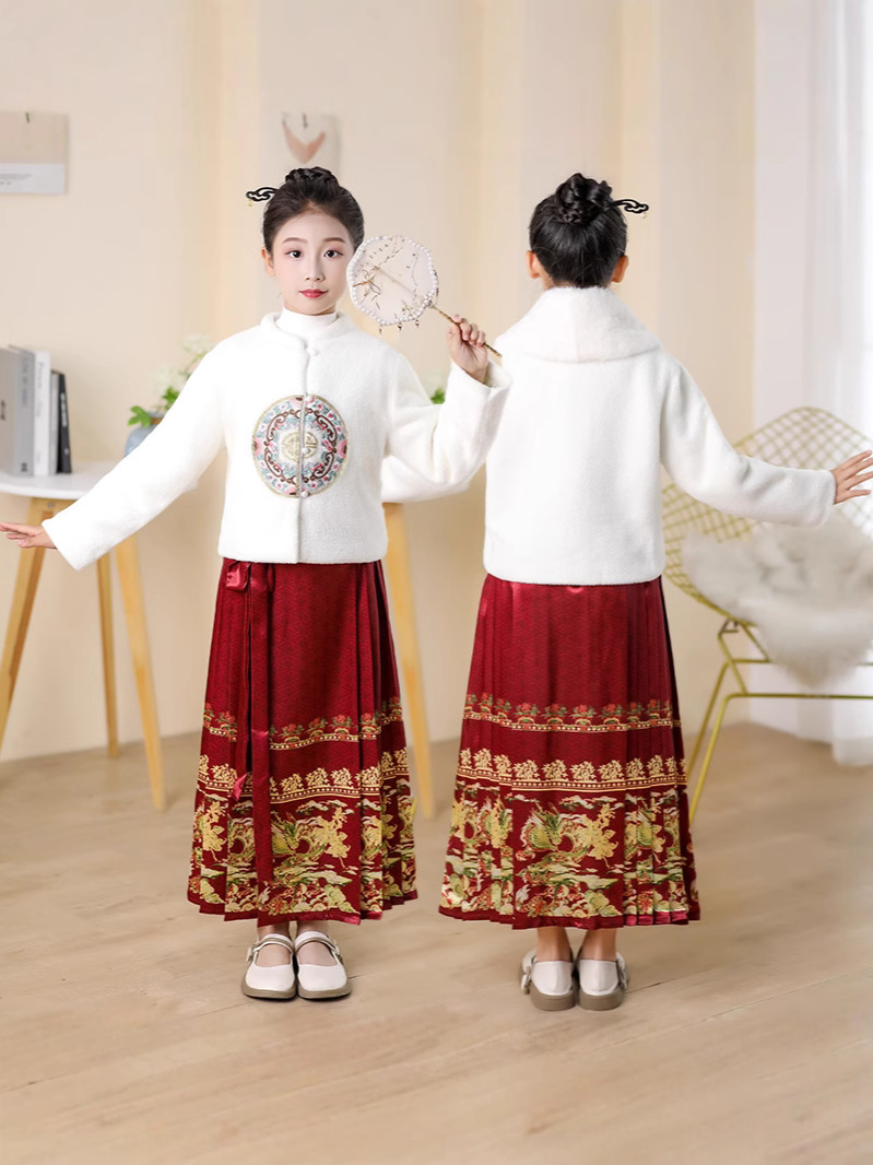 Красная юбка с одним конским лицом [одинарная юбка]; Белая хлопковая куртка [одинарная куртка]; Красный костюм [куртка + юбка-конца]
