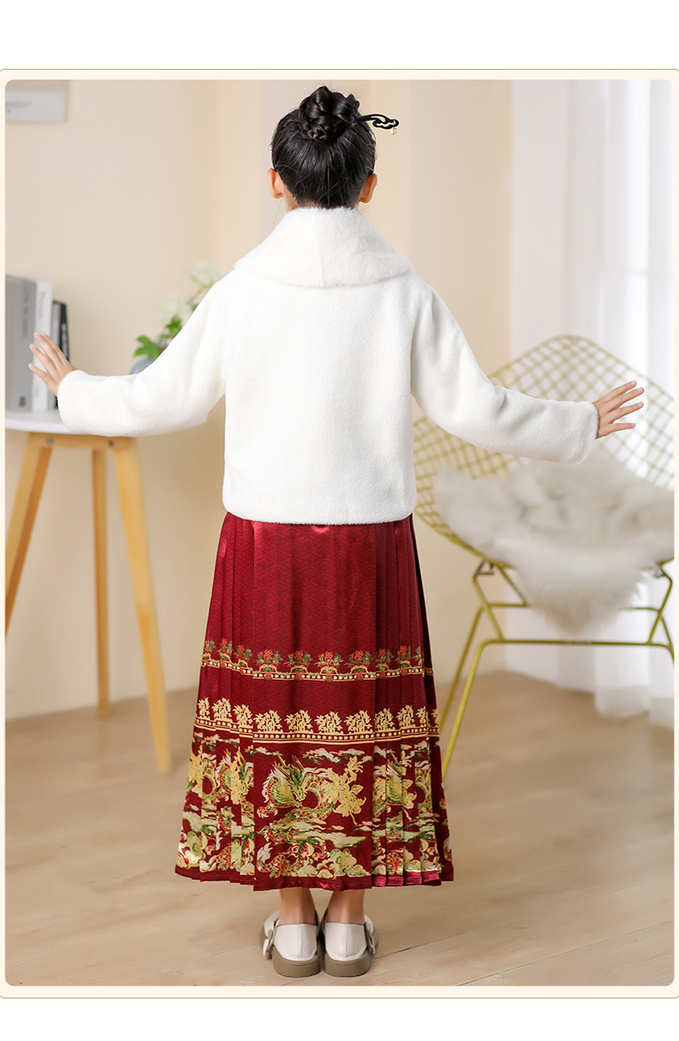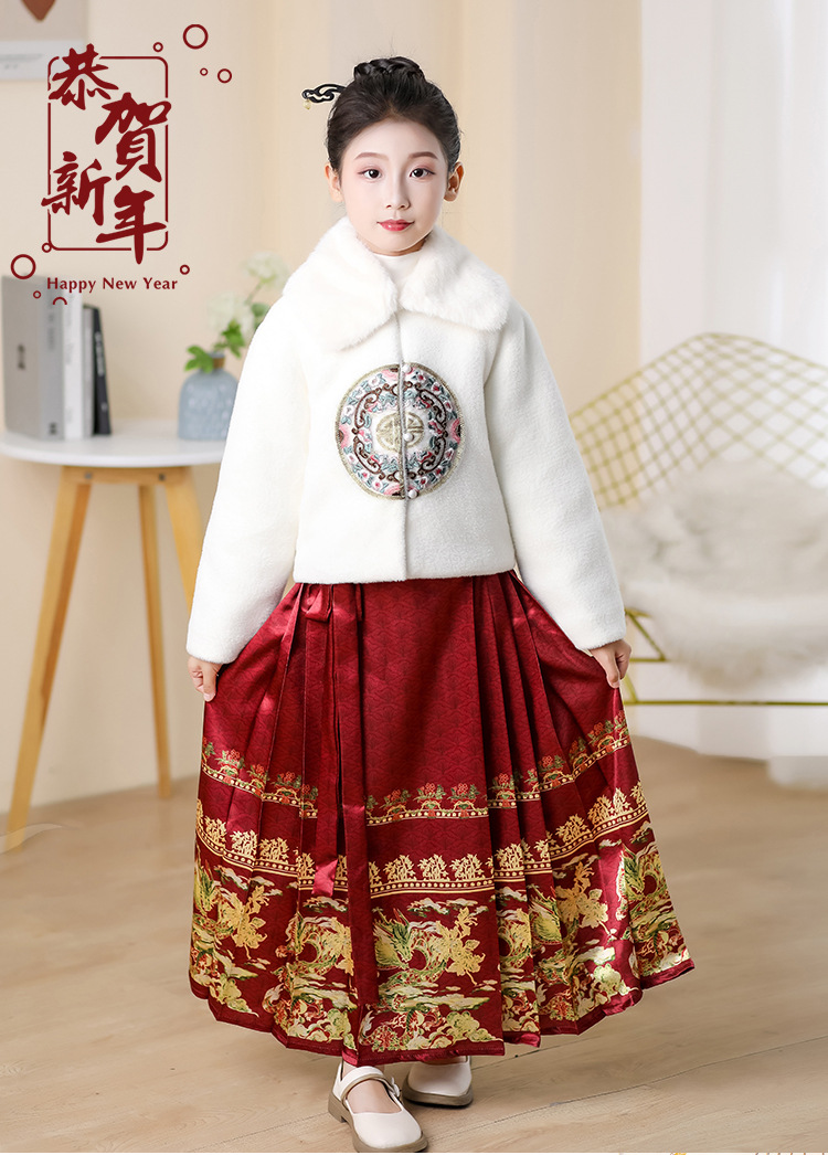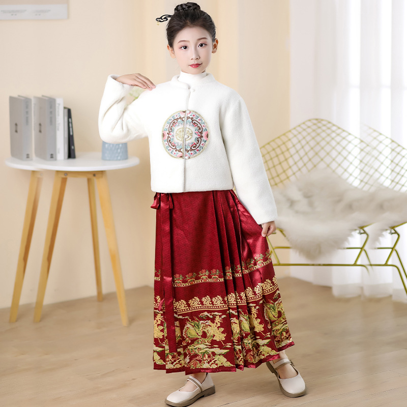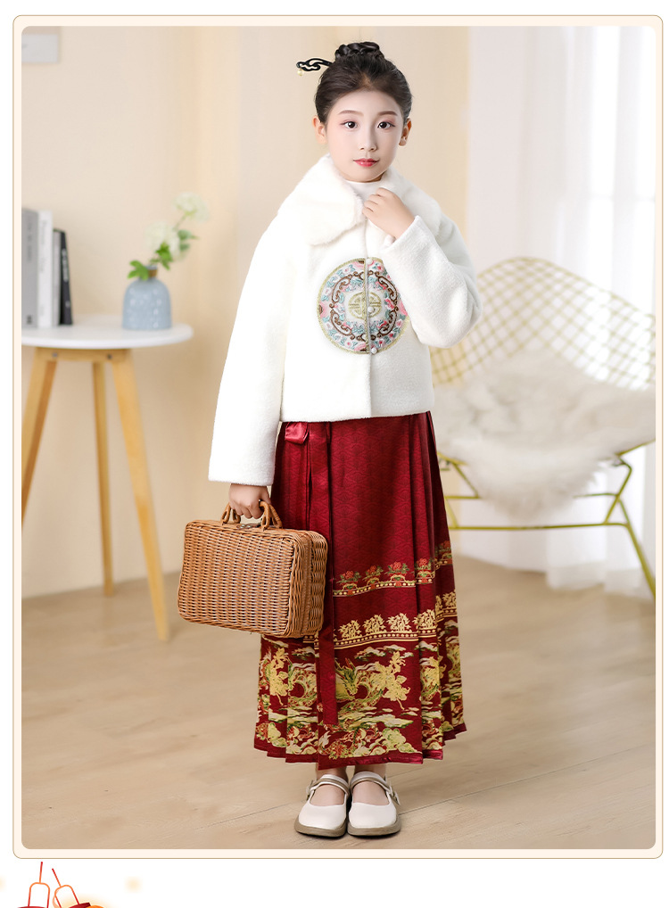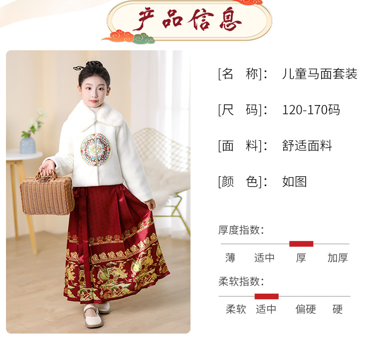 Девушка осенняя и зимняя юбка с конским лапшой 2024 осенняя и зимняя одежда новый толстый набор для детей среднего возраста