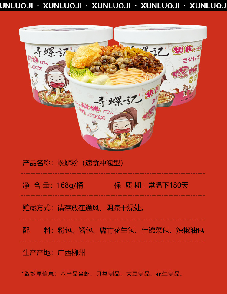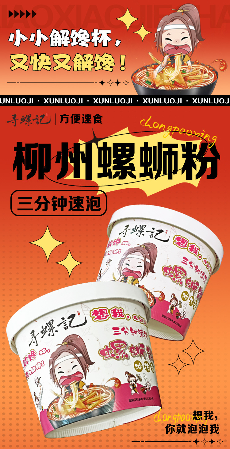 【Лапша быстрого приготовления со вкусом улитки】Xunluoji 168г/упаковка, лапша быстрого приготовления без варки, ночной перекус, рисовая лапша со вкусом улитки, кисло-острая, в стиле Лючжоу