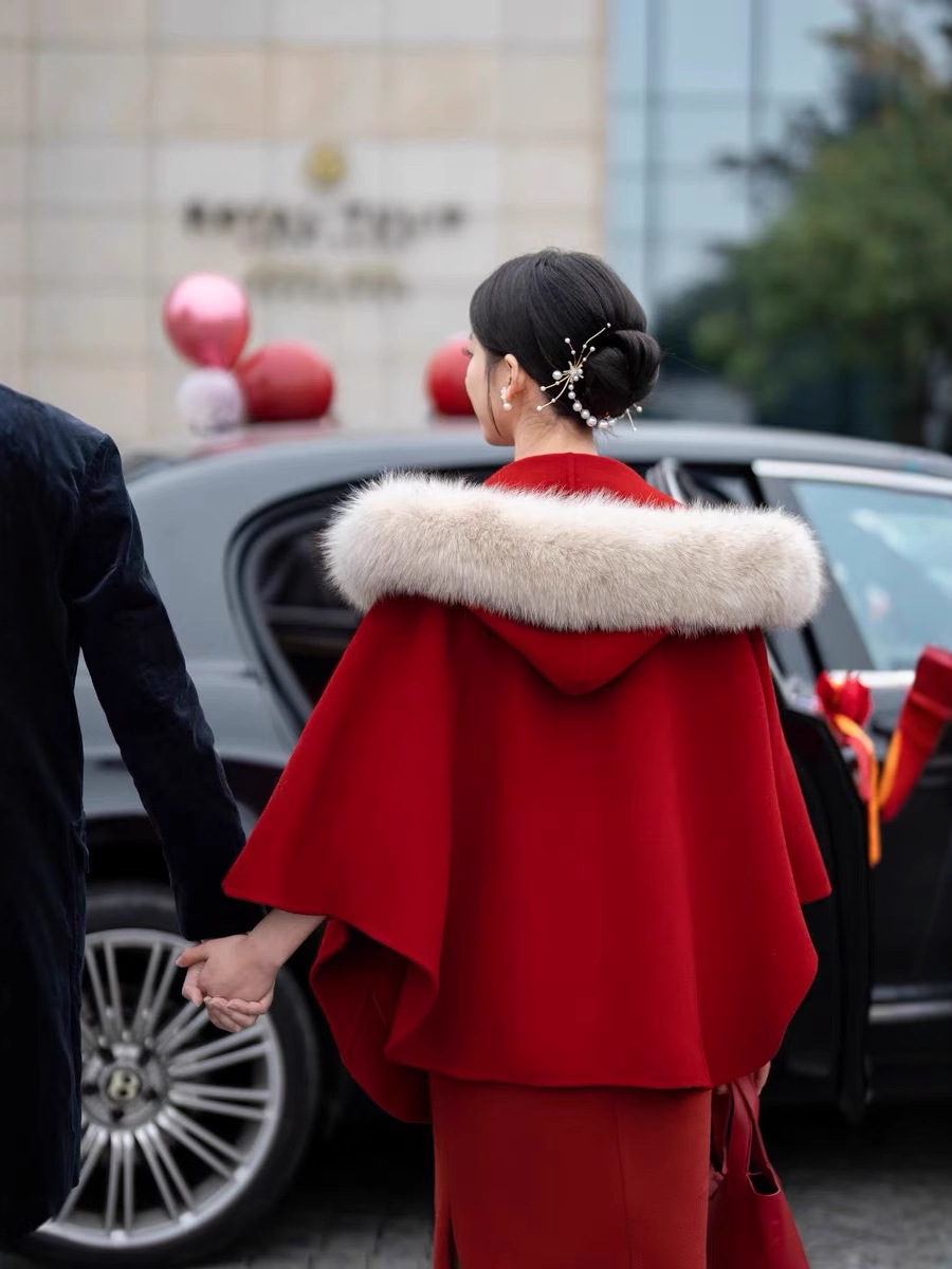плащ свадебный красный; Свадебный с капюшоном красный