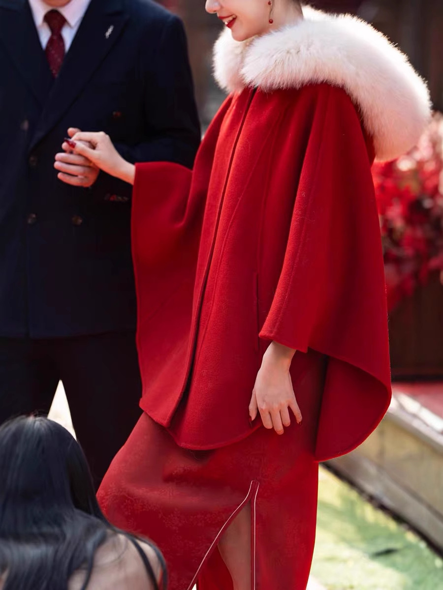 [Ласковая] Красное шерстяное пальто маленькая девочка 2024 новый плащ короткая шерстяная куртка свадебный заказ
