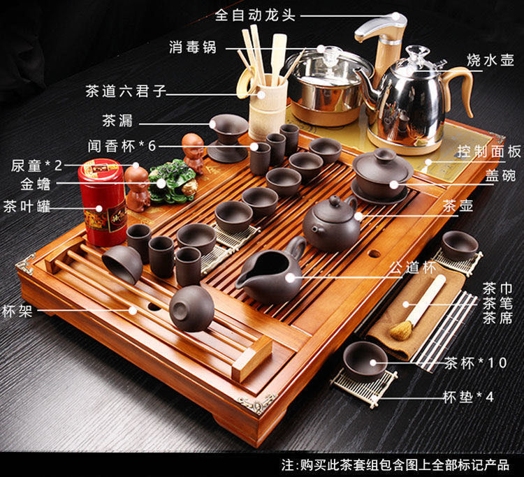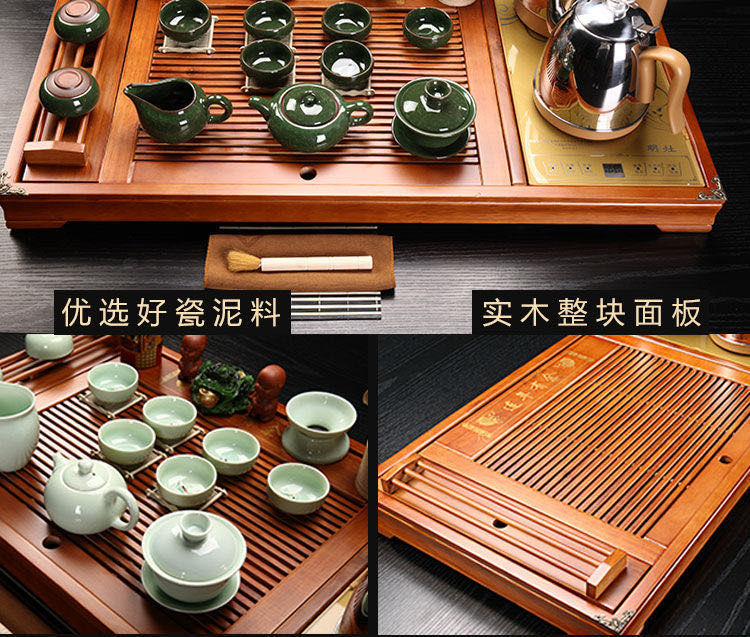 Полный набор чайных наборов кунг-фу для домашнего использования полностью автоматическая кипячая вода из цельного дерева