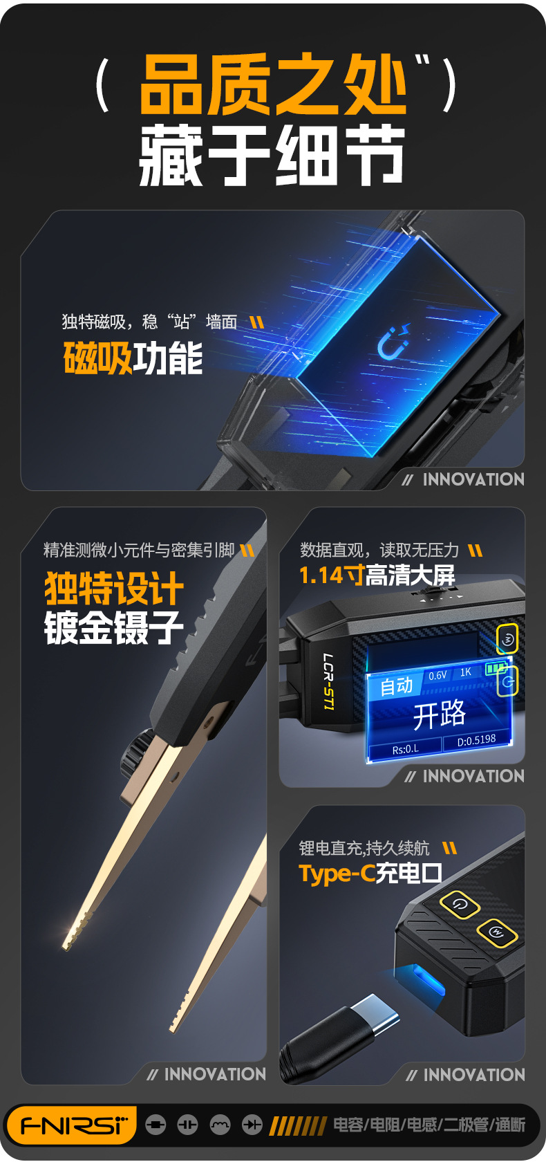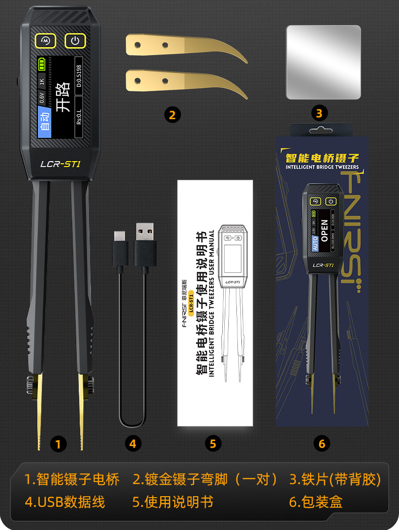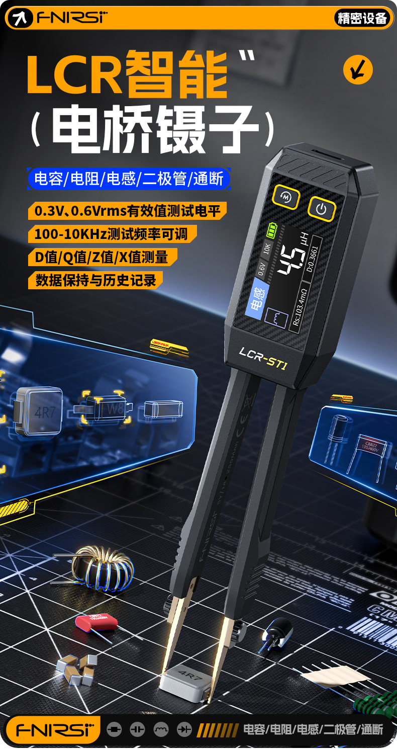 FNIRSI цифровой пинцет мост LCR-ST1 резистивный индуктивный конденсатор тестовый патч зажим мультиметр