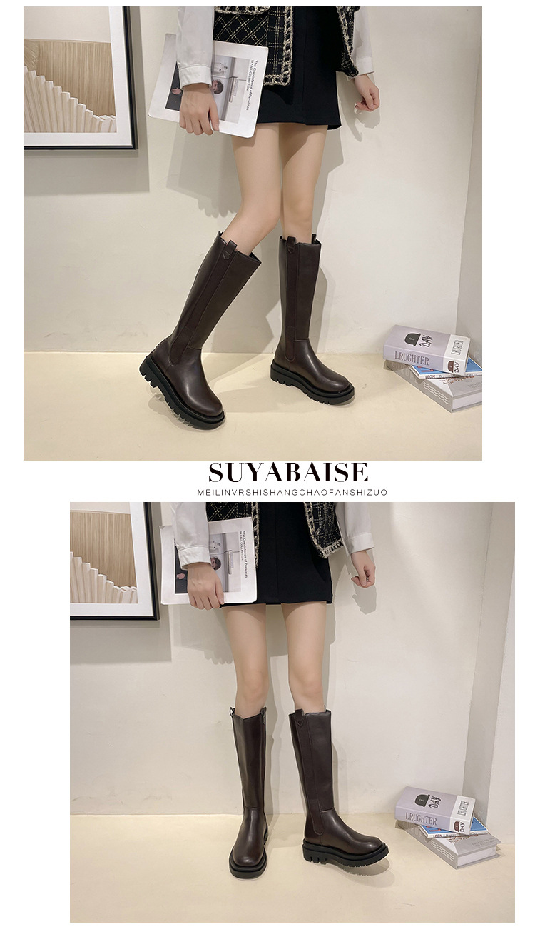 2024 осень и зима новые дикие сапоги рыцаря женские сапоги с толстой подошвы высокие сапоги