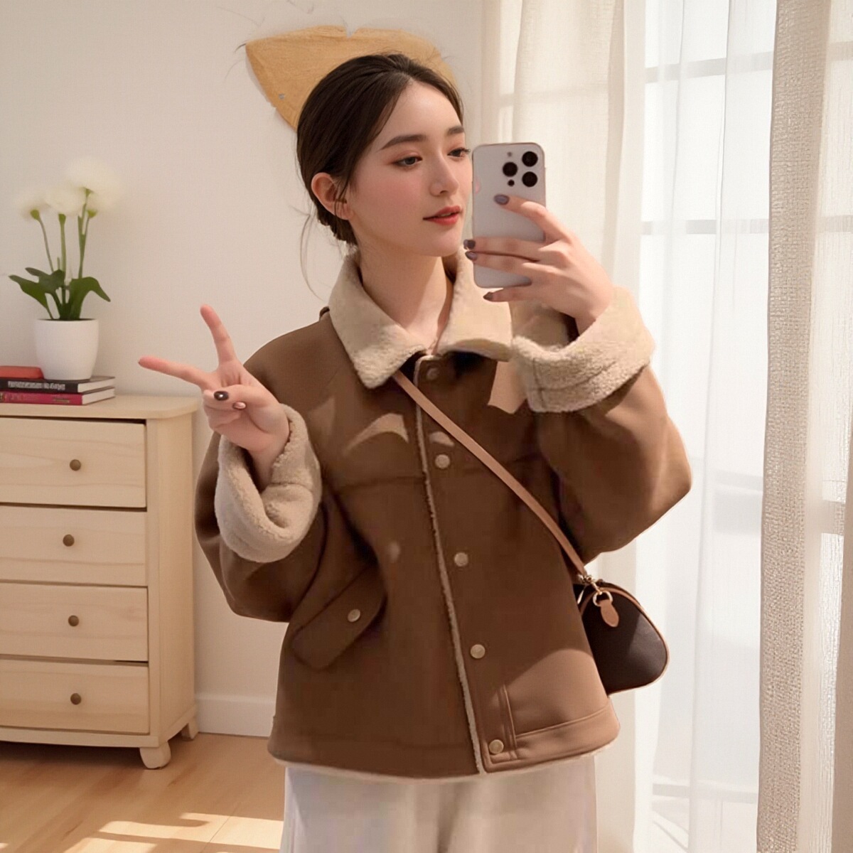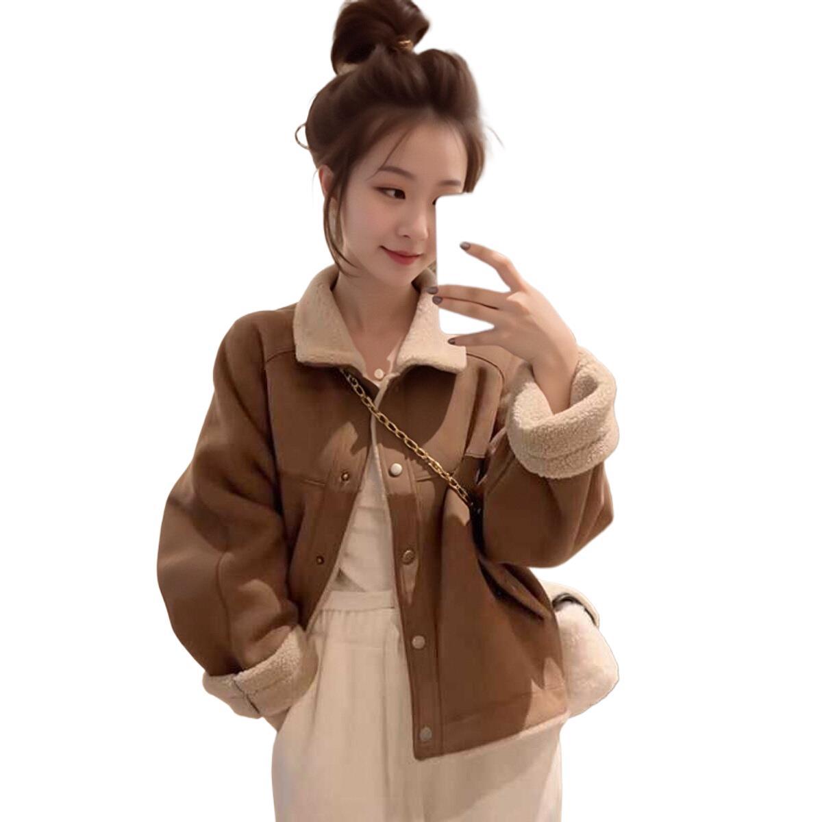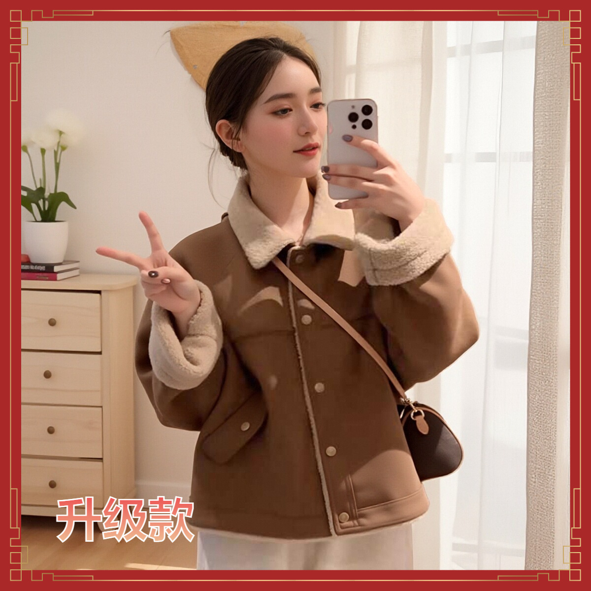 Маленький толстый ретро-отворот куртка женский 2024 осень-зима новый мех один теплая овечья шерсть короткая куртка