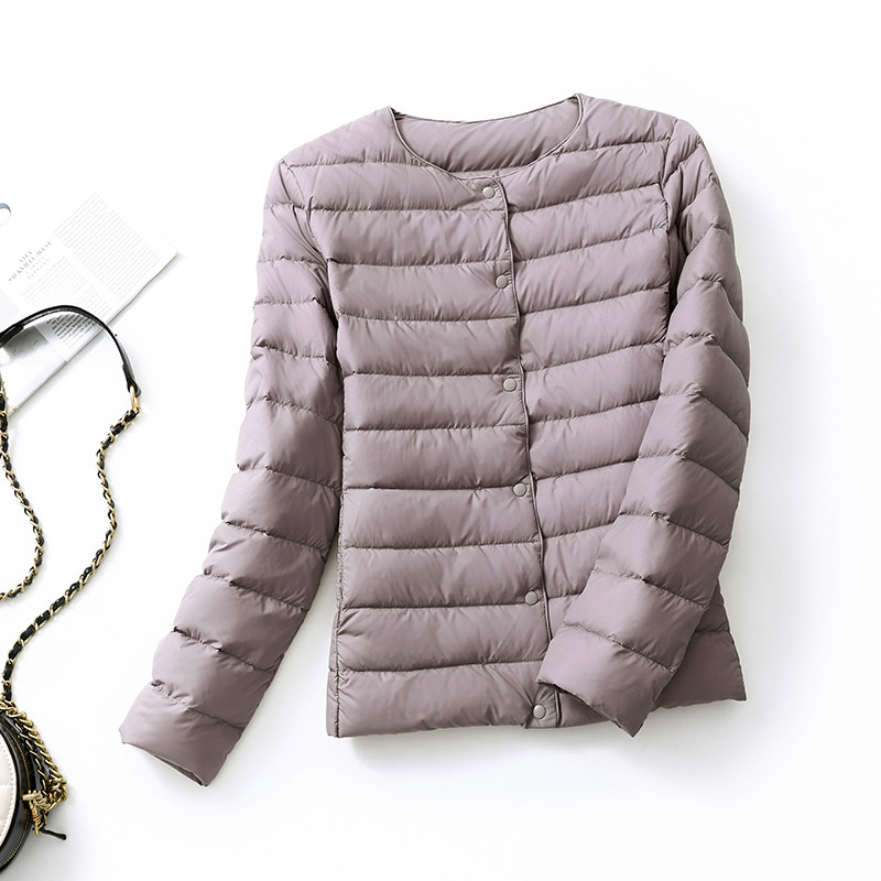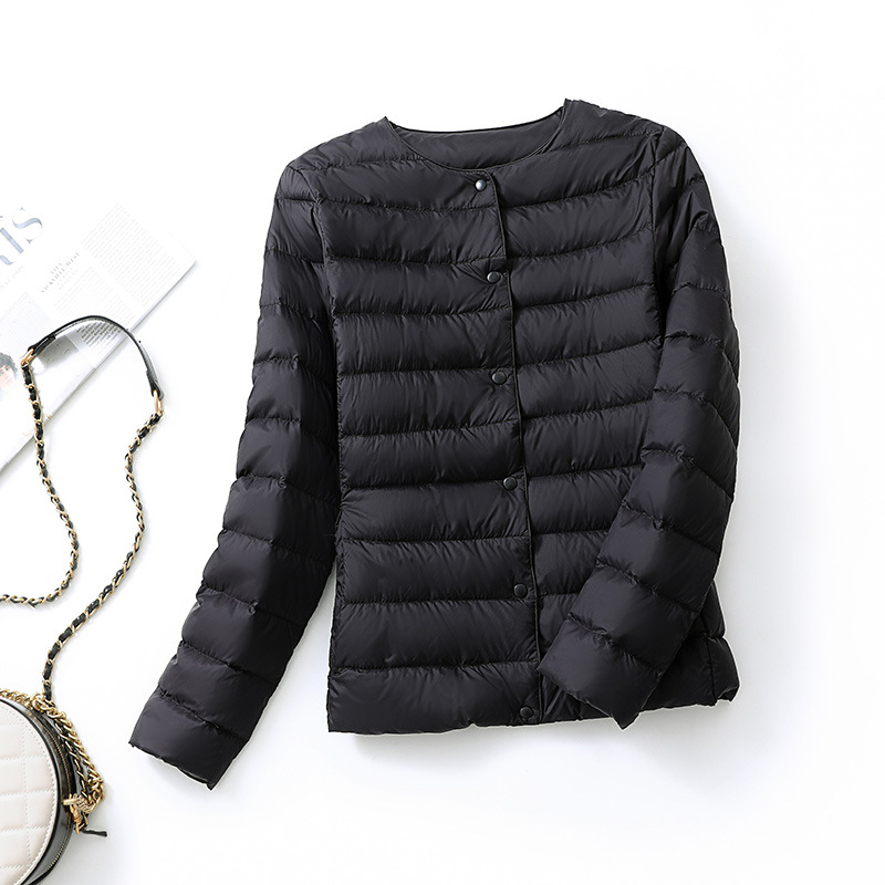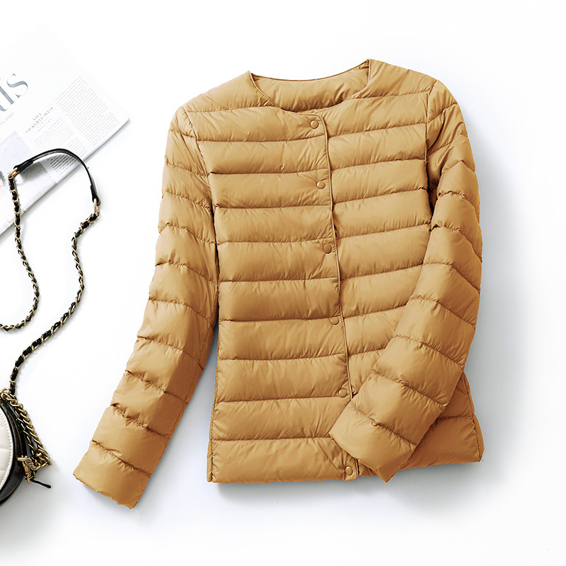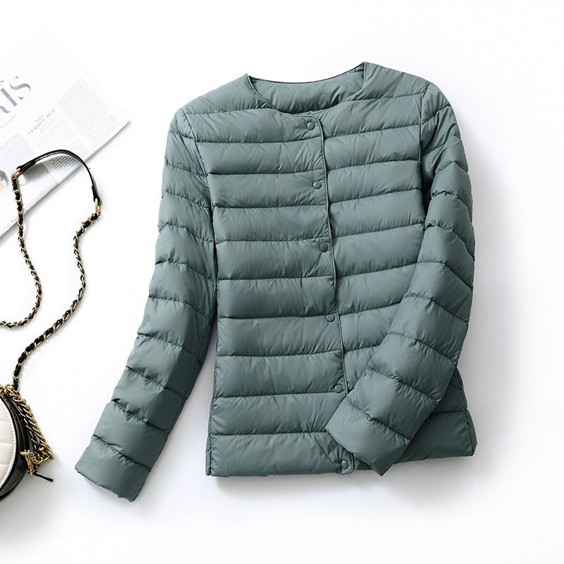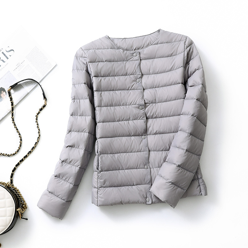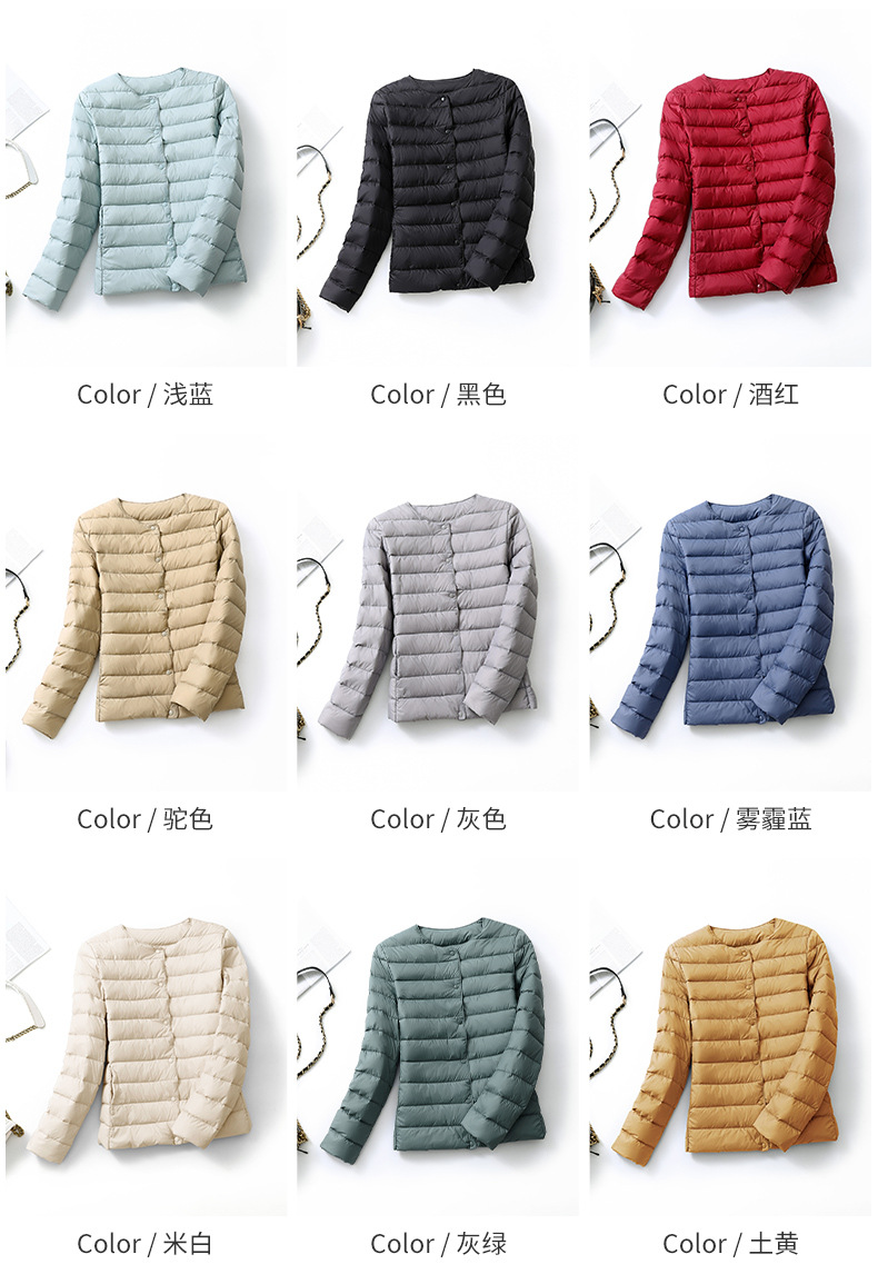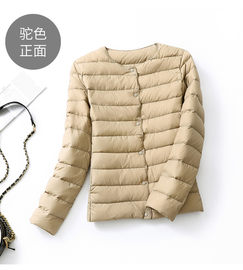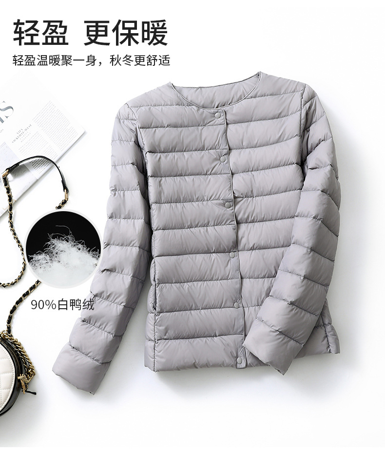 Зимний новый тонкий пуховик может быть легким и коротким пальто большого размера с круглым вырезом