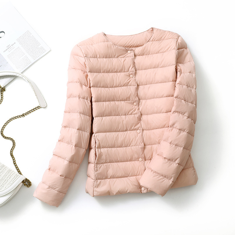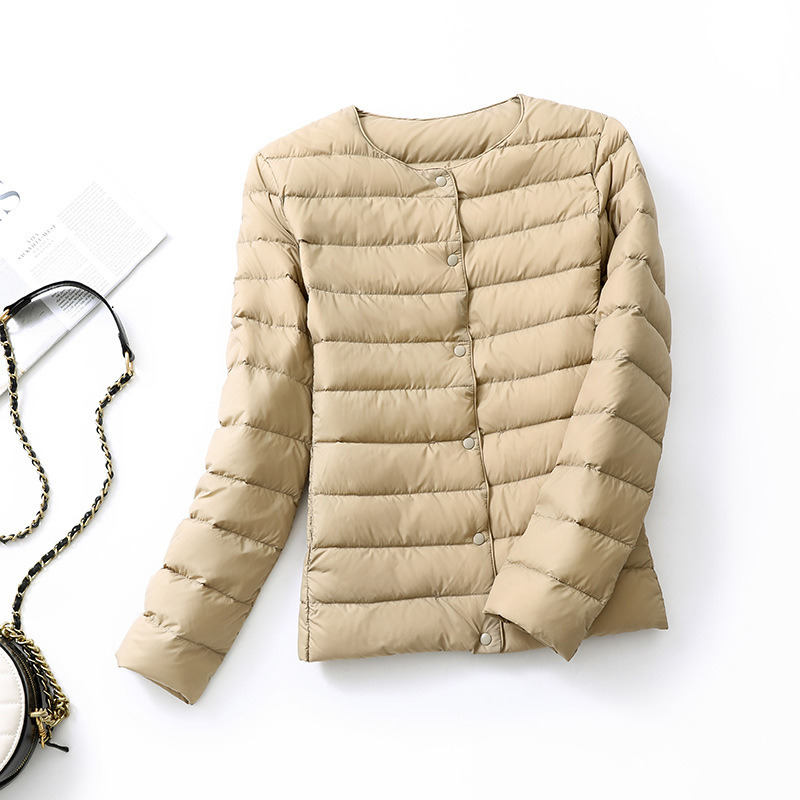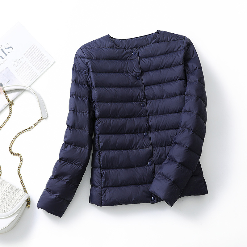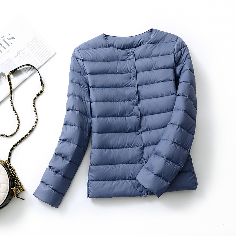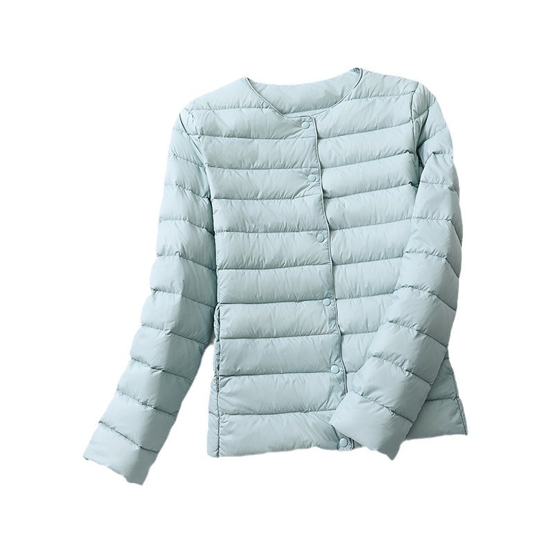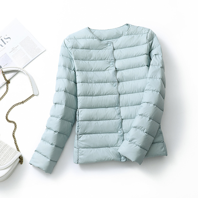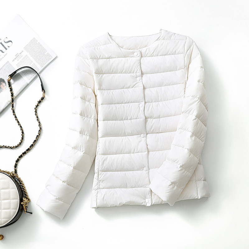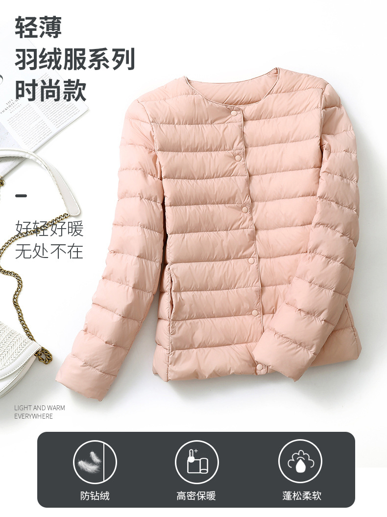 Зимний новый тонкий пуховик может быть легким и коротким пальто большого размера с круглым вырезом