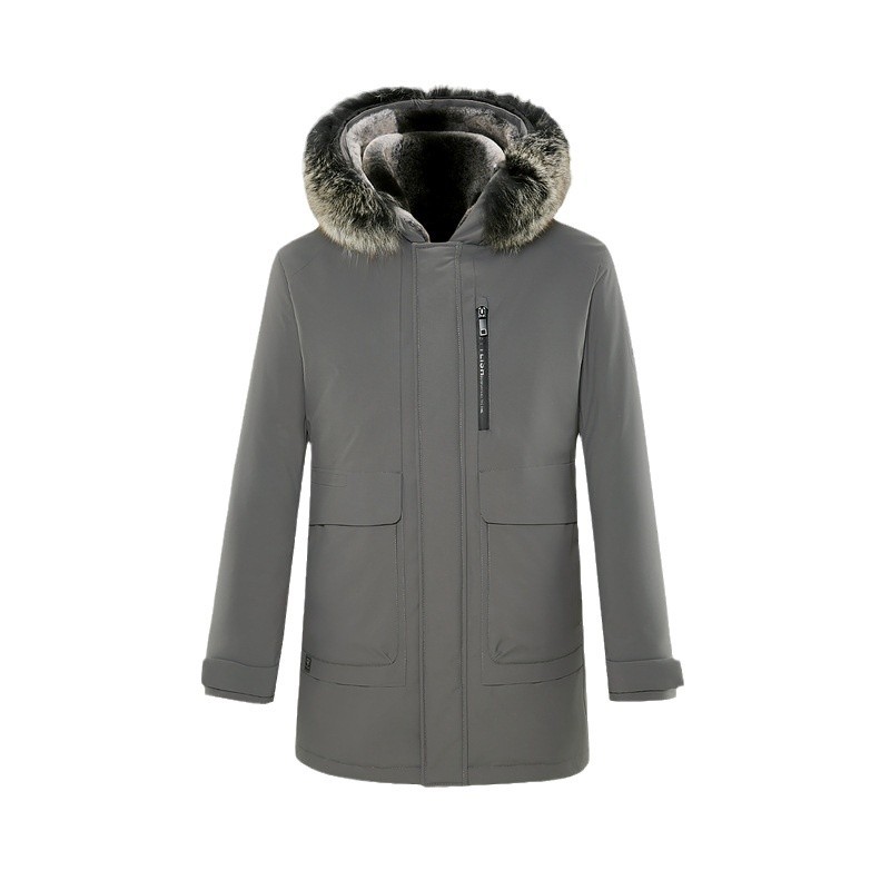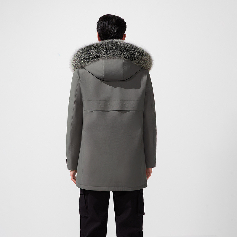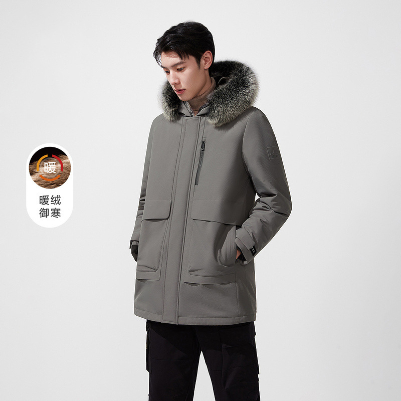 Мужское теплое ядро серии утиный бархатный костюм зимний новый волосатый воротник лисы