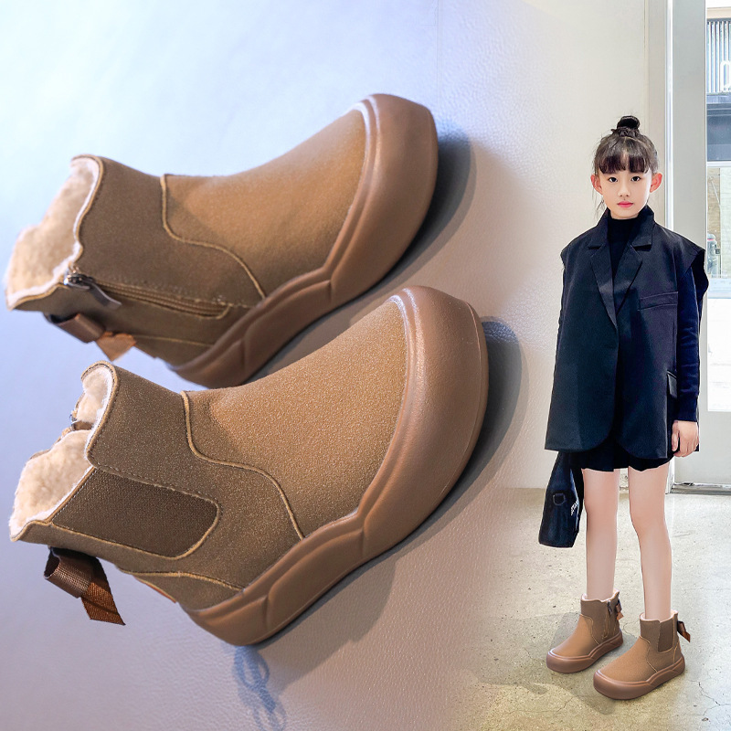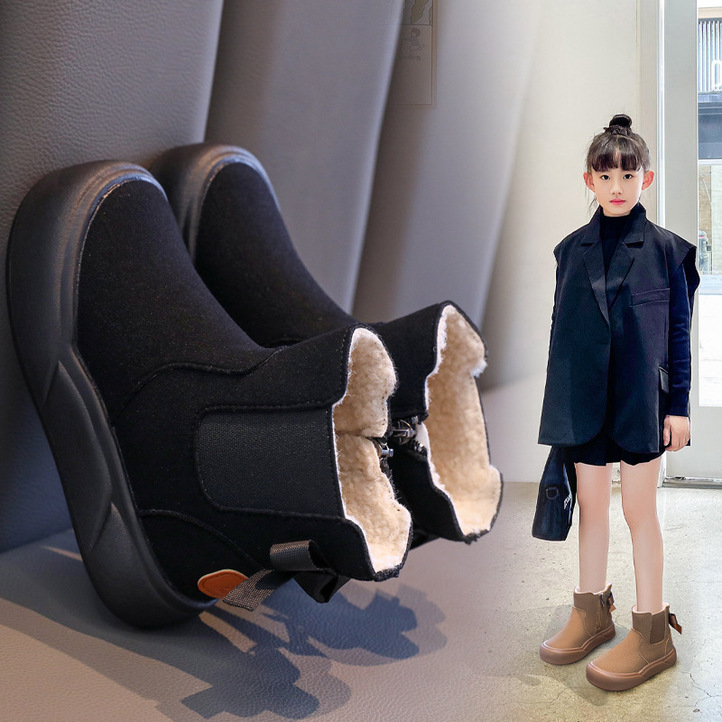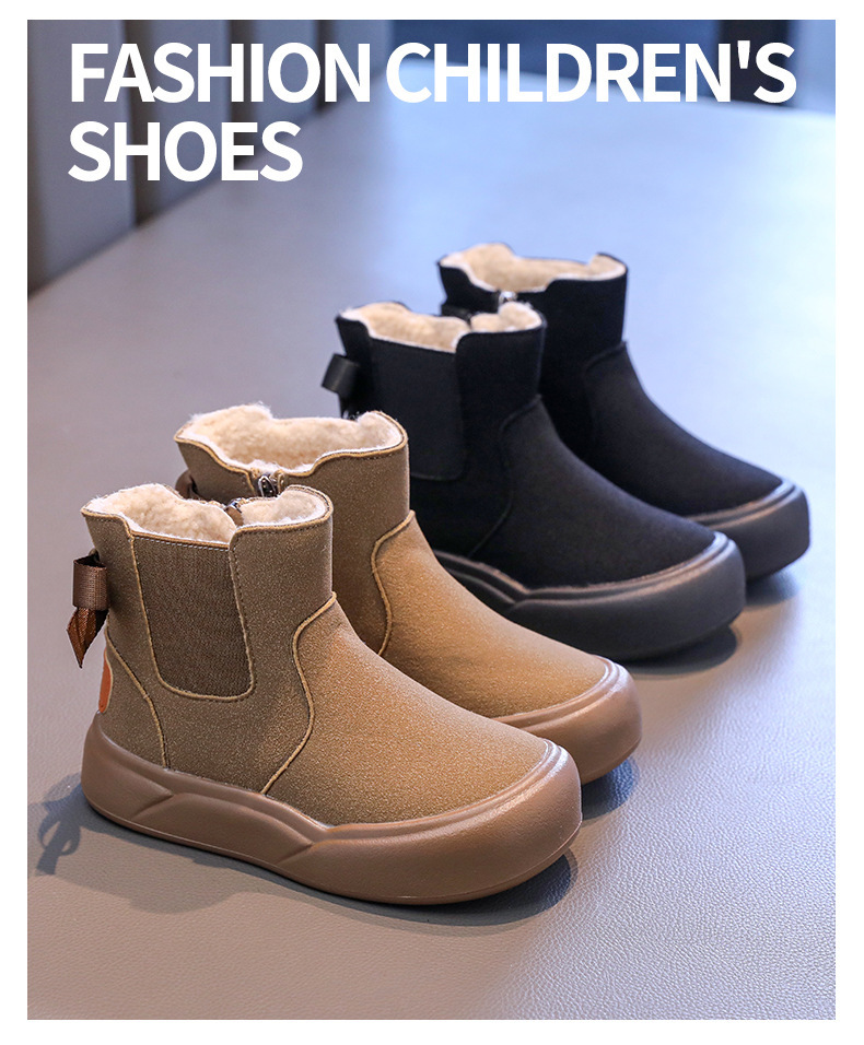 Детская флисовая теплая хлопчатобумажная обувь 2024 зимой