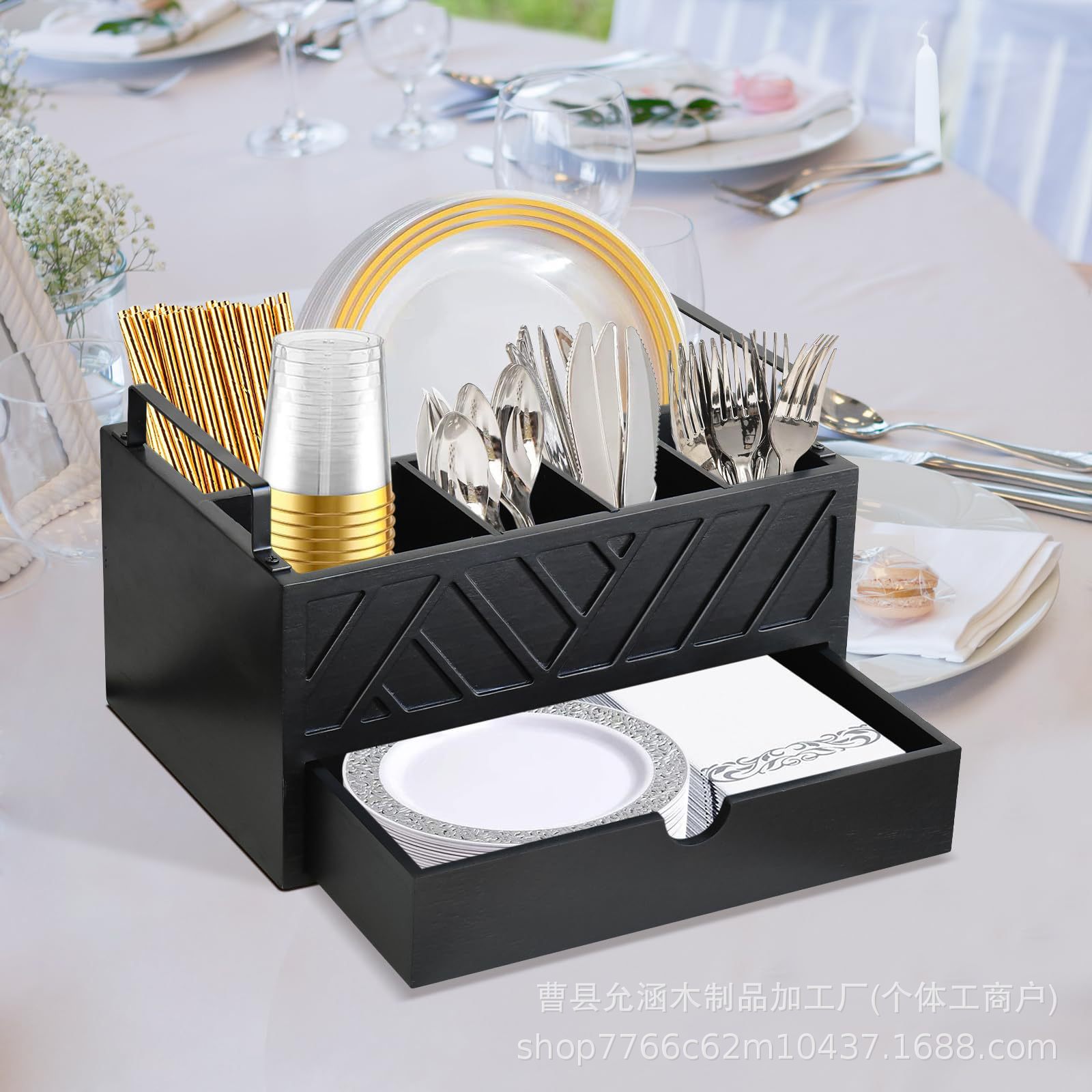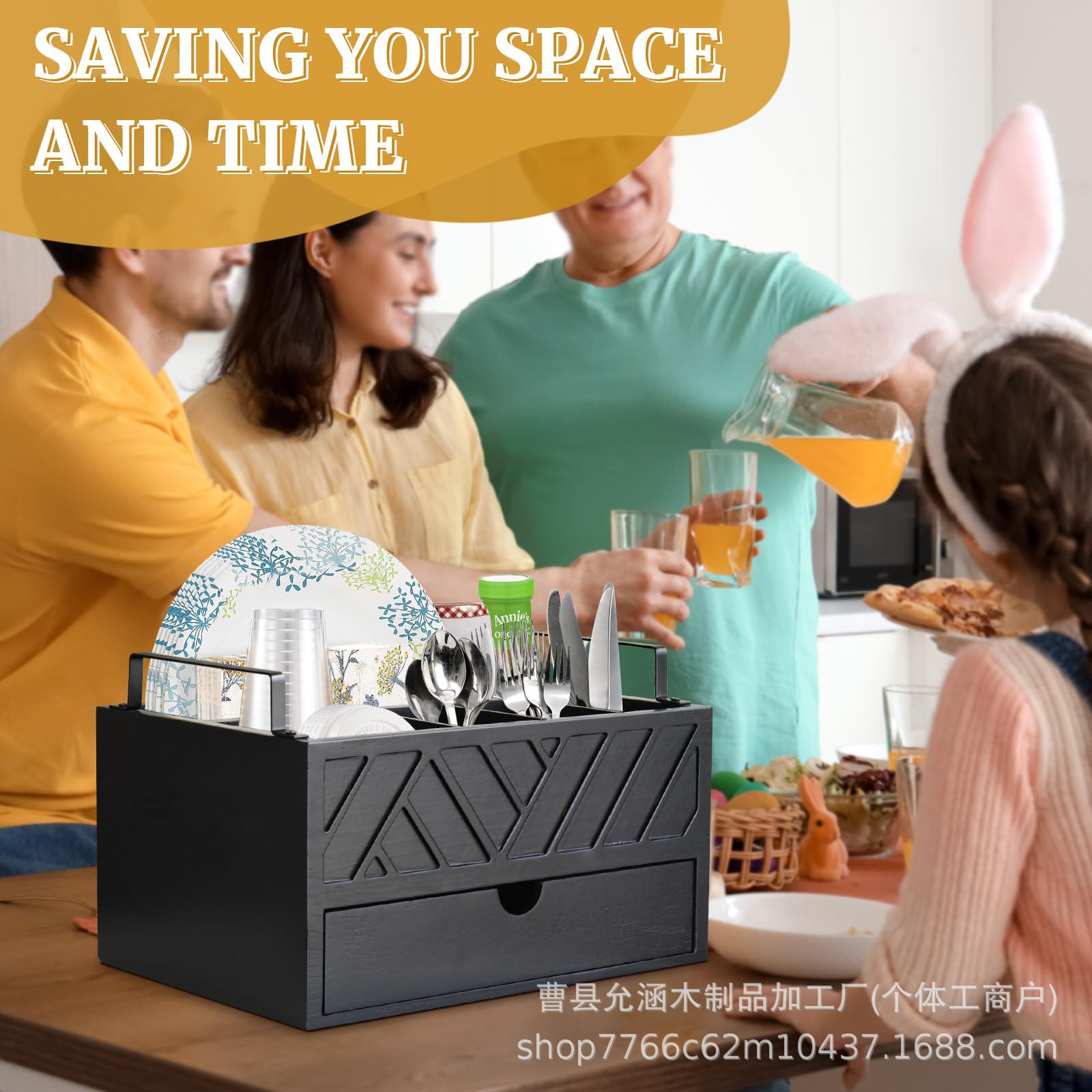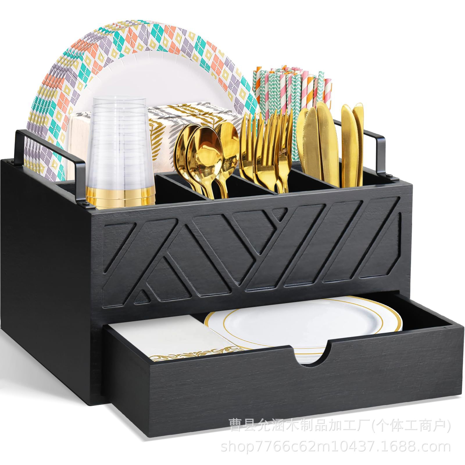 Трансграничная деревянная тарелка коробка для хранения можно переносить одноразовые бумажные тарелки держатель с большой подставкой для чашек