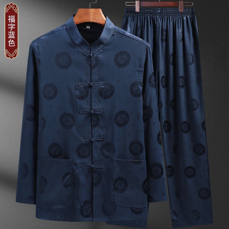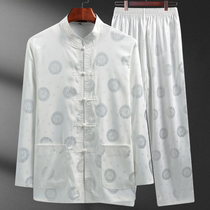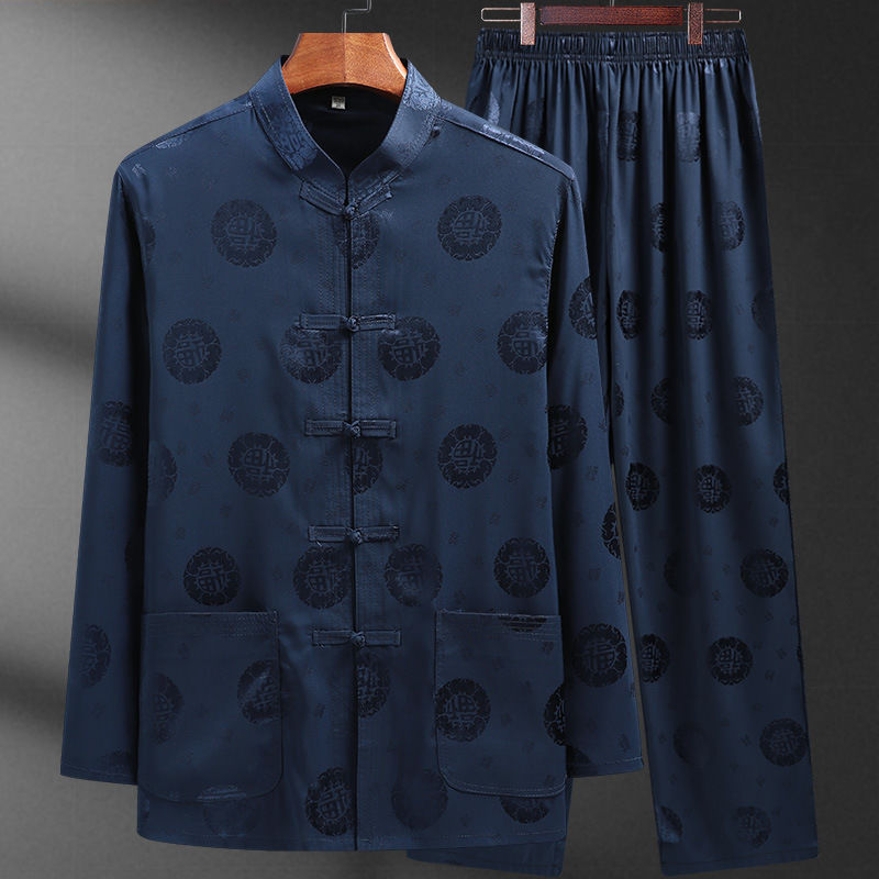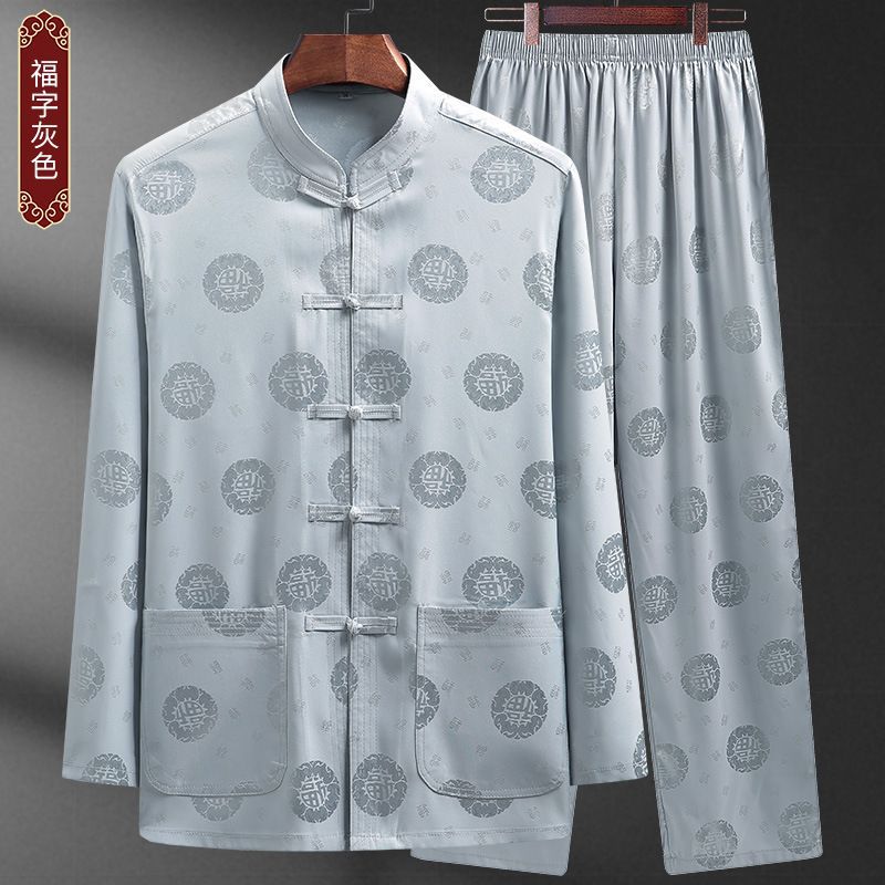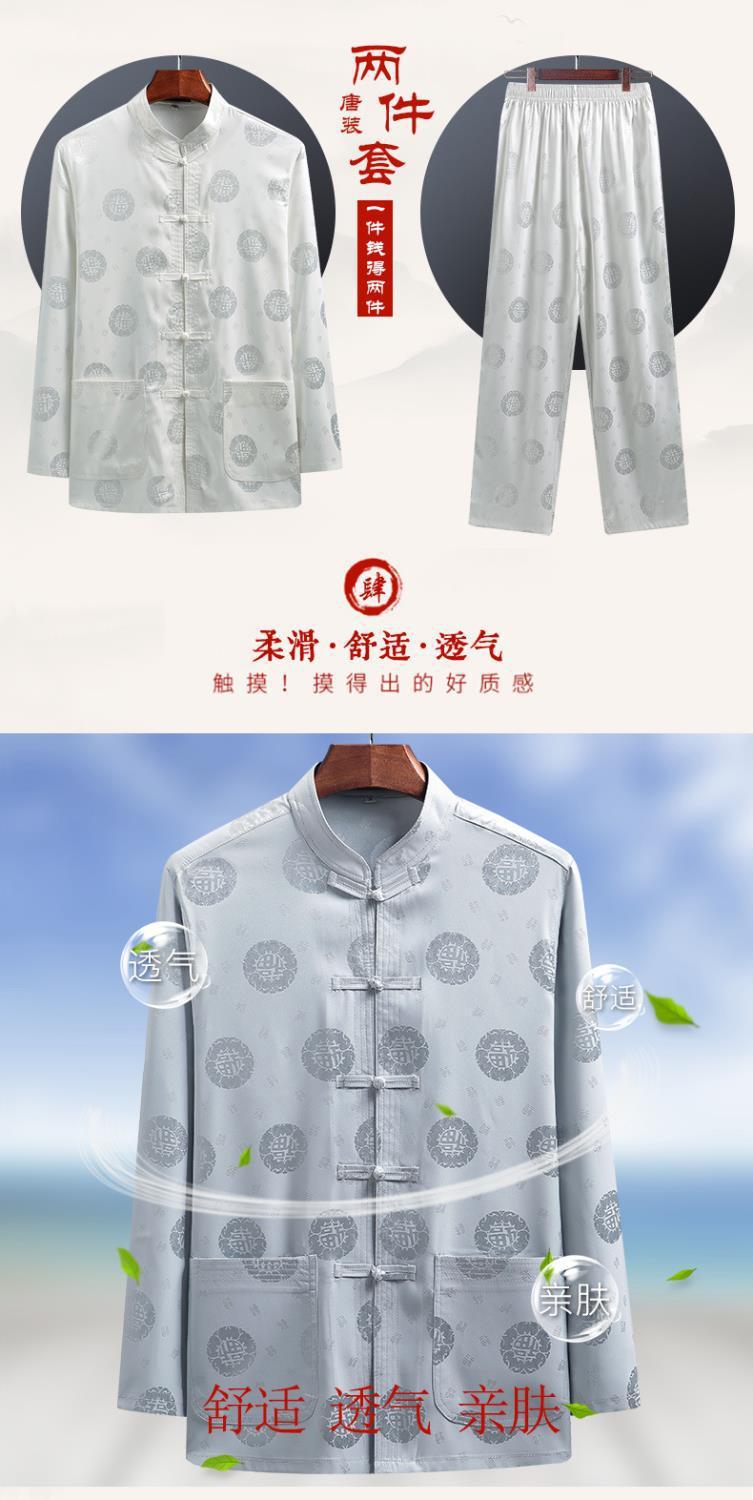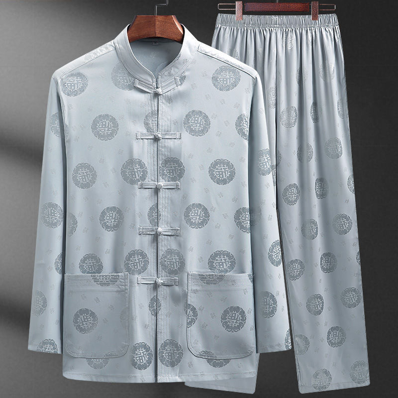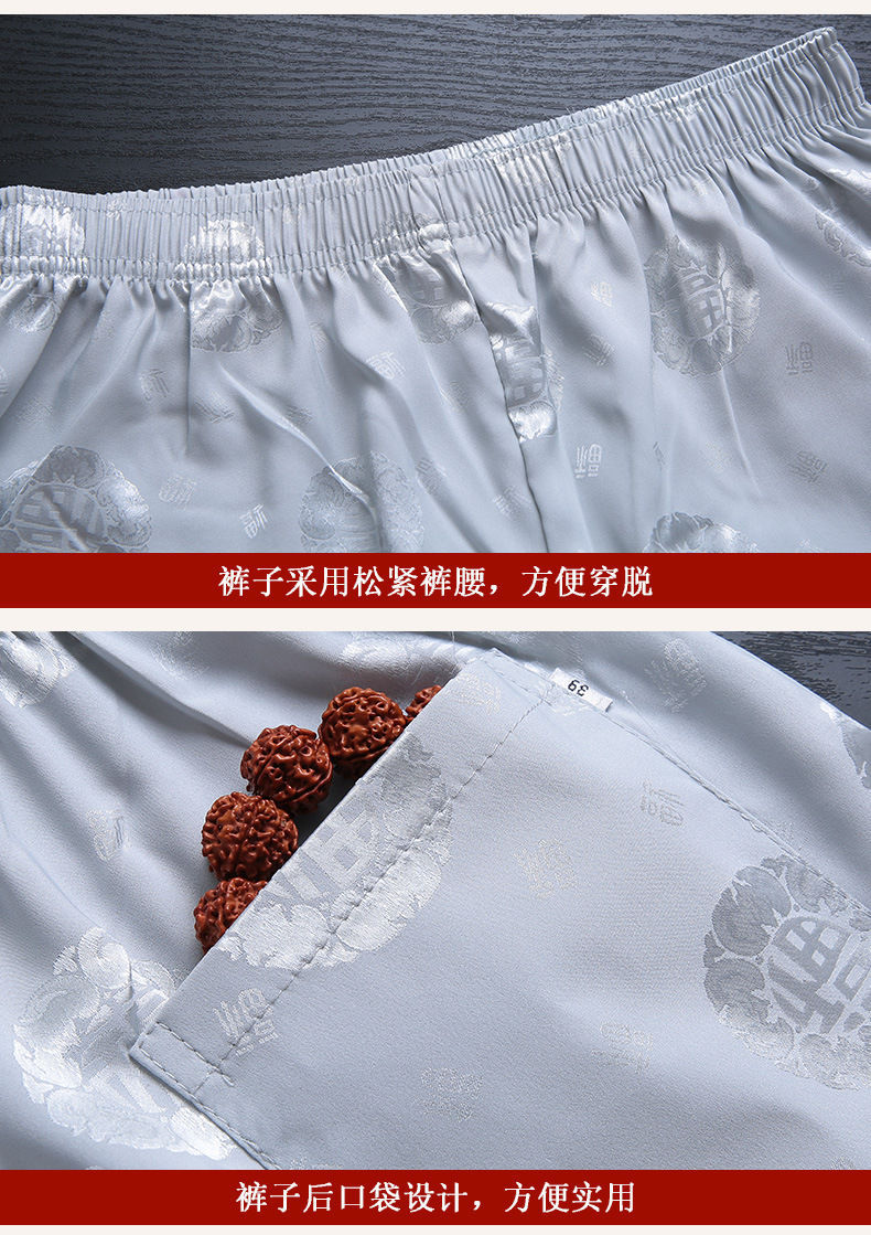 Весенний и летний костюм Тан для мужчин среднего и пожилого возраста тонкий комплект из ледяного шелка для пожилых дедушек одежда в китайском стиле