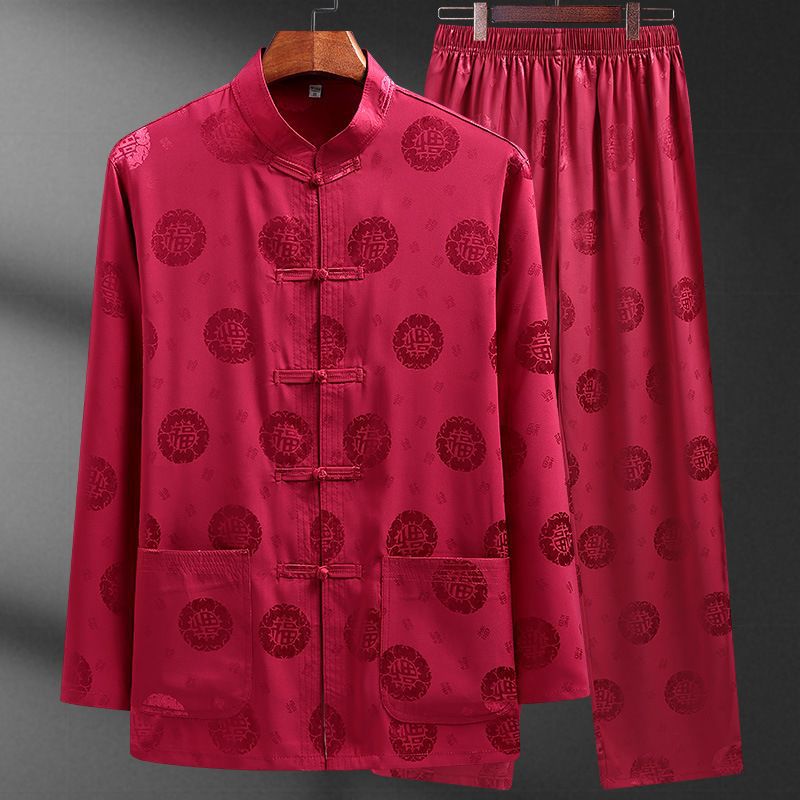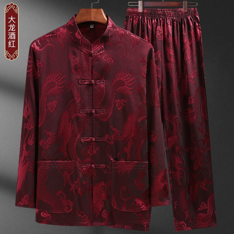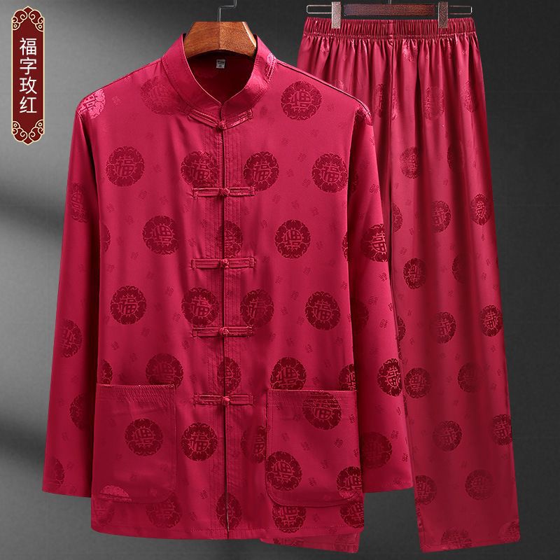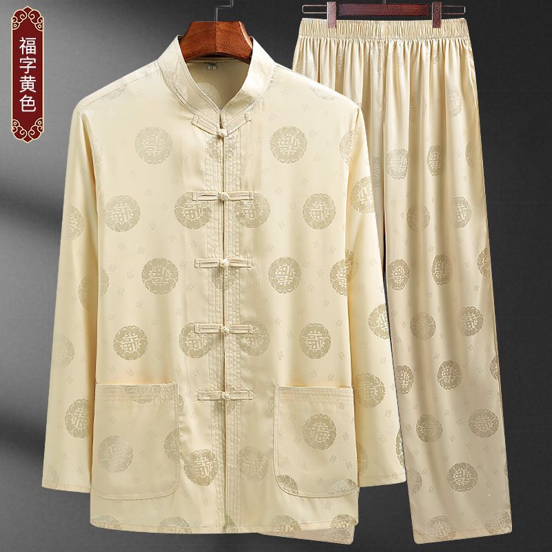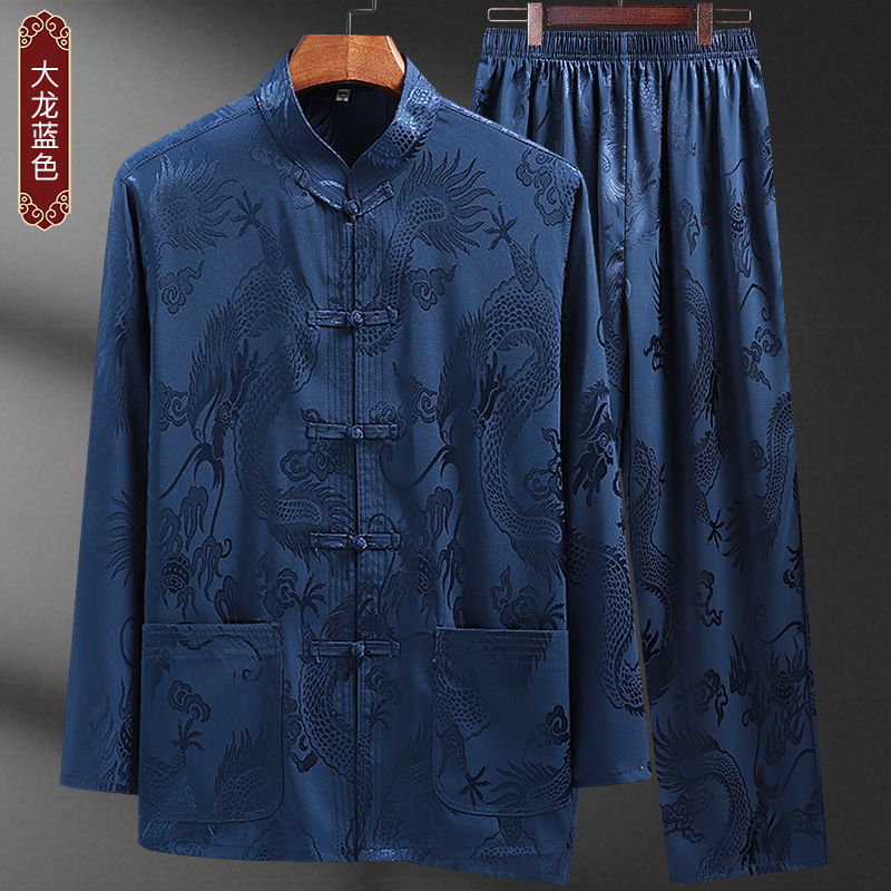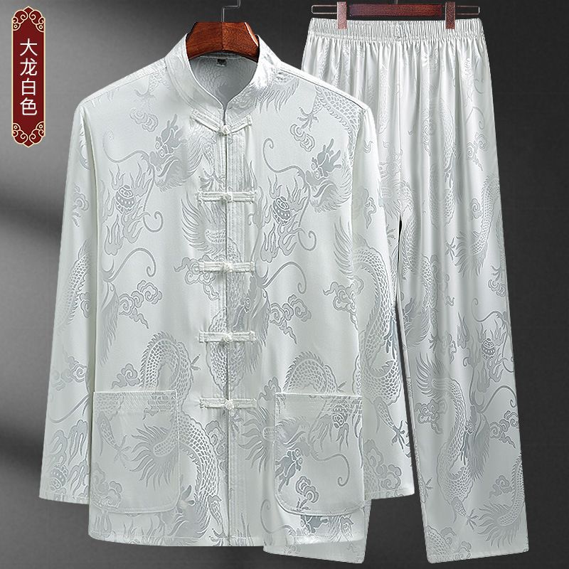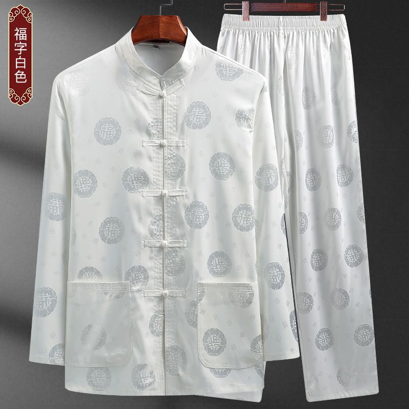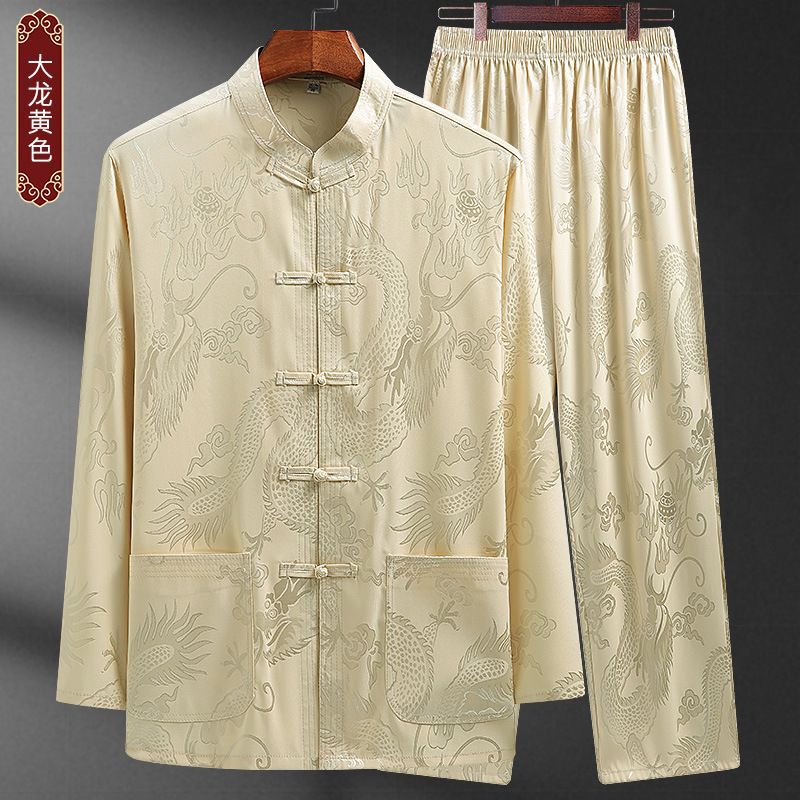 Весенний и летний костюм Тан для мужчин среднего и пожилого возраста тонкий комплект из ледяного шелка для пожилых дедушек одежда в китайском стиле
