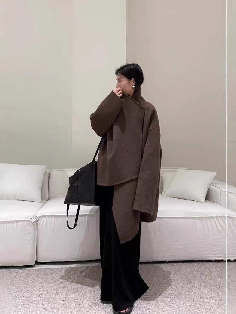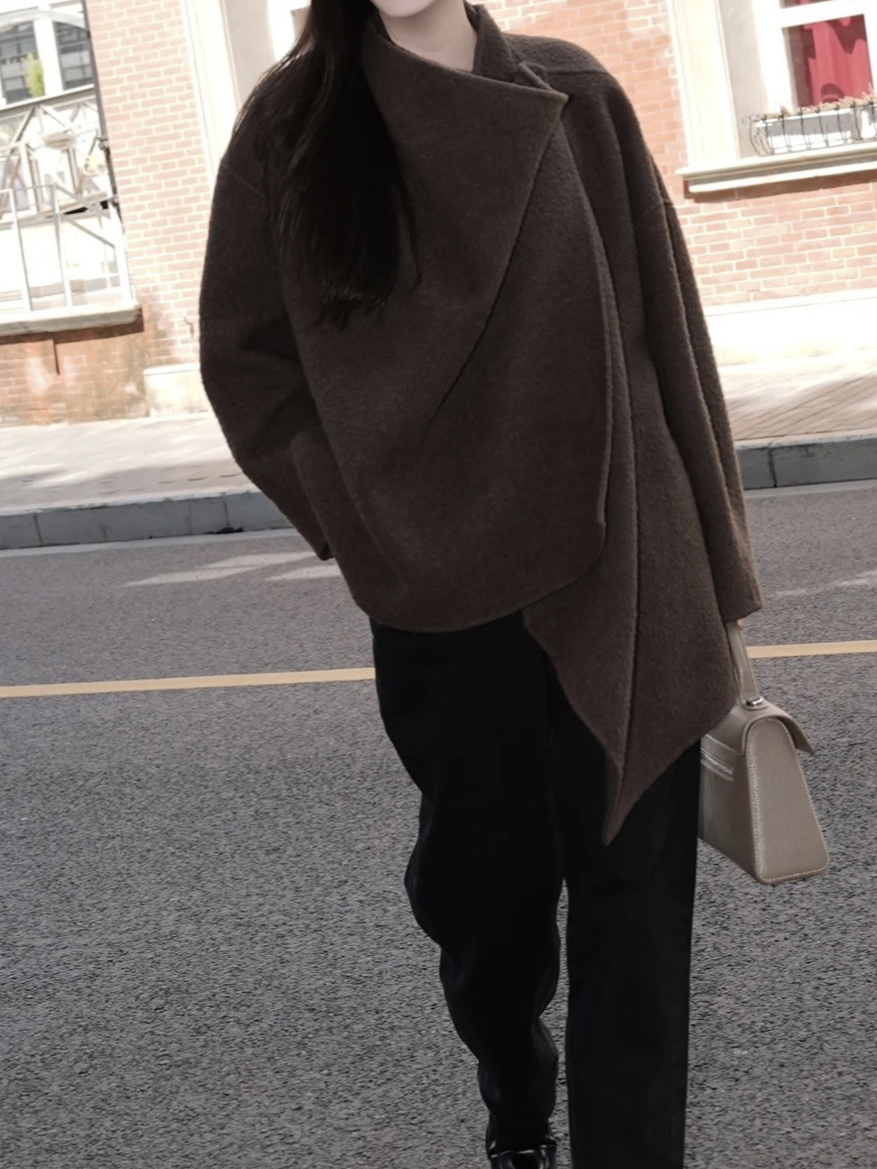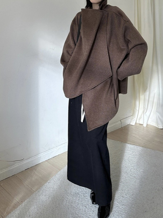 2024 Осенний и Зимний дизайн Чувство асимметричного сложения воротника