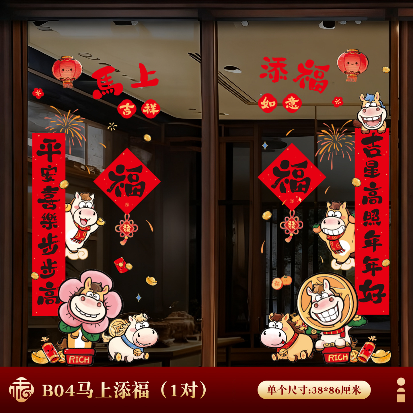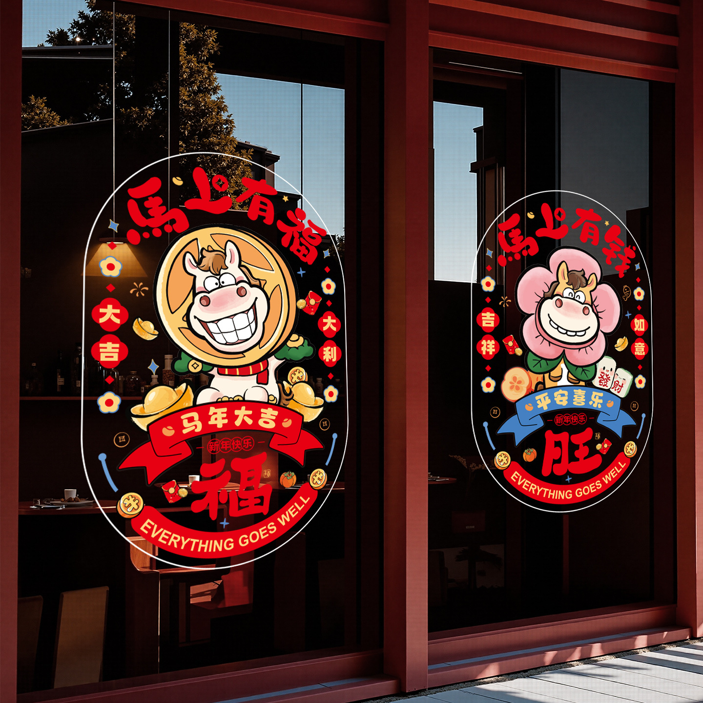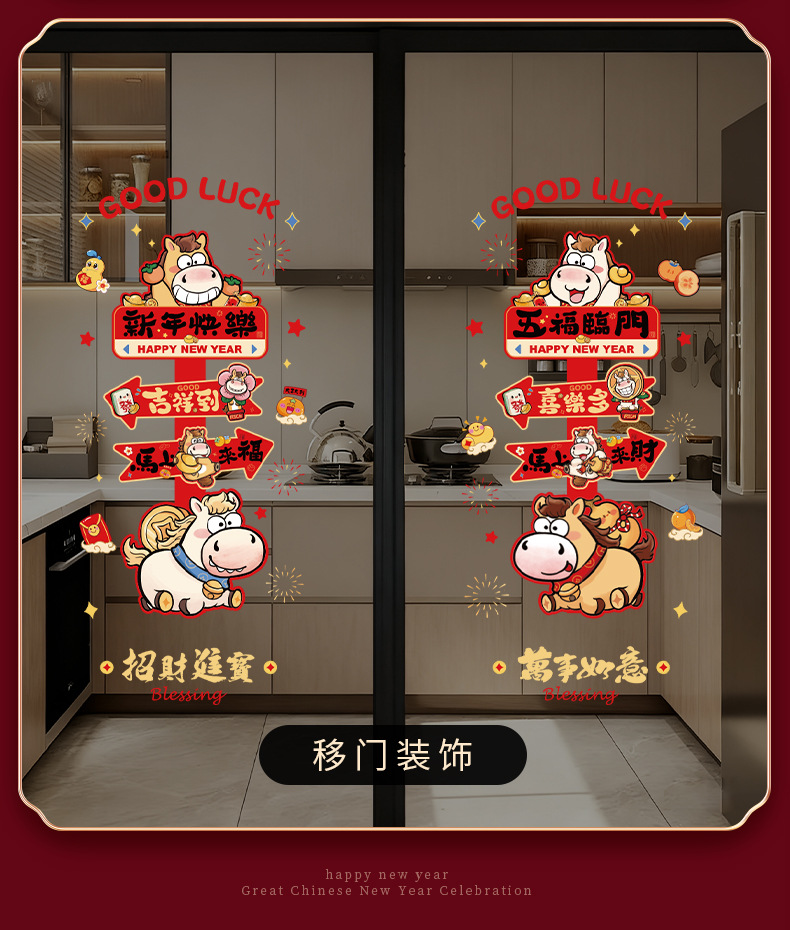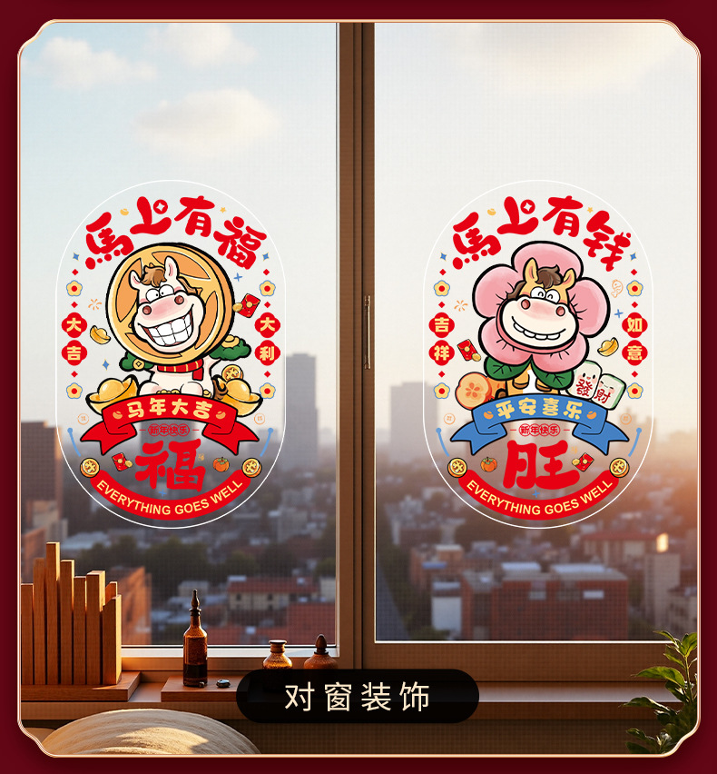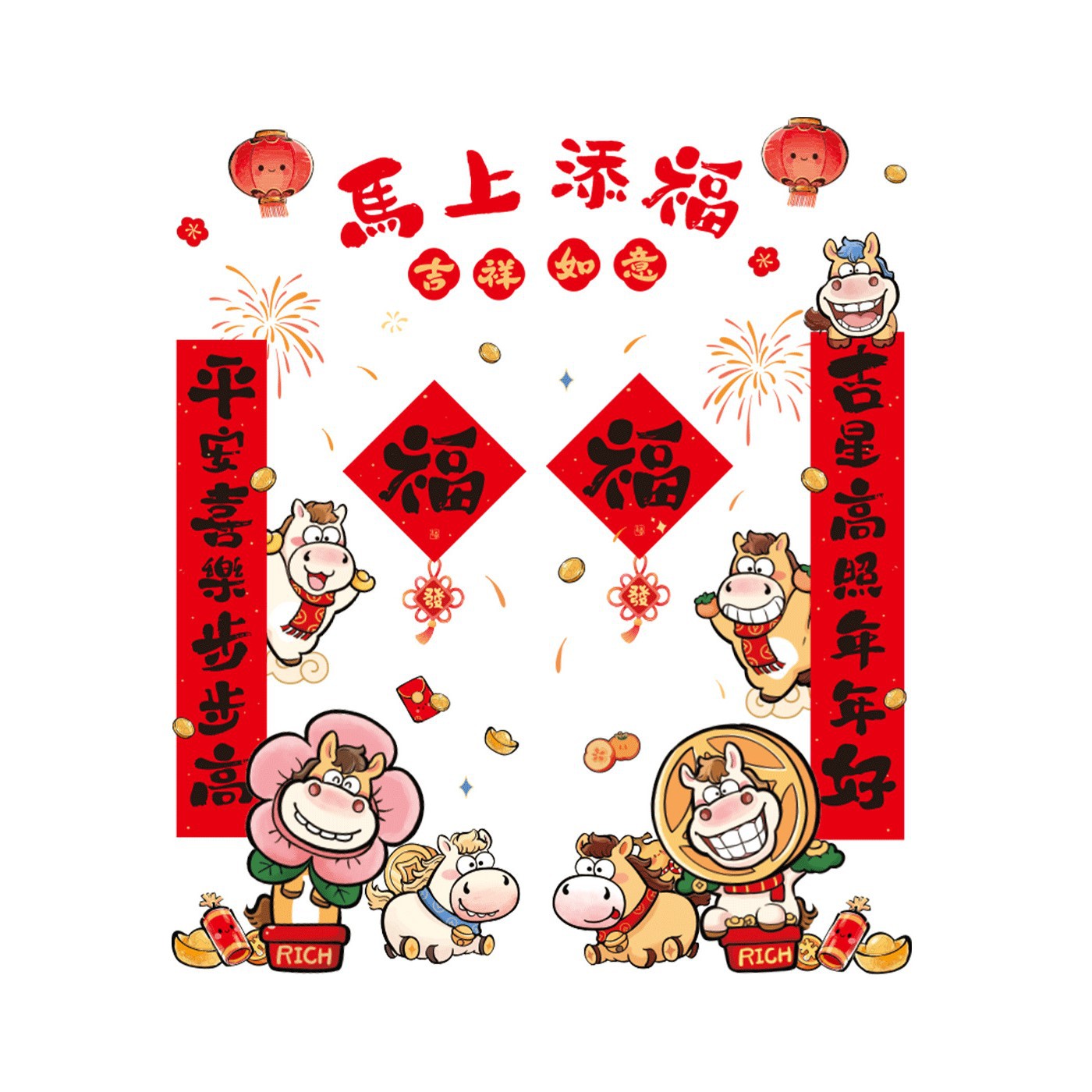 Новогодние украшения 2026 года: Декорации к Году Лошади, оформление для Нового года, стикеры с символом Фу для окон и дверей