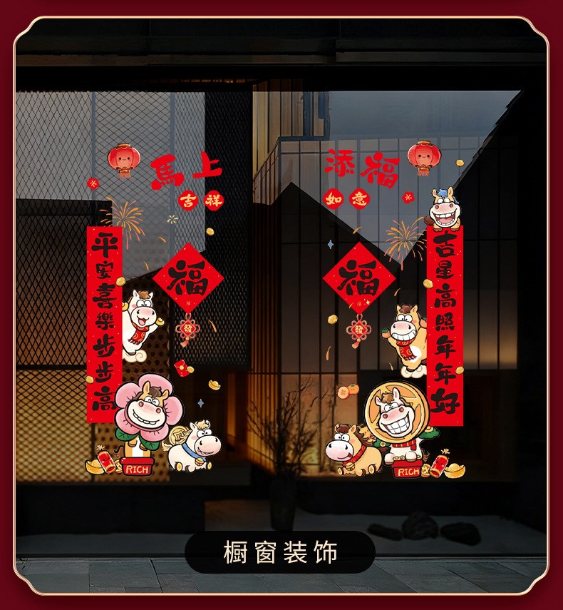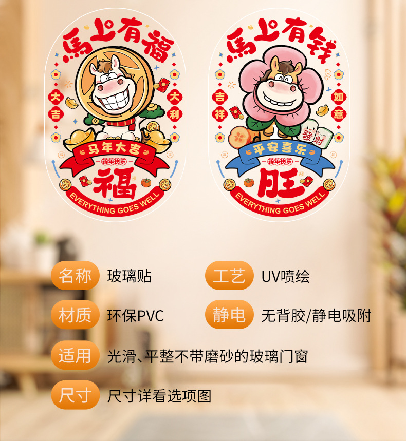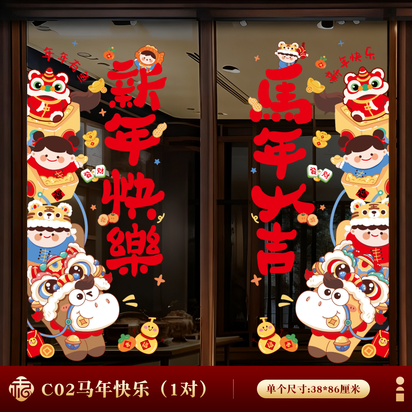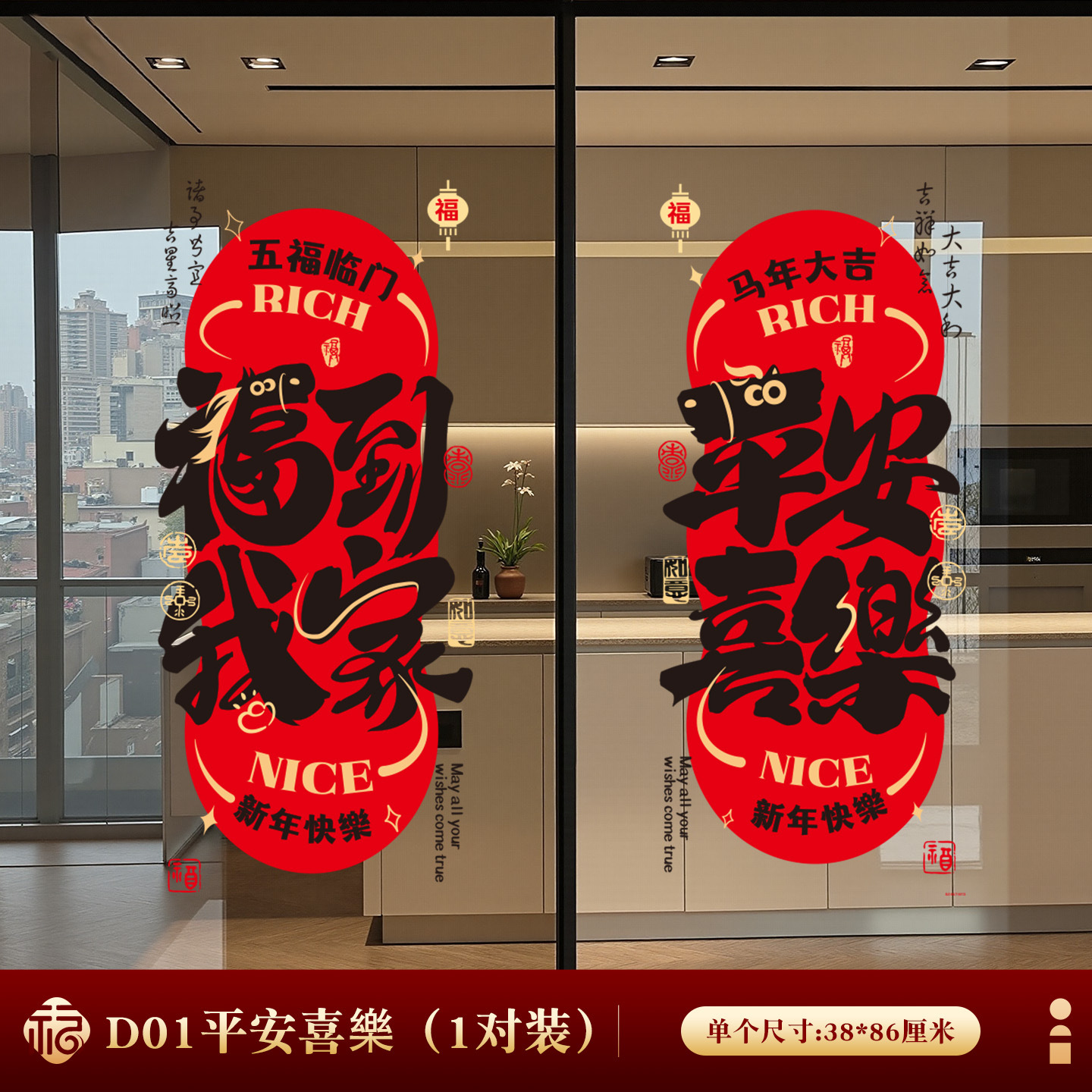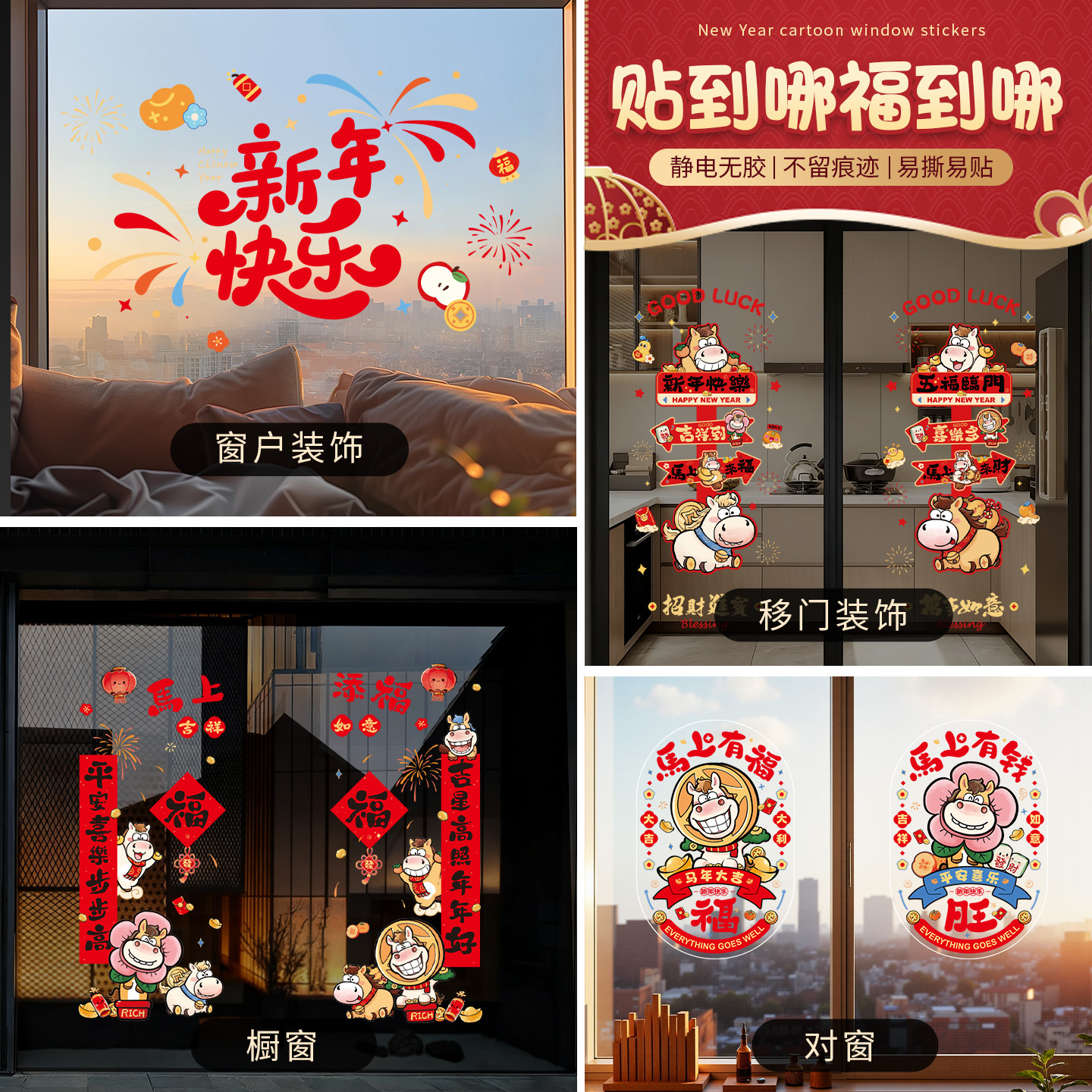 Новогодние украшения 2026 года: Декорации к Году Лошади, оформление для Нового года, стикеры с символом Фу для окон и дверей