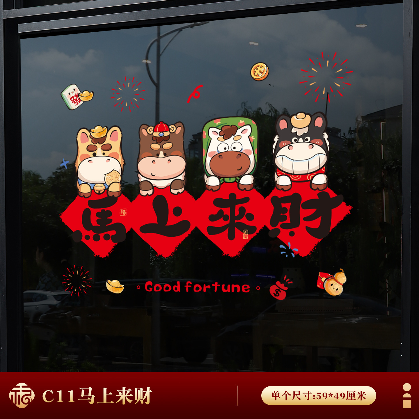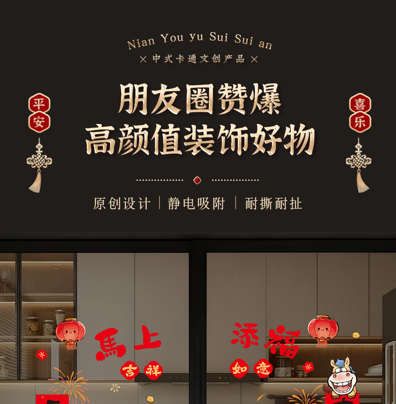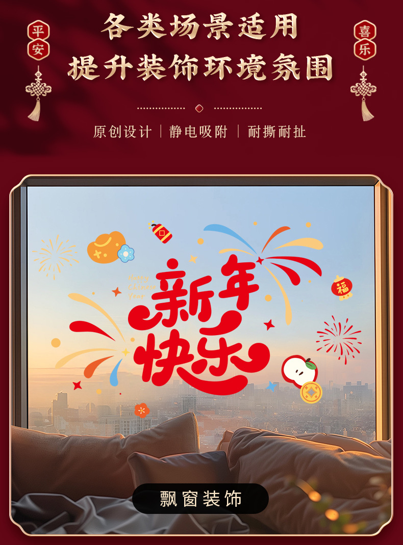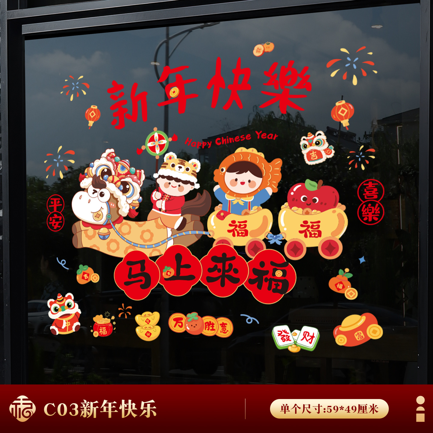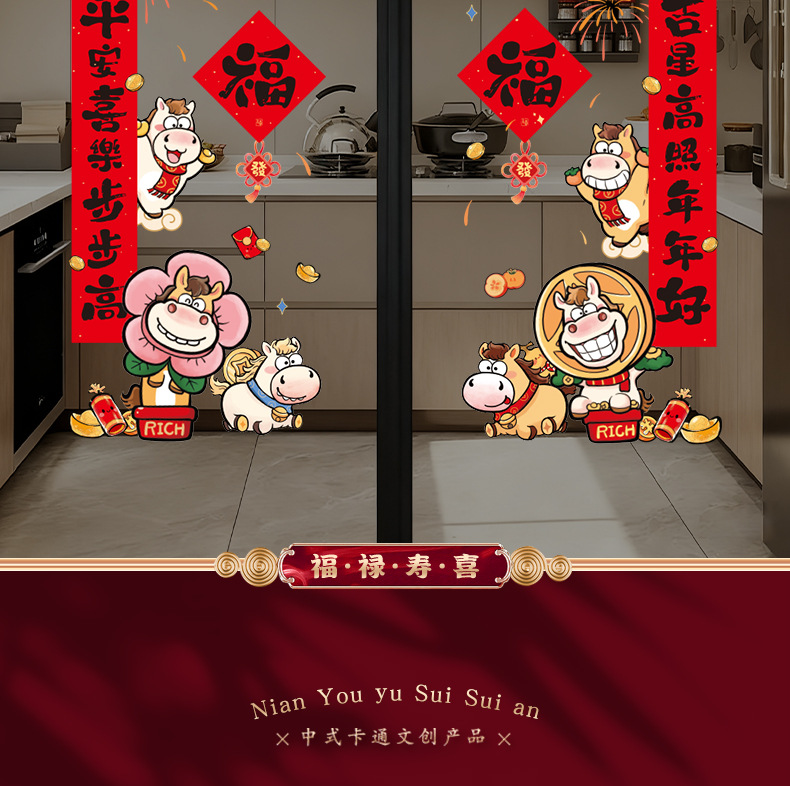 Новогодние украшения 2026 года: Декорации к Году Лошади, оформление для Нового года, стикеры с символом Фу для окон и дверей