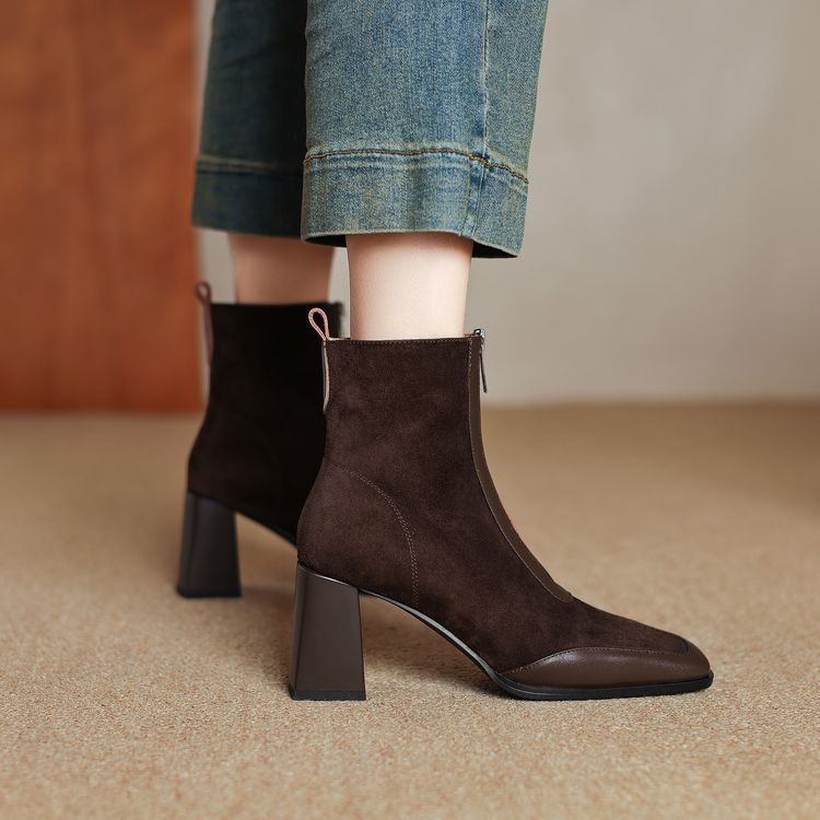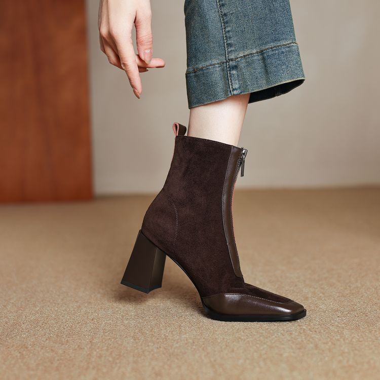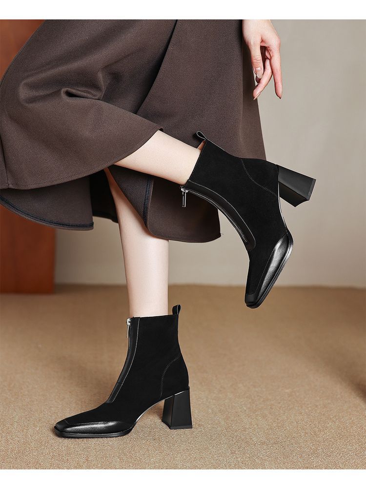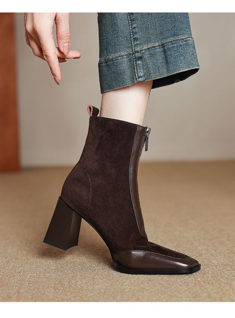 Винтажные сапоги на высоком каблуке женские 2024 застежки-молнии до осени и зимы модные простые дикие тощие сапоги модные сапоги плюс бархатные сапоги