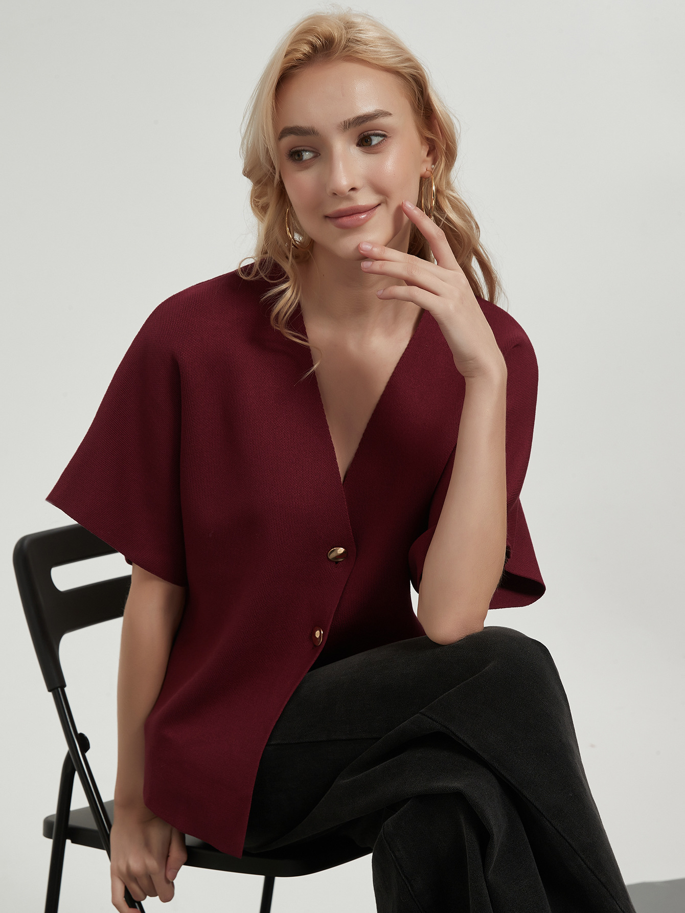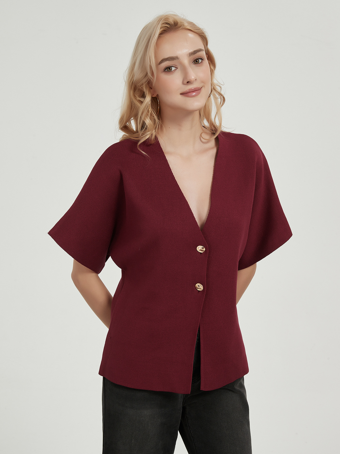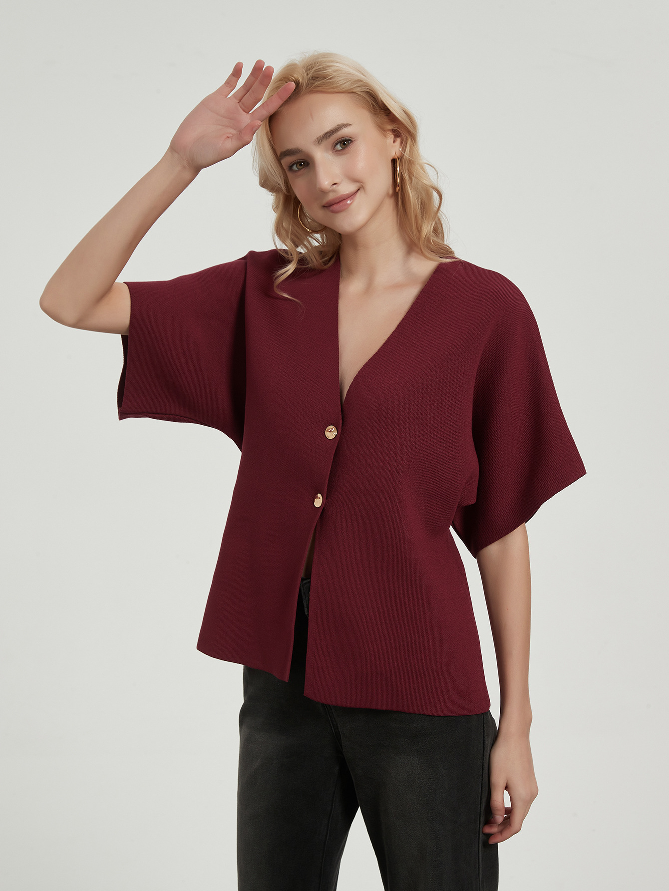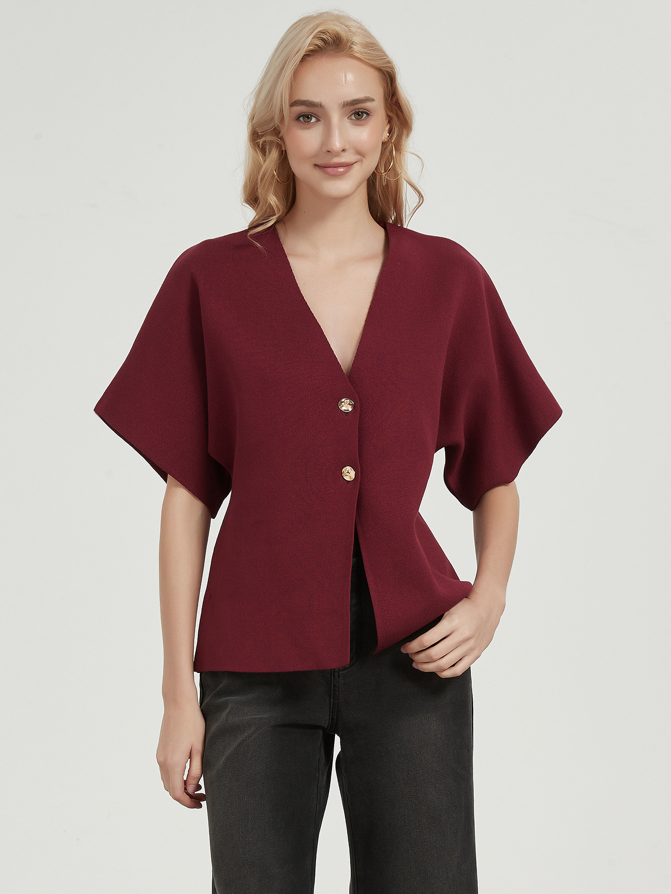 Amazon трансграничная женская одежда оптом в европейском и американском стиле мода на талию с тонким V-образным вырезом трикотажный кардиган осенний топ с короткими рукавами