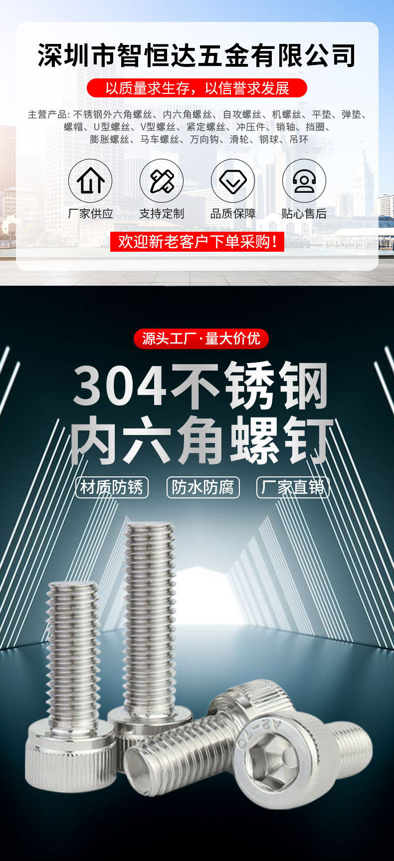 Винты/болты с шестигранной головкой из нержавеющей стали 304 DIN912, удлиненный винт с цилиндрической головкой/винты с чашечной головкой M3-M6
