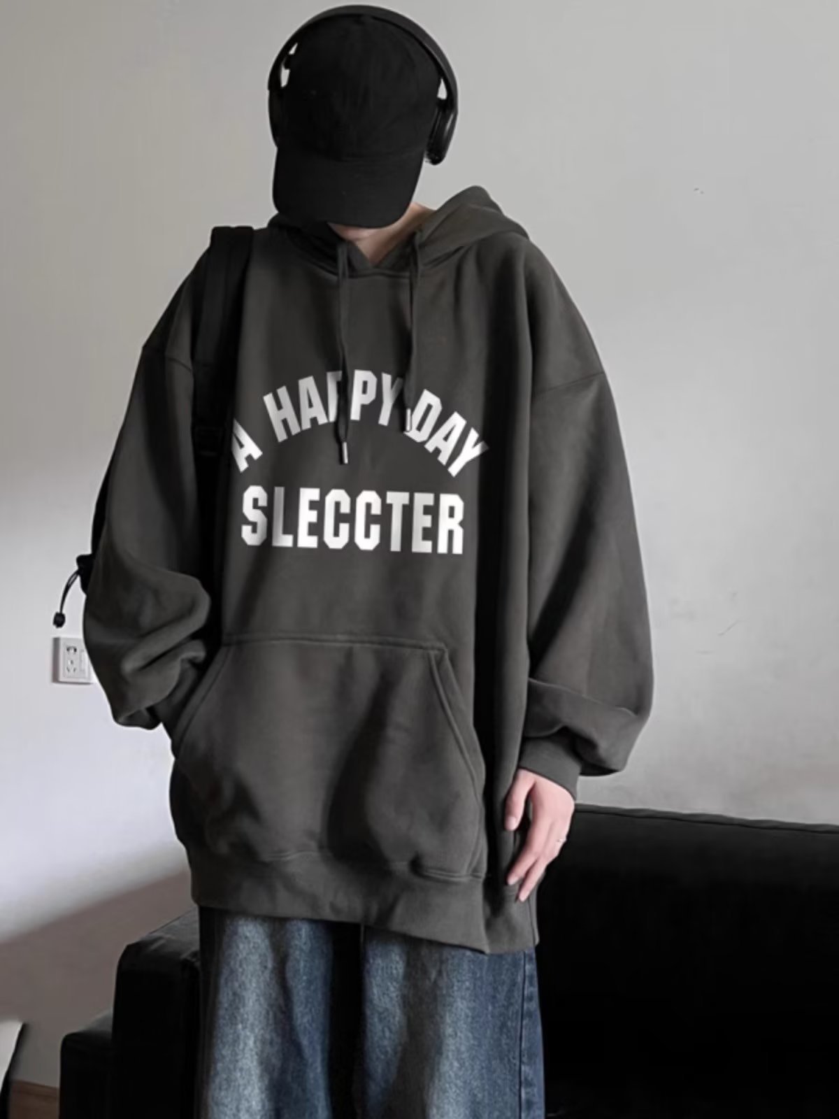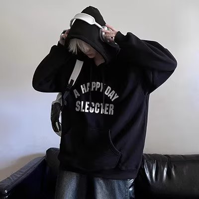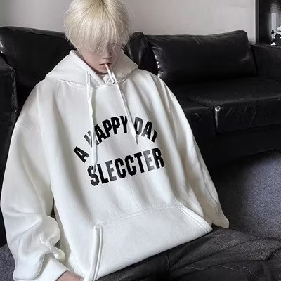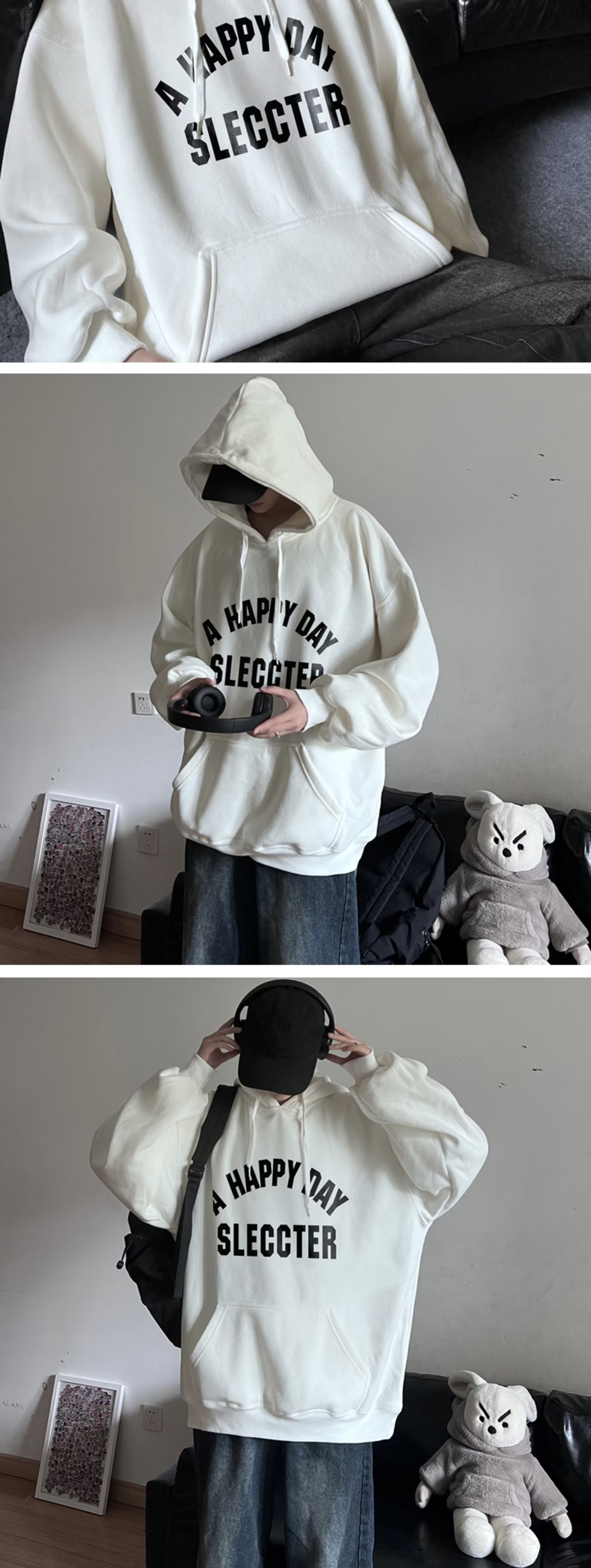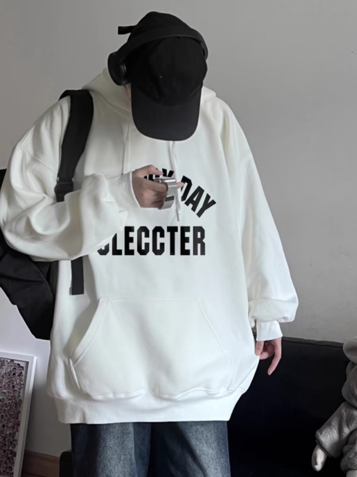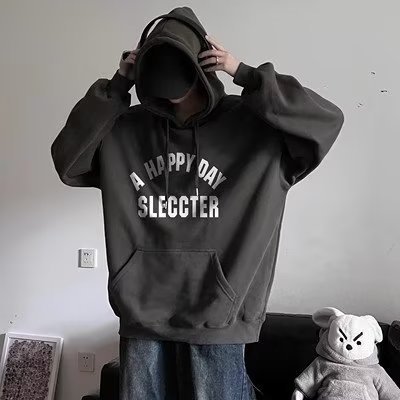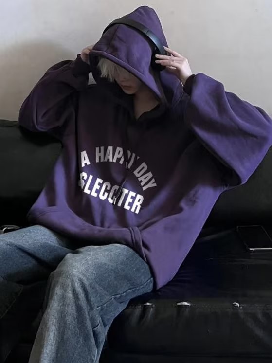 Фиолетовый капюшон с бархатной свитер мужской осенний и зимний молодежный новый алфавитный куртка повседневный дикий топ с принтом