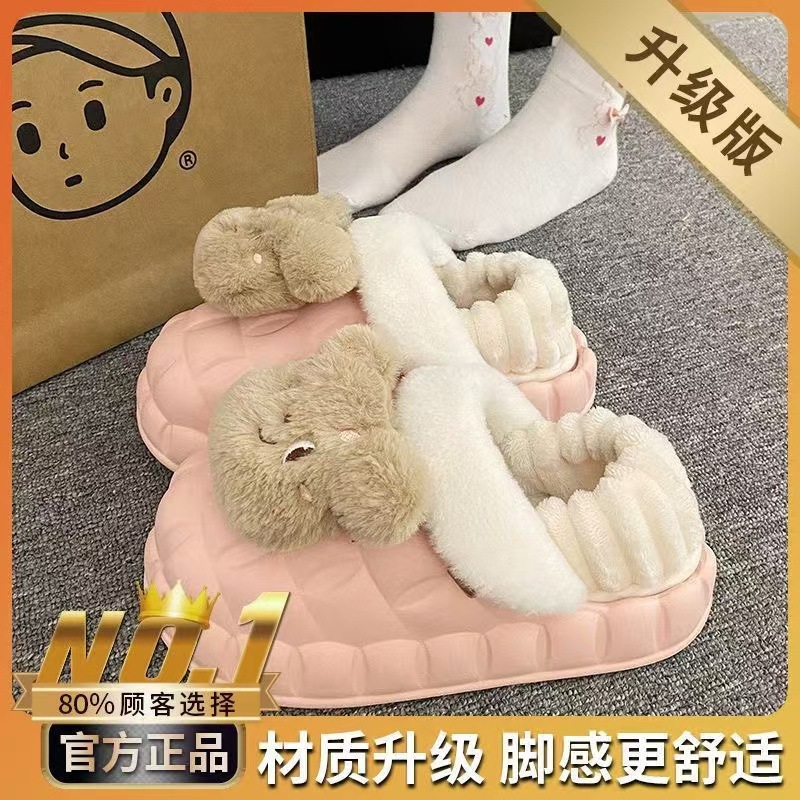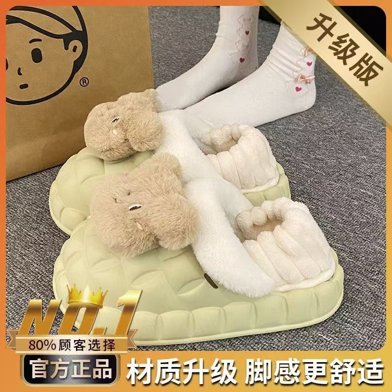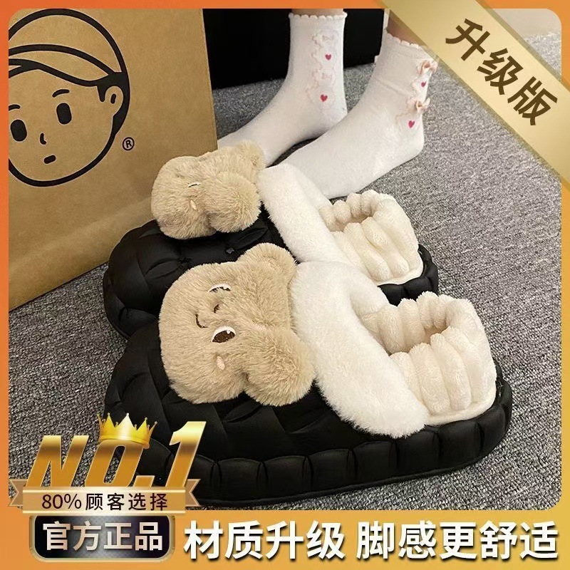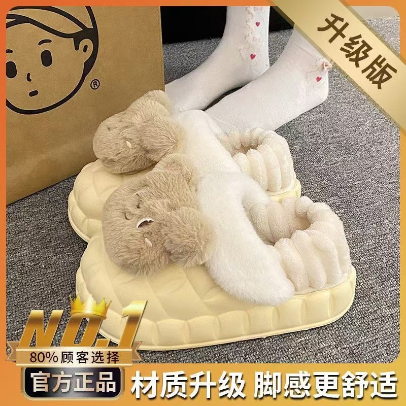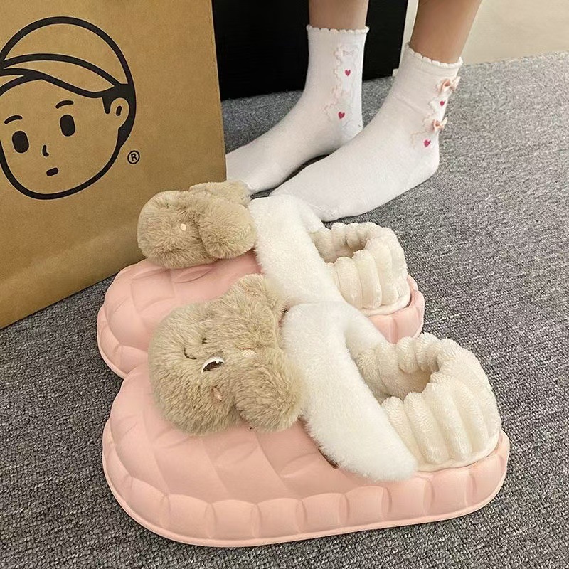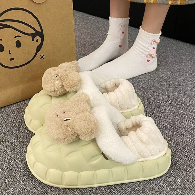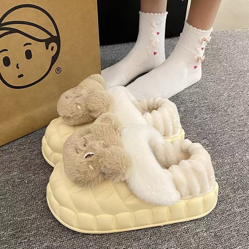 Симпатичные меха меха и хлопчатобумажные тапочки зимой