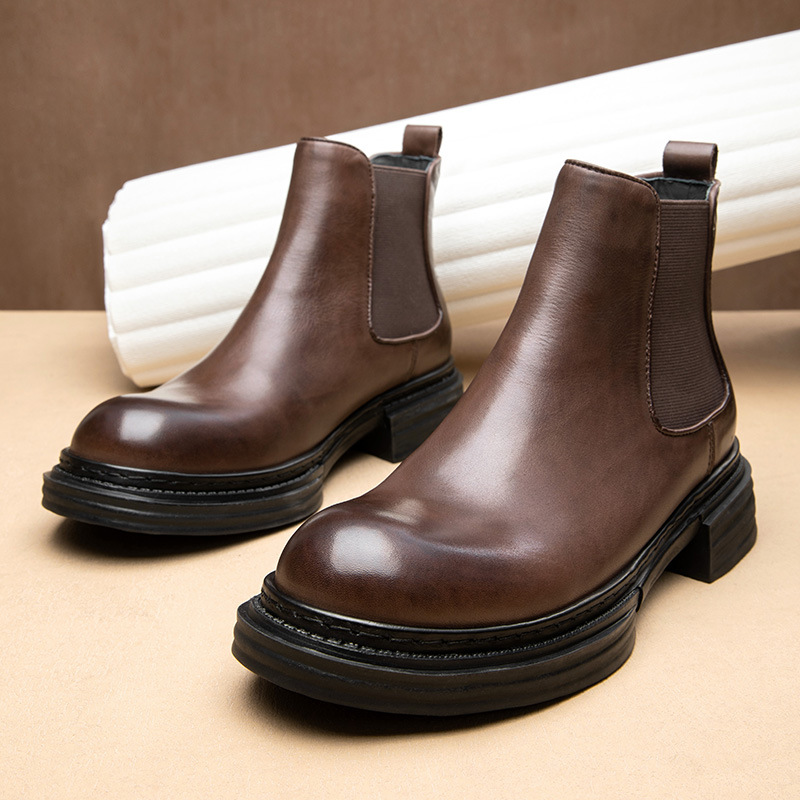 Кожаные сапоги челси мужские повседневные кожаные паровозные короткие сапоги британские ретро мартина сапоги мужские толстые подошвы ручной работы