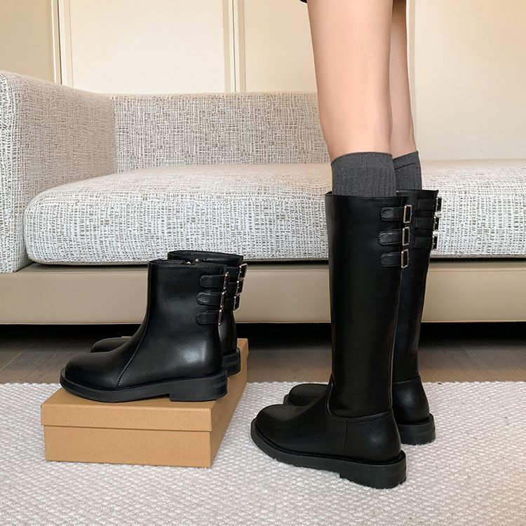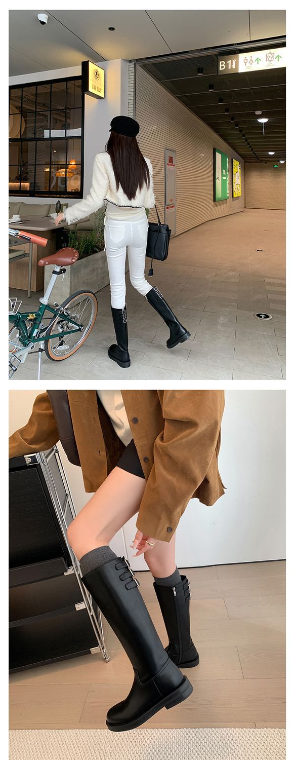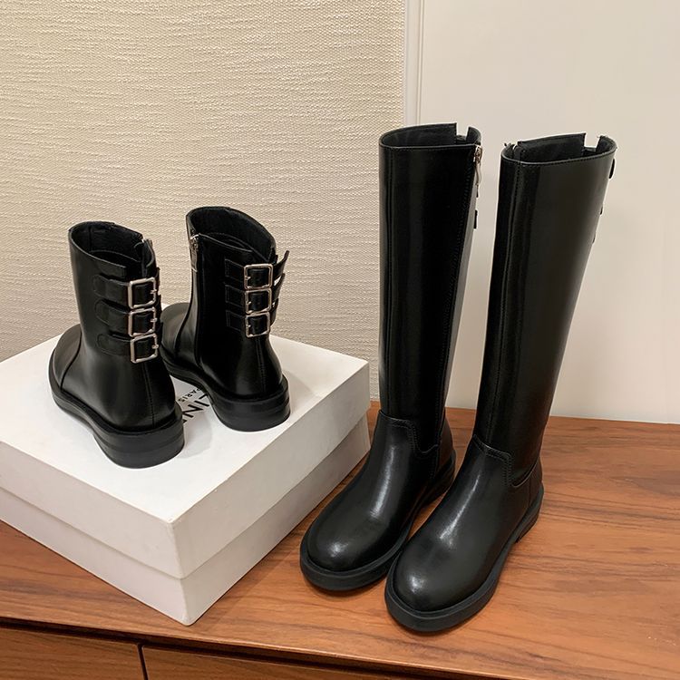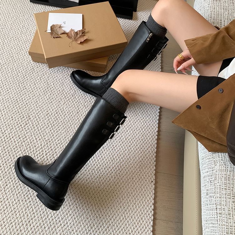 Сладкий и прохладный ремень пряжка высокие сапоги рыцаря женские кожаные сапоги не колено