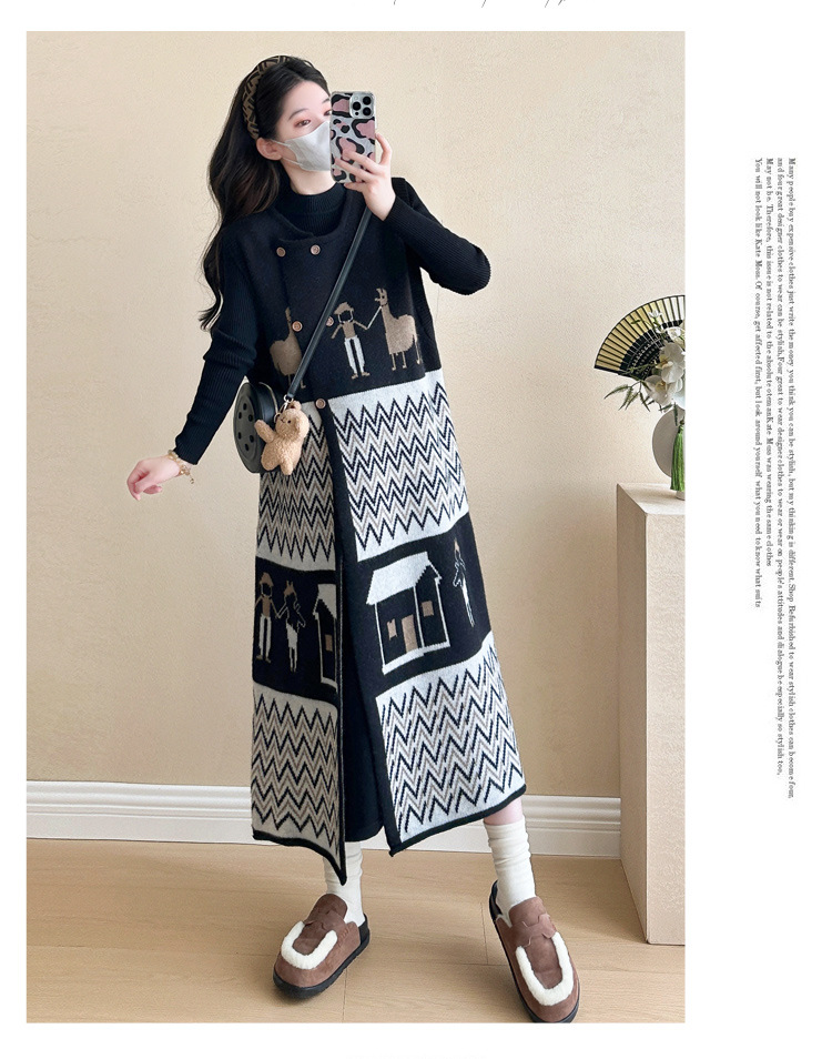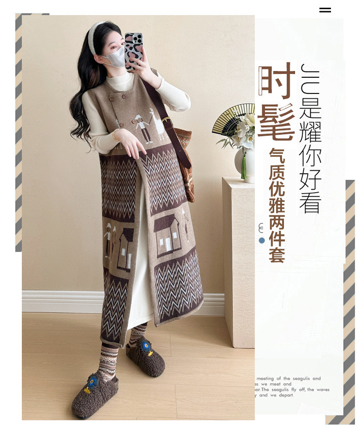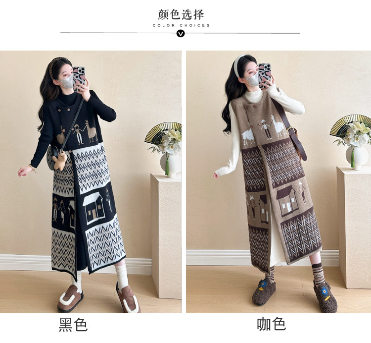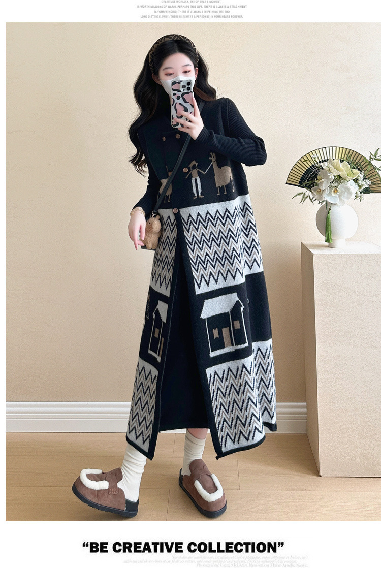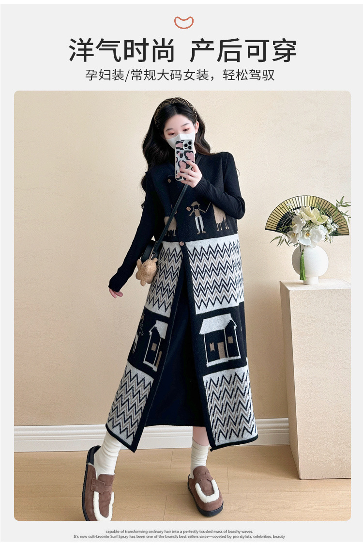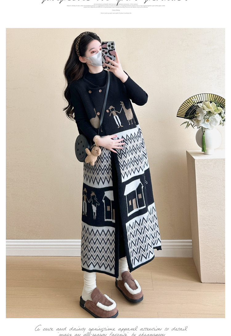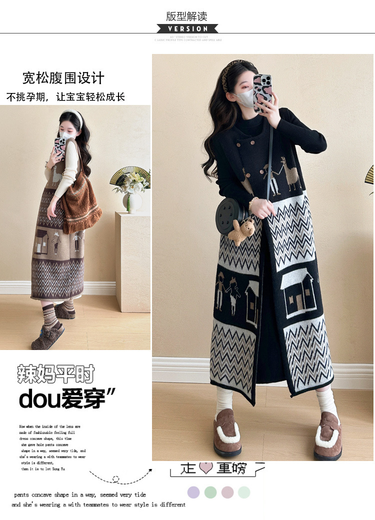 Одежда для беременных 2024 новый осенний ретро трикотажный жилет платье для беременных мам набор из двух частей осенний и зимний набор прилив