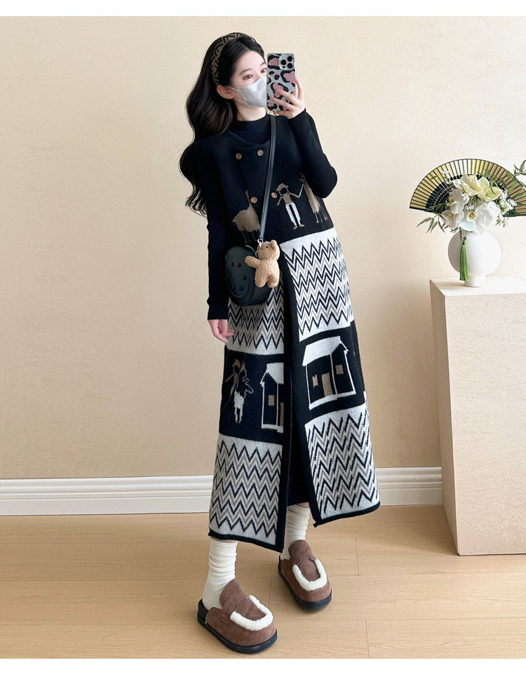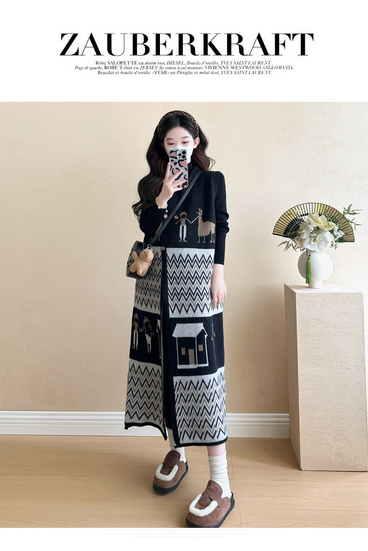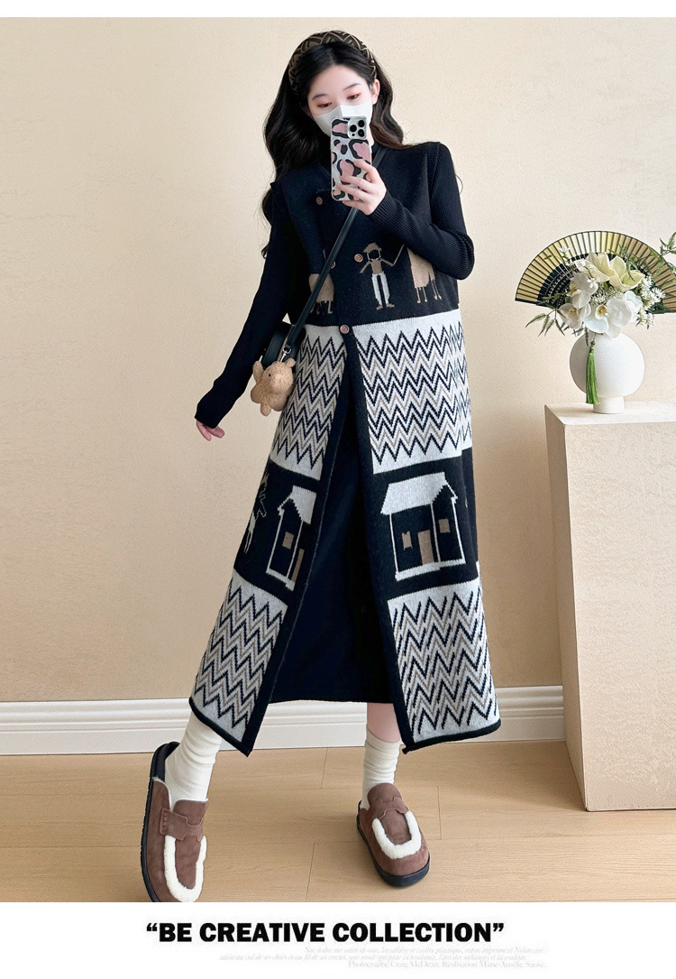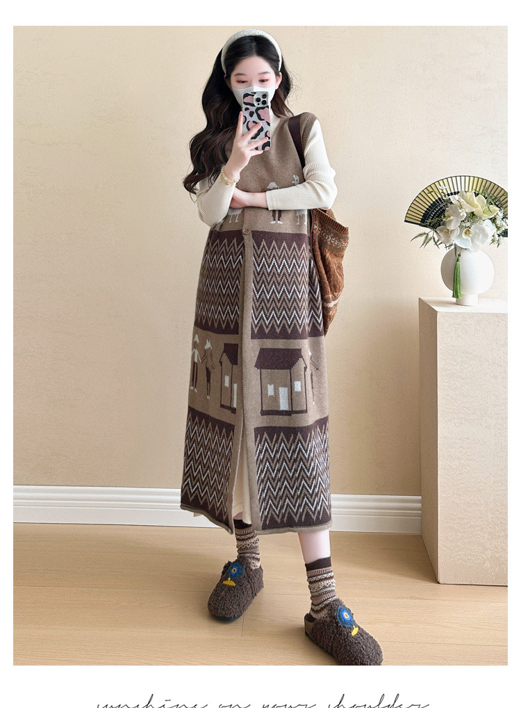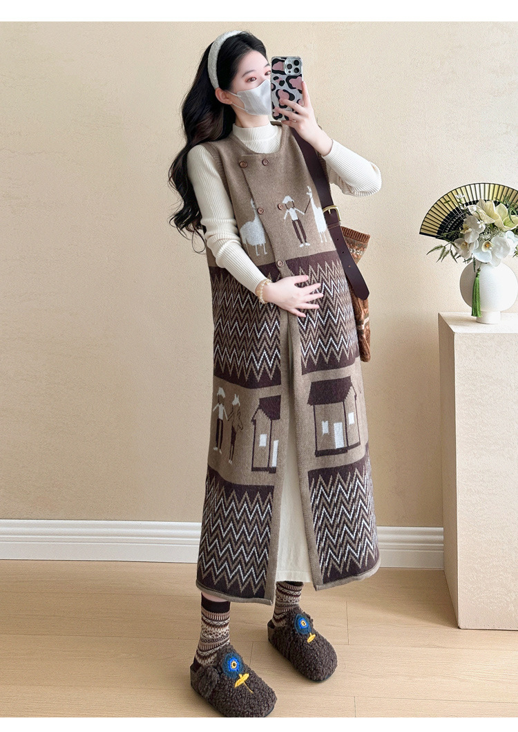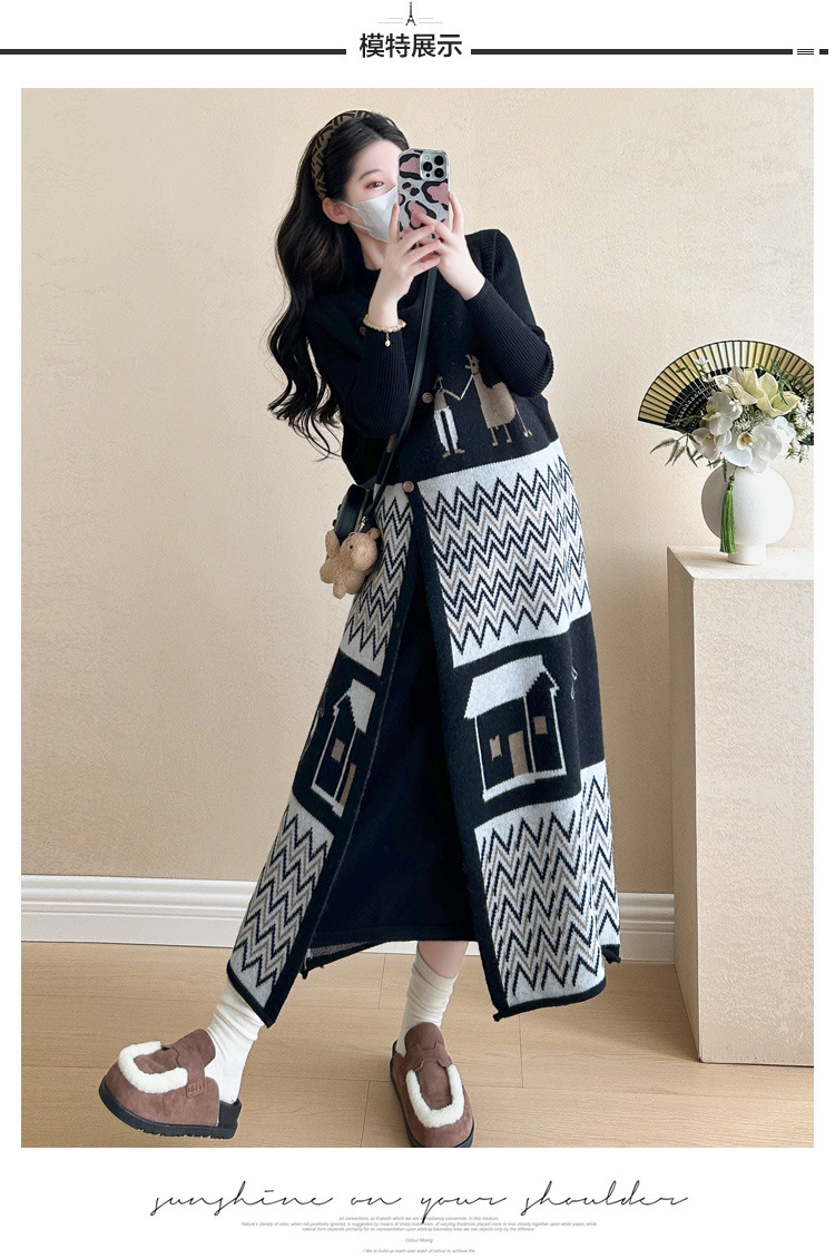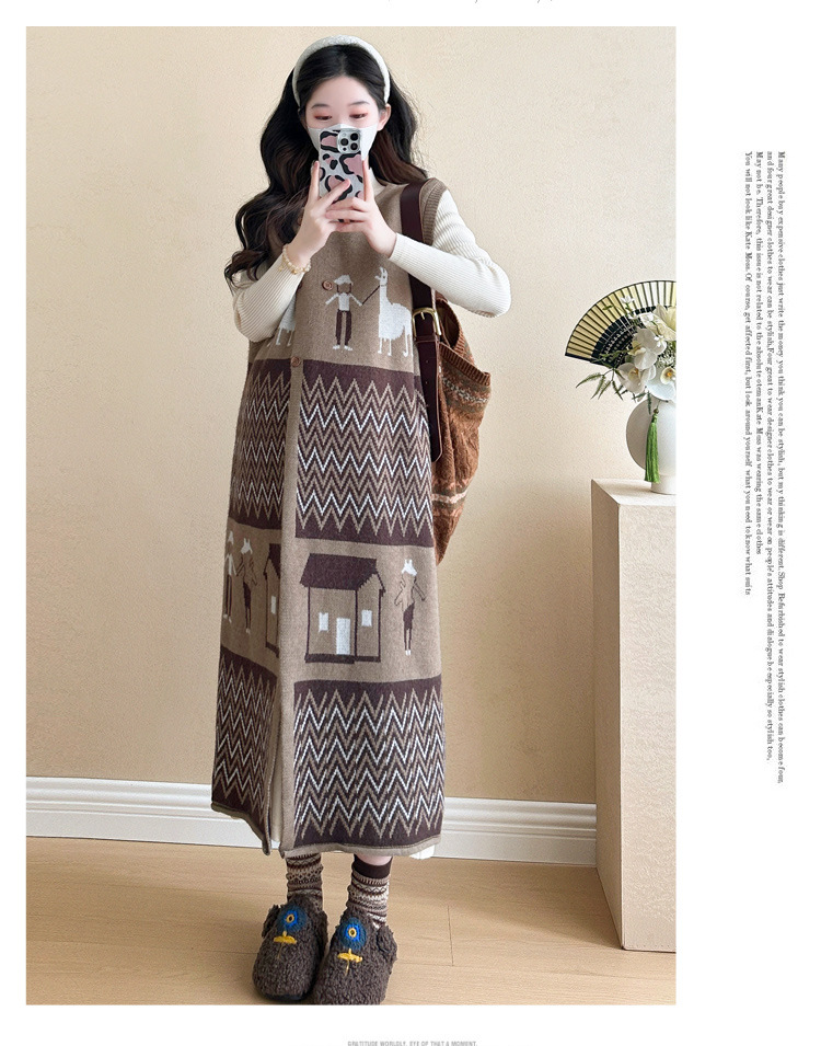Одежда для беременных 2024 новый осенний ретро трикотажный жилет платье для беременных мам набор из двух частей осенний и зимний набор прилив