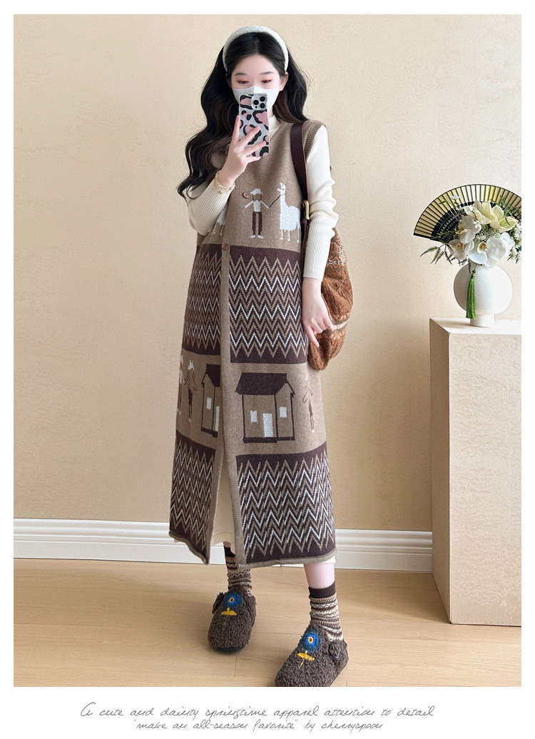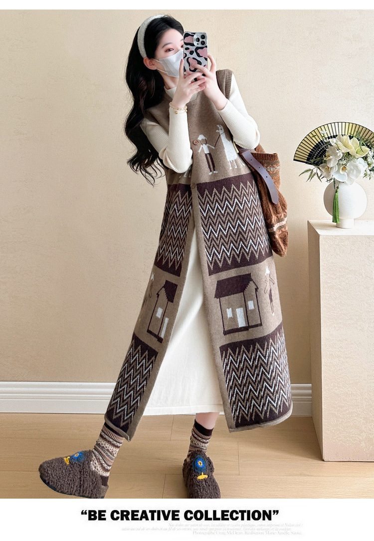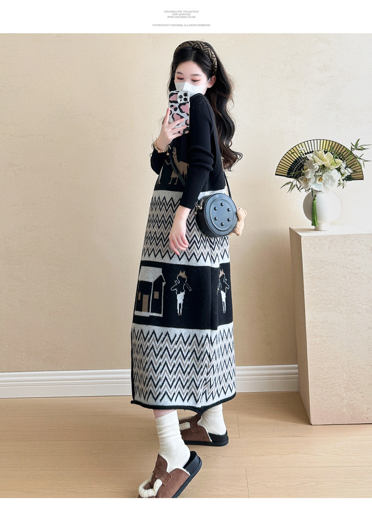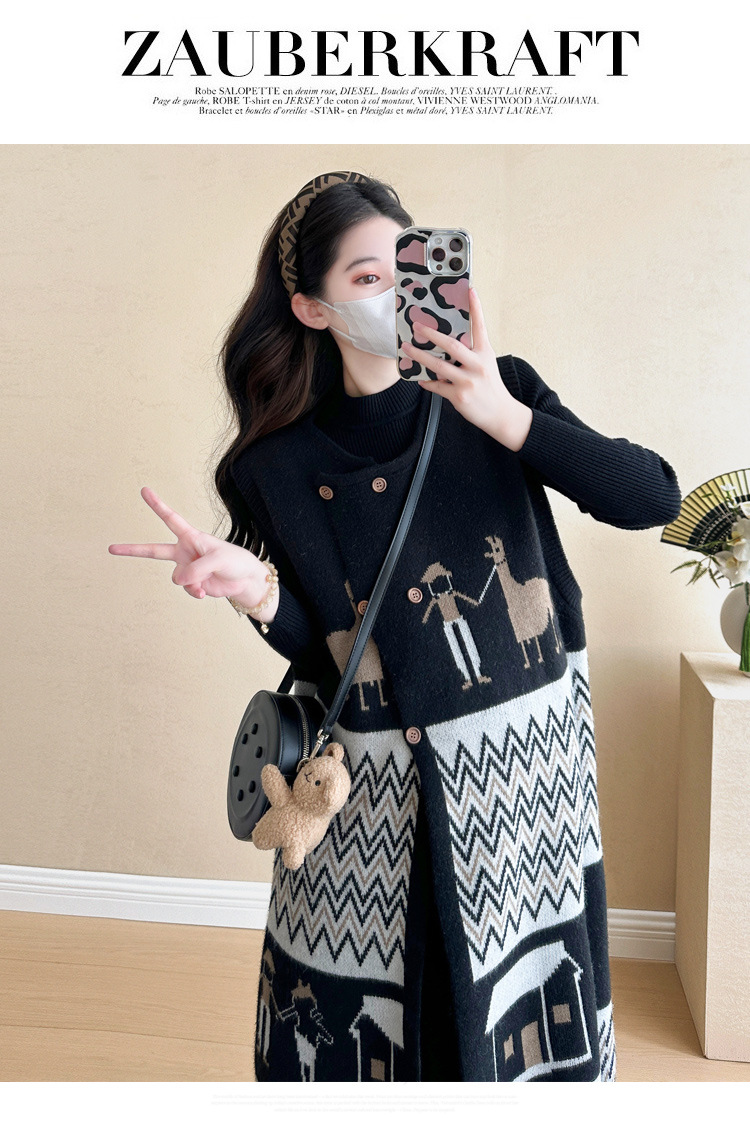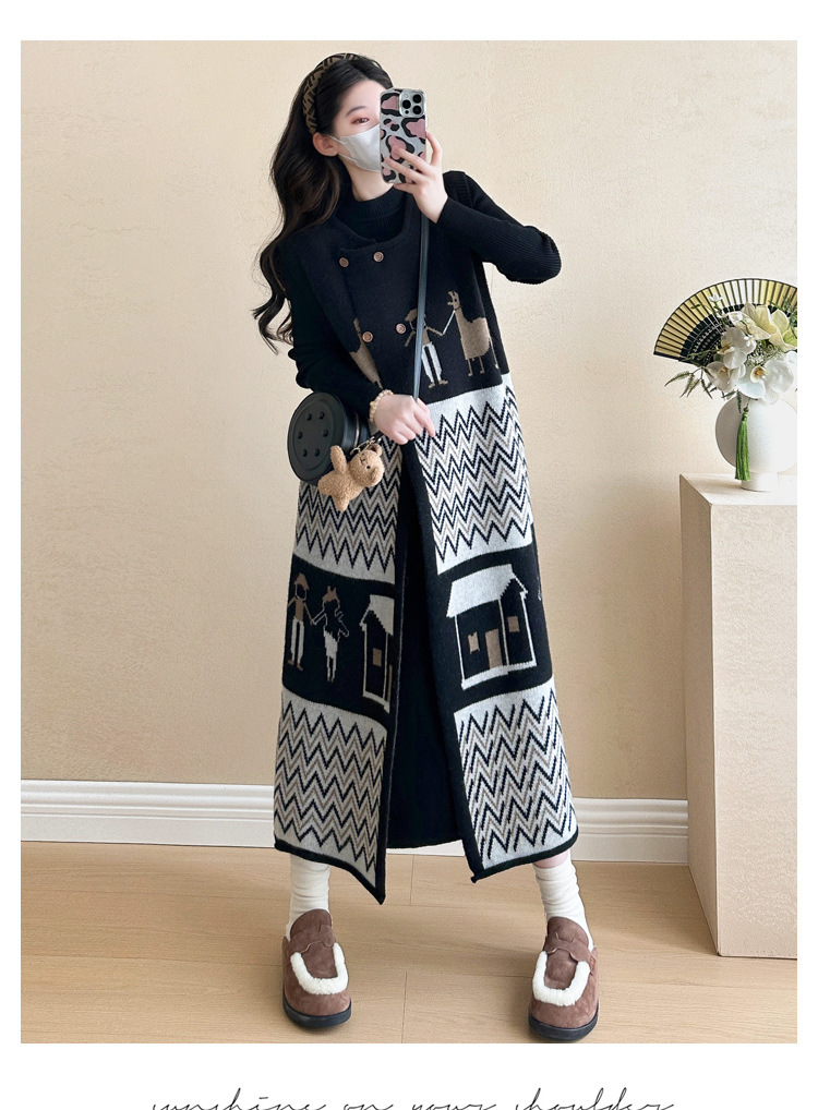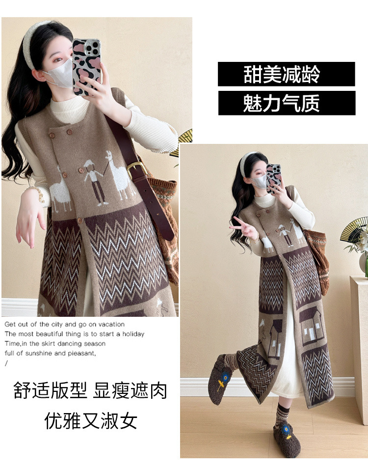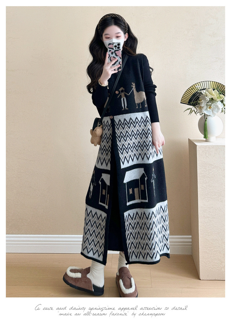 Одежда для беременных 2024 новый осенний ретро трикотажный жилет платье для беременных мам набор из двух частей осенний и зимний набор прилив