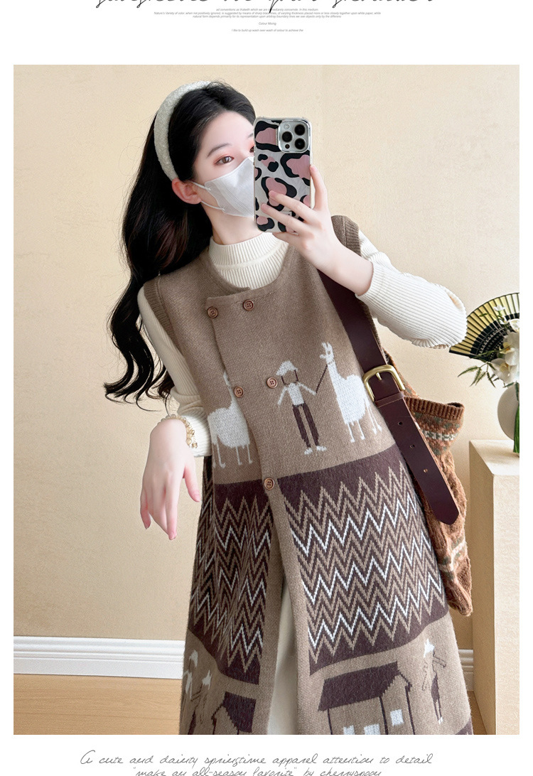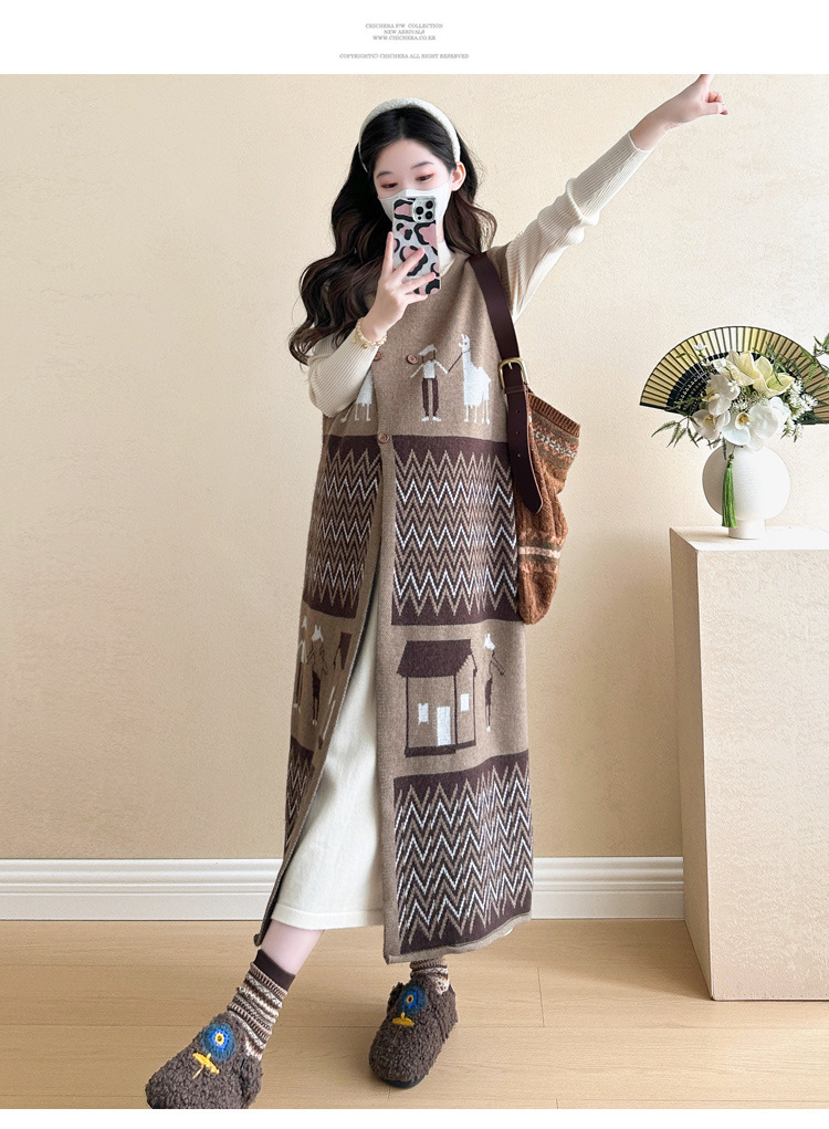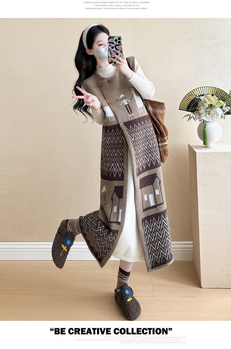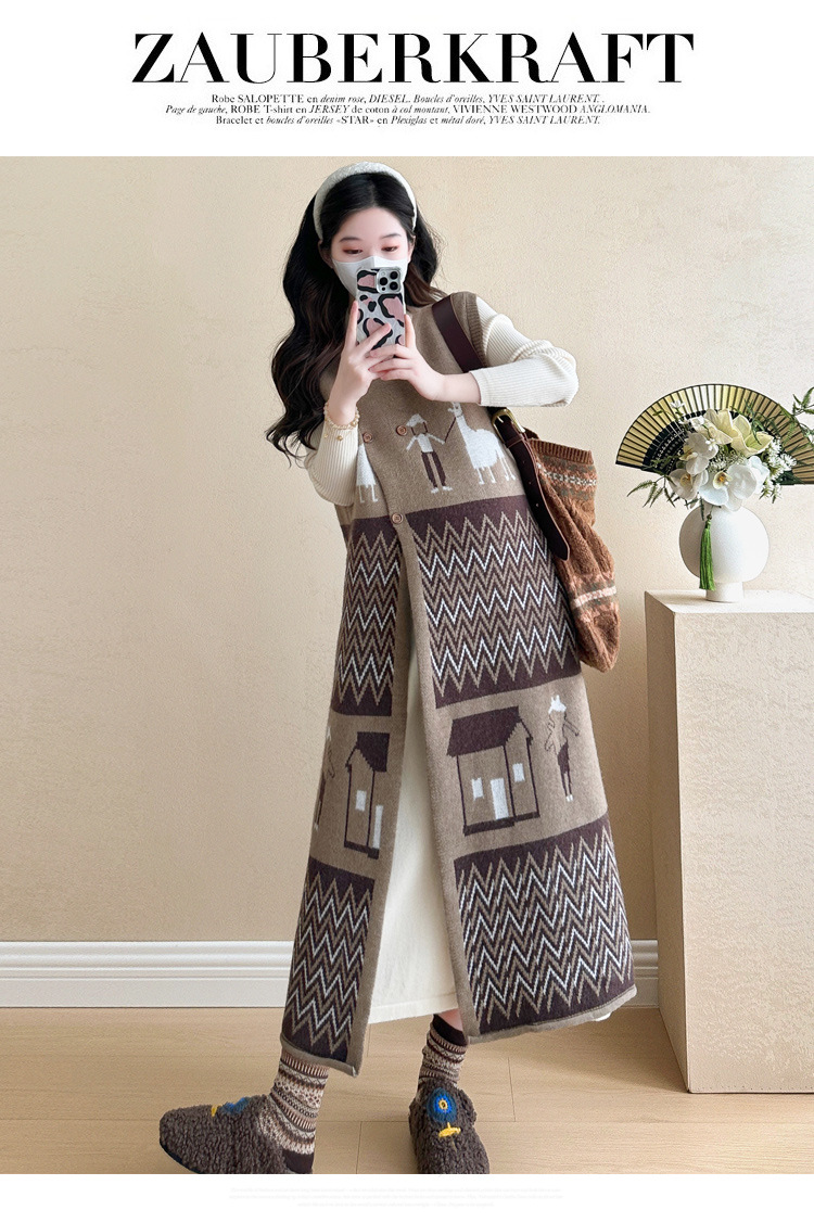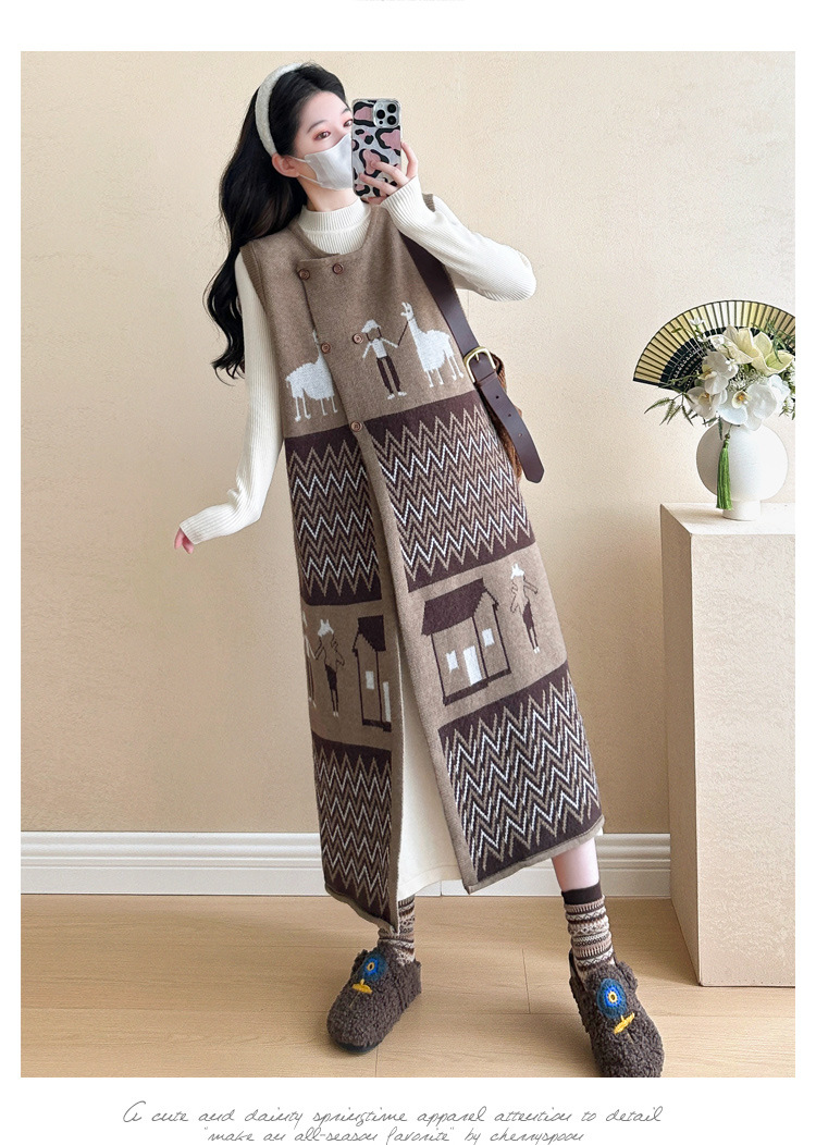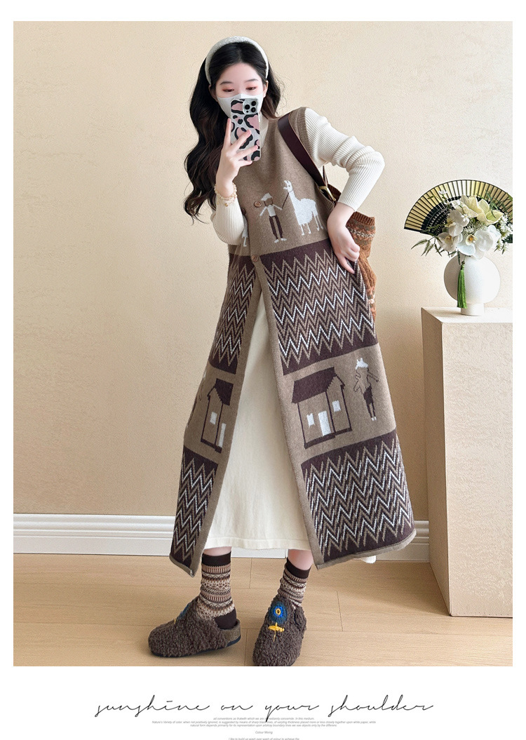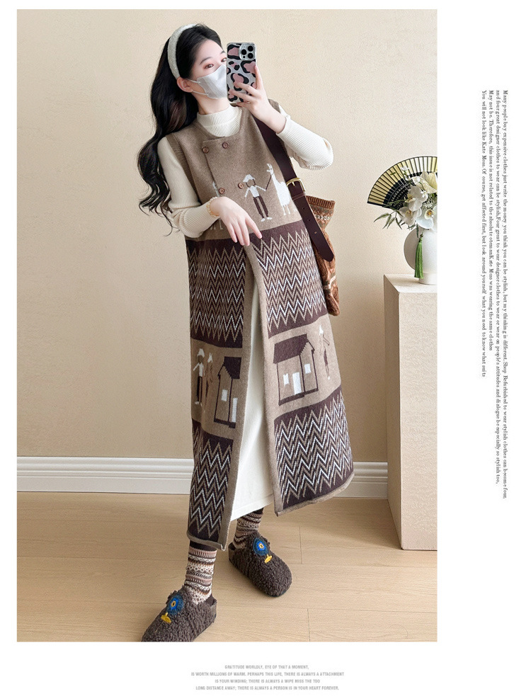 Одежда для беременных 2024 новый осенний ретро трикотажный жилет платье для беременных мам набор из двух частей осенний и зимний набор прилив