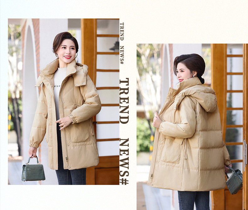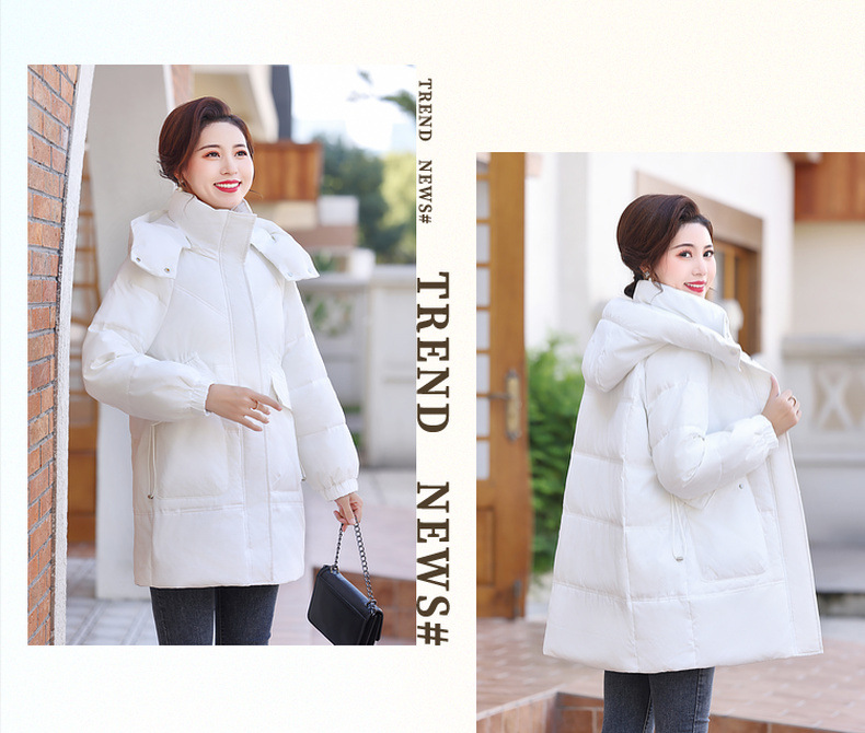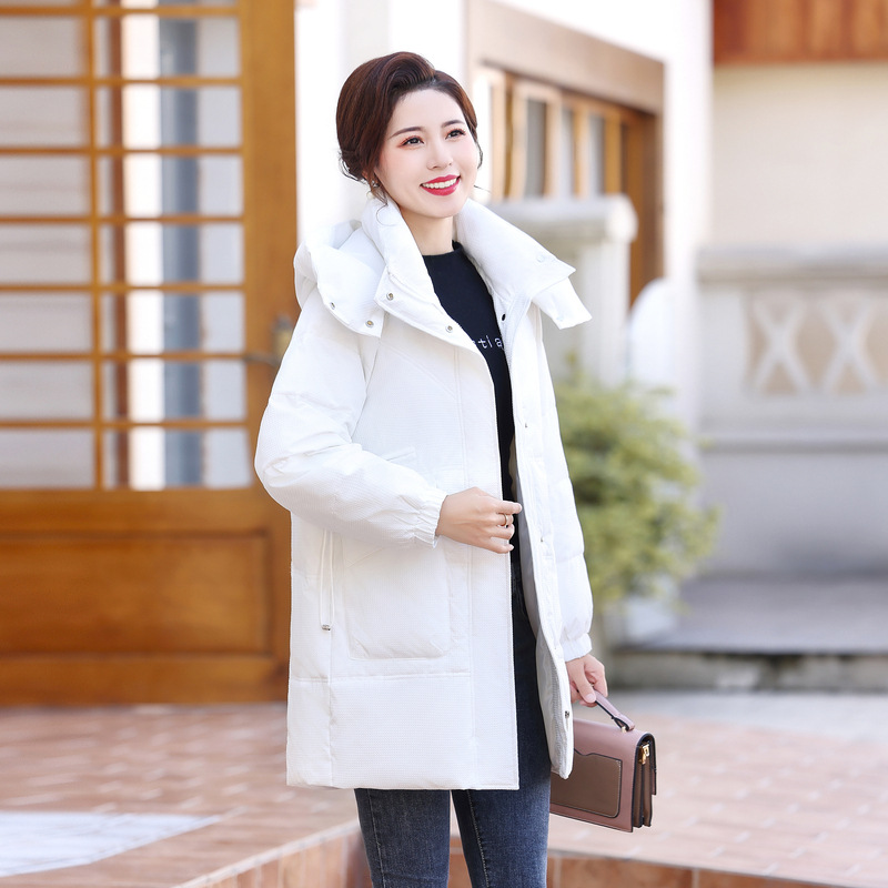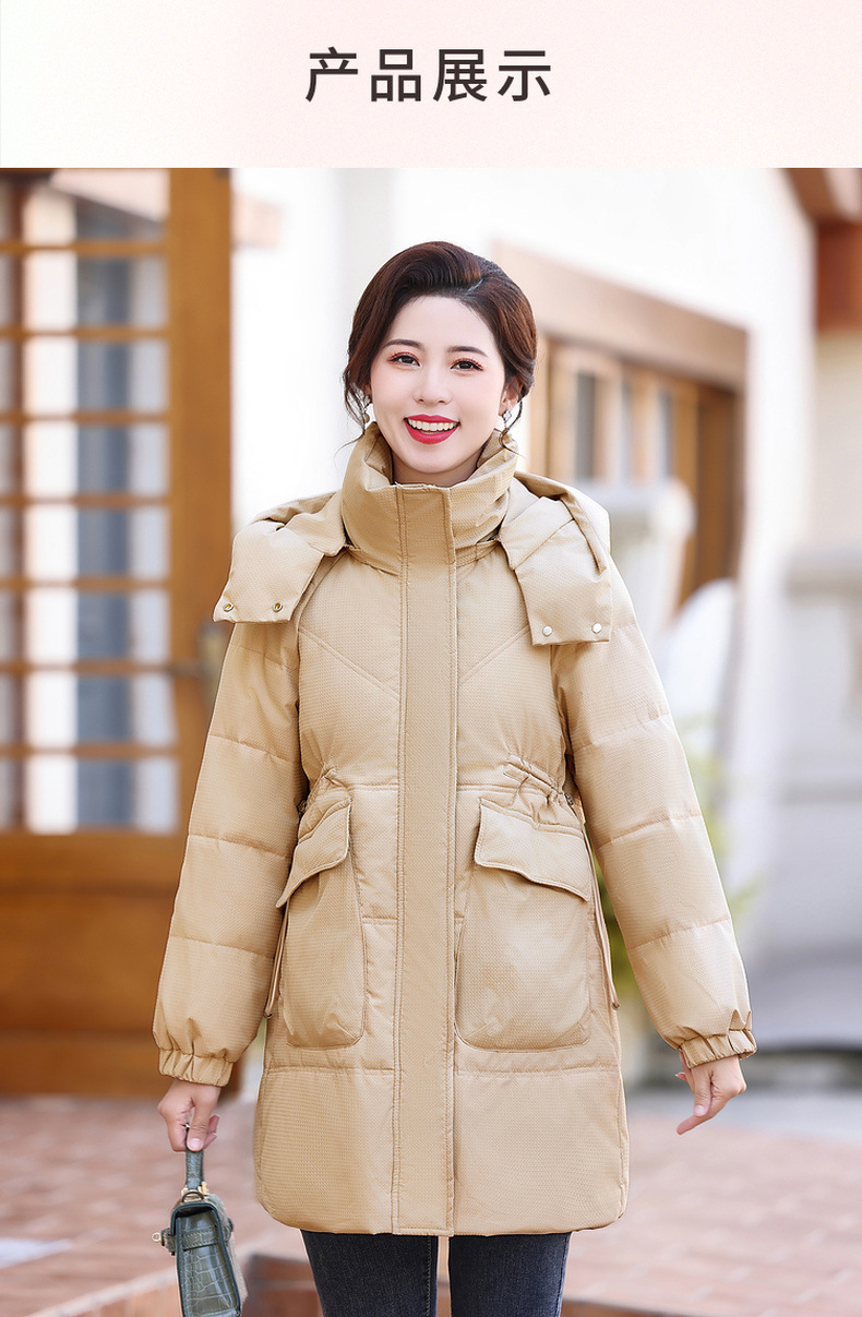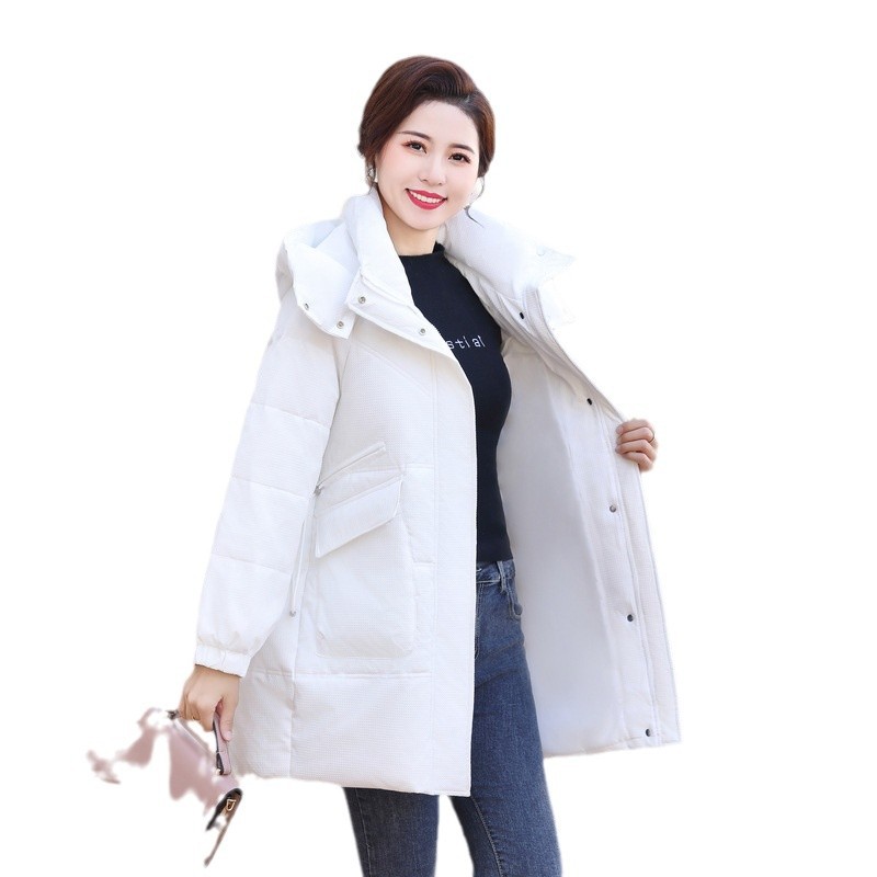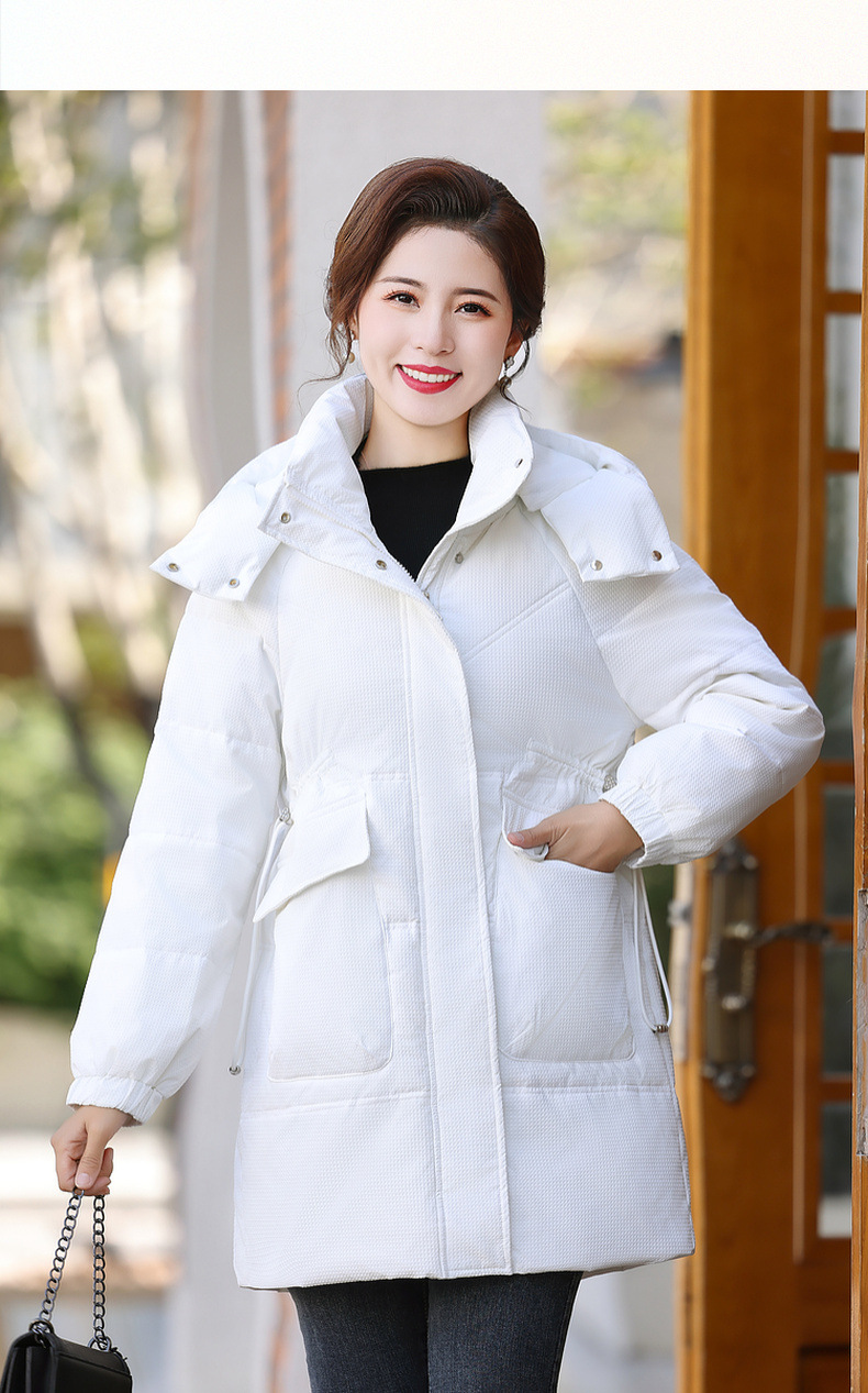 Белый утиный пуховик женский средний и длинный 2024 новый осенний и зимний мода утолщение талии повседневная дикая куртка прилив