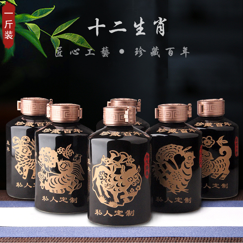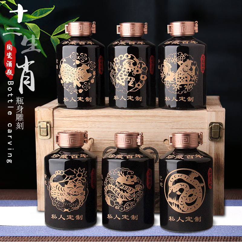 Цзиндэчжэнь керамическая винная бутылка винный алтарь 1 фунт с резьбой 12 знаков зодиака декоративная печать домашнего вина