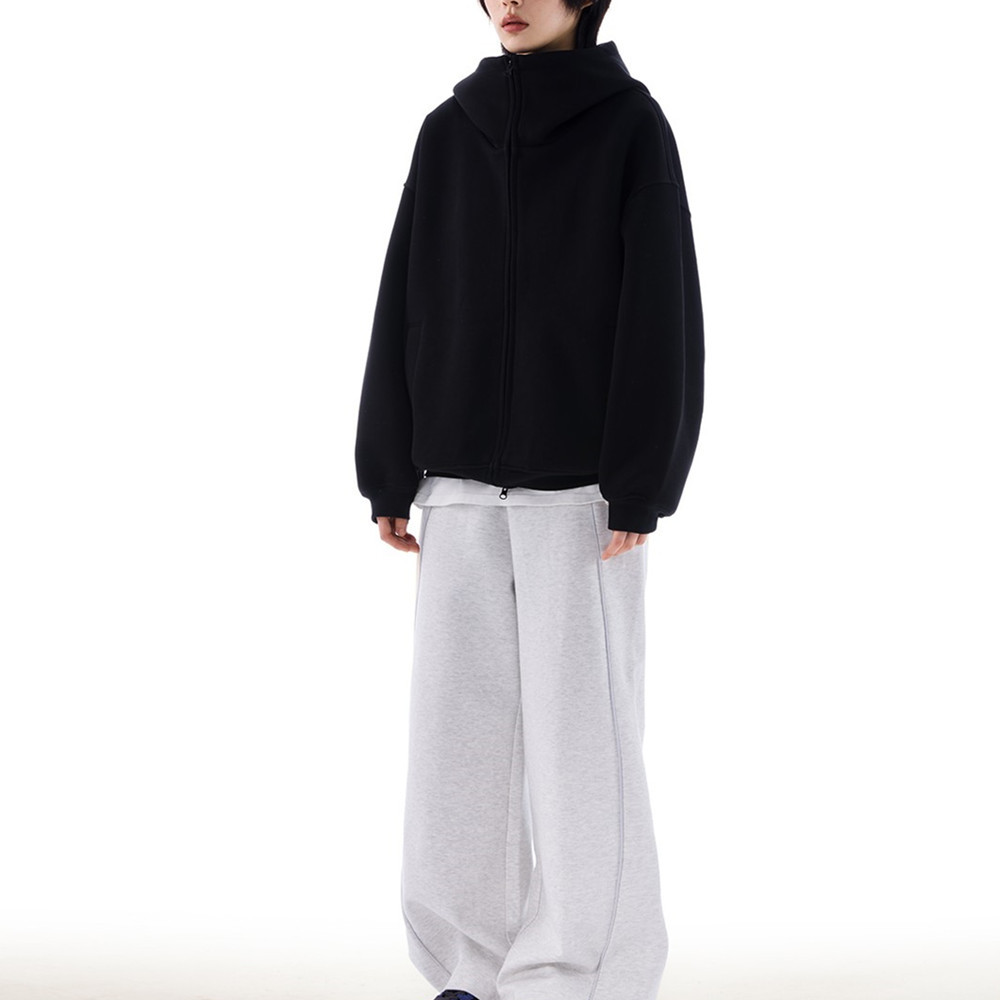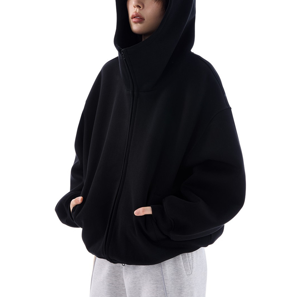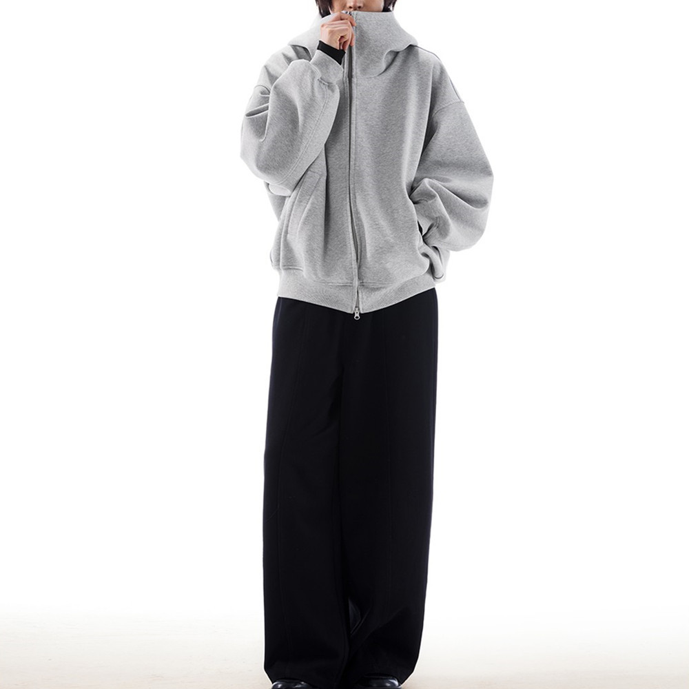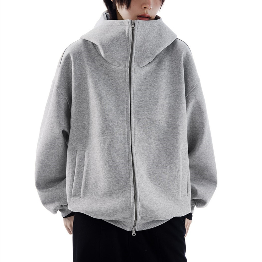Американский силуэт серый свитер с капюшоном для мужчин и женщин осенью и зимой новый свободный тяжелый слой воздуха плюс кашемировый кардиган