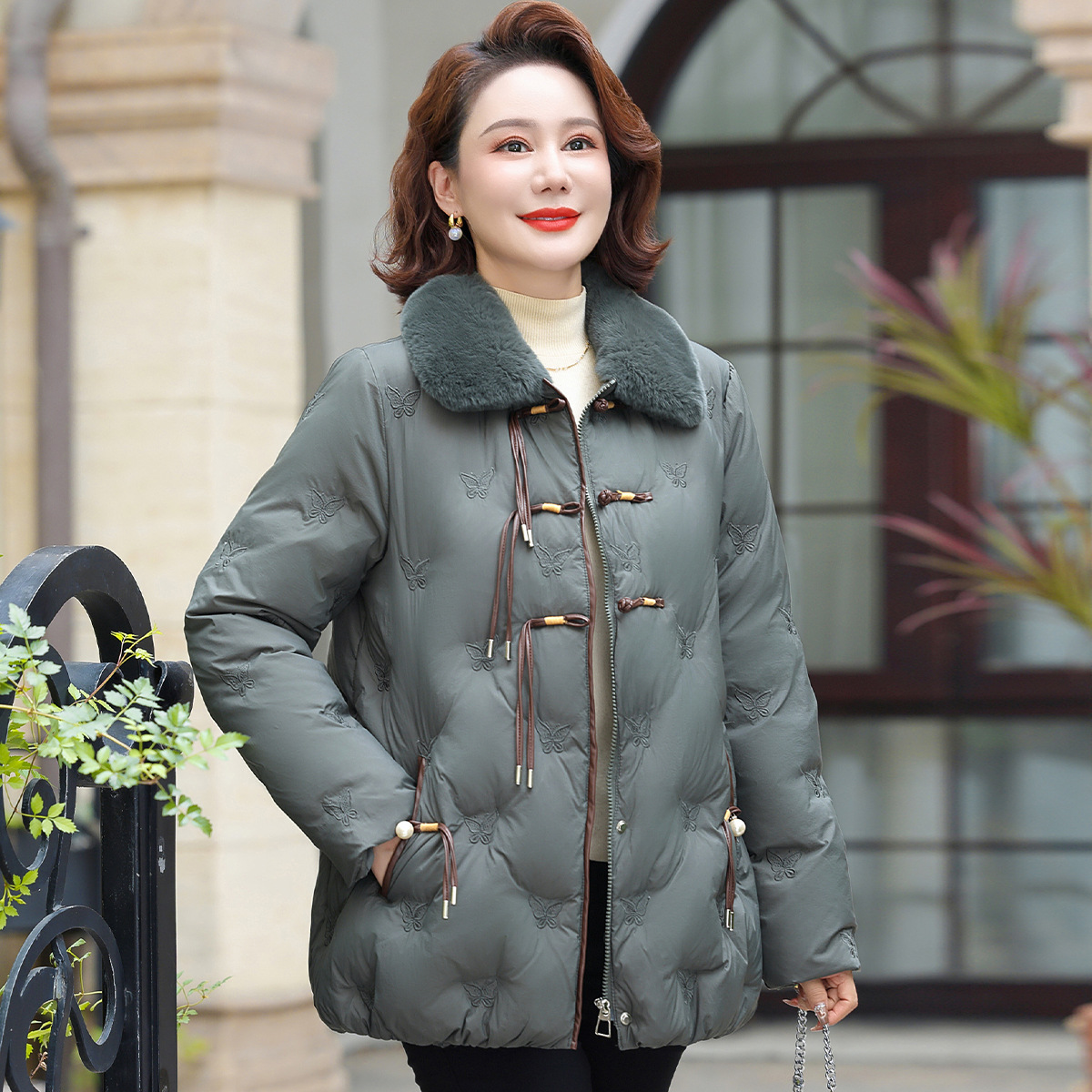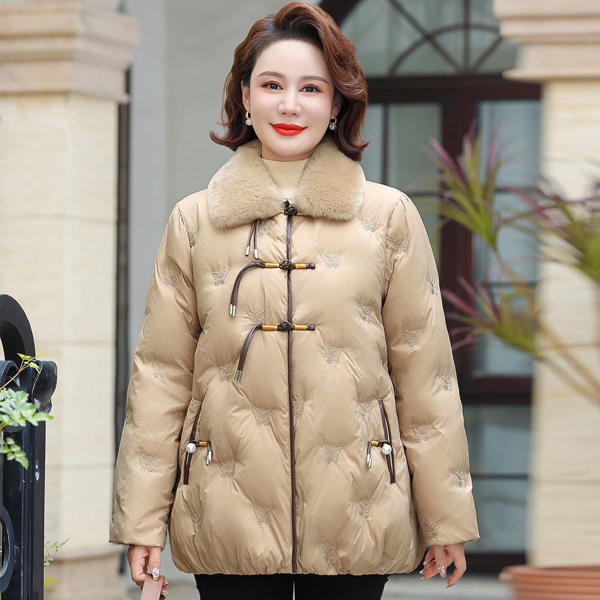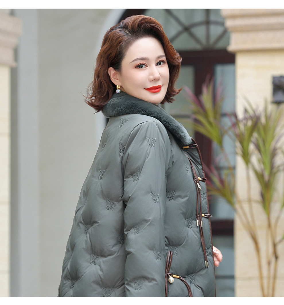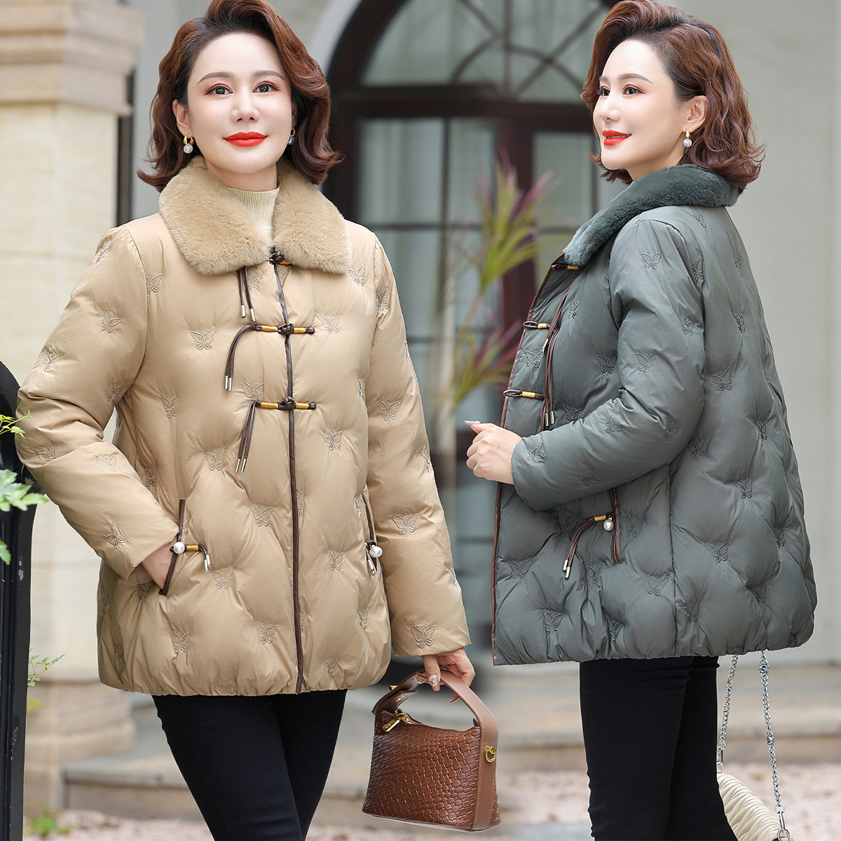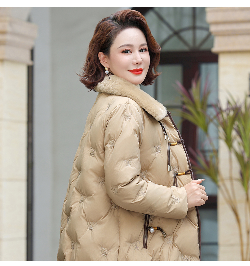 Белый утиный пуховик 2024 зимний новый средний и пожилой мамы утолщенный модный холодный средний длинный шерстяной воротник
