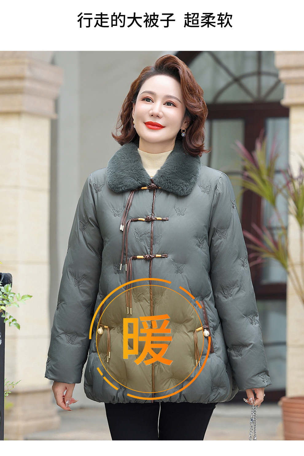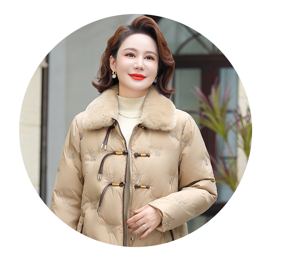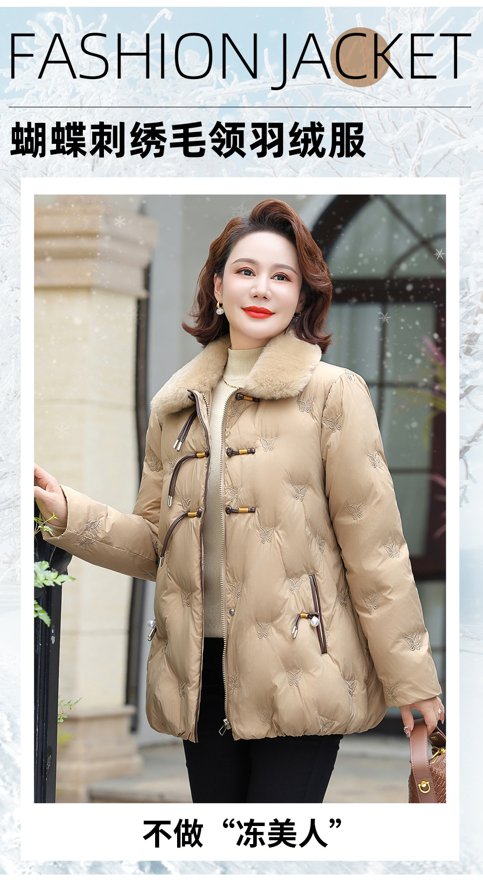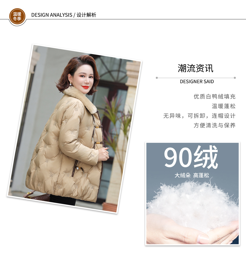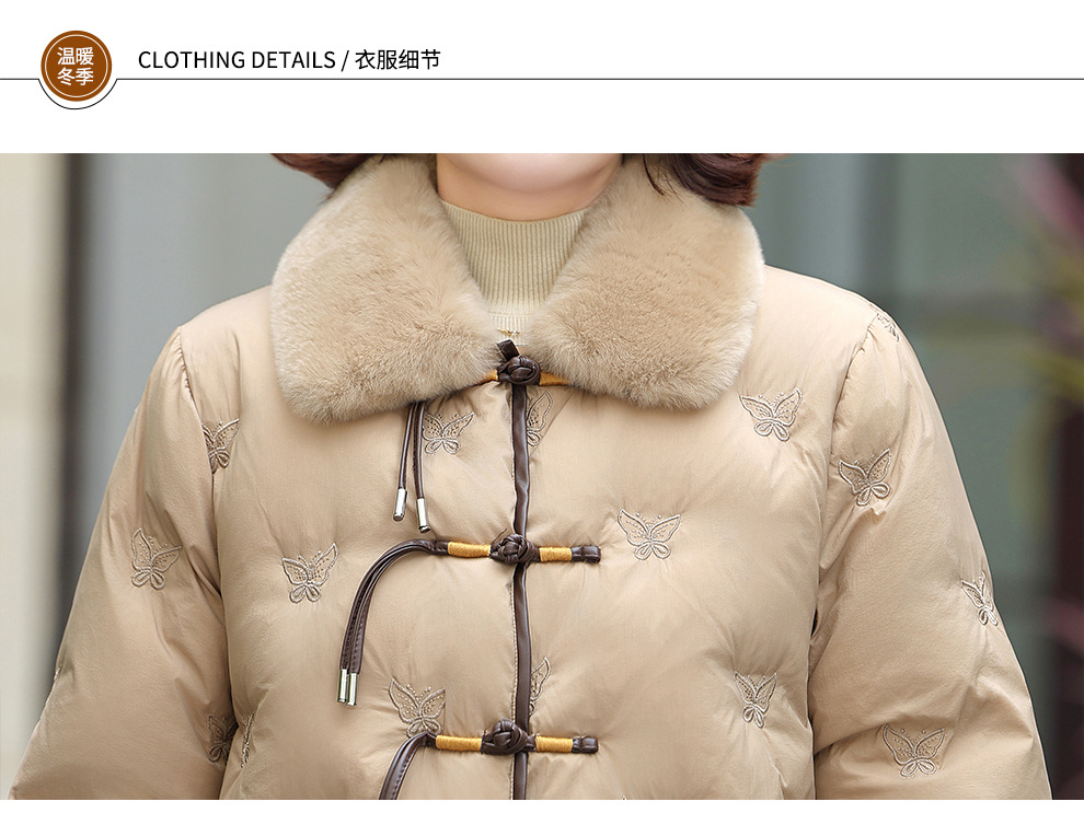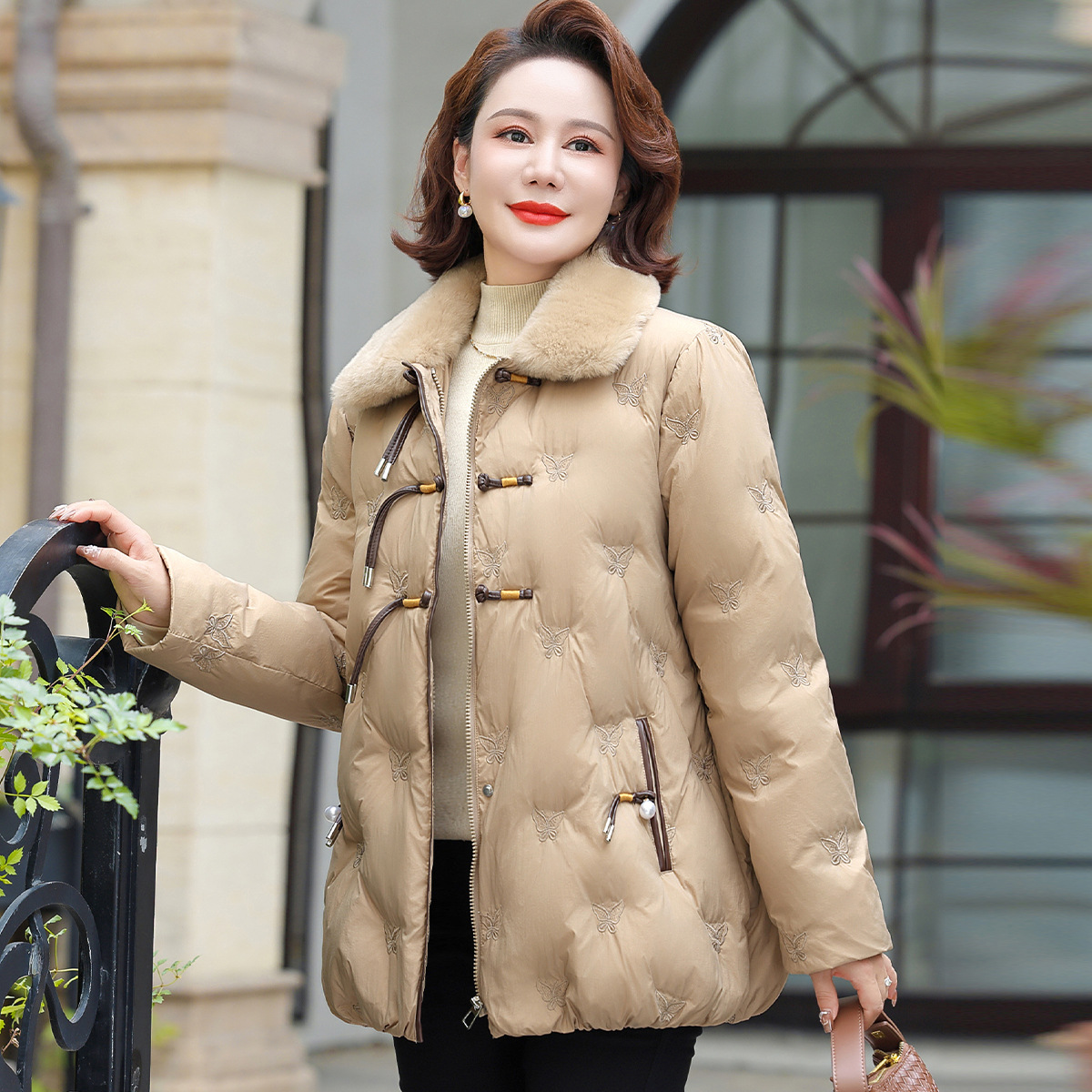 Белый утиный пуховик 2024 зимний новый средний и пожилой мамы утолщенный модный холодный средний длинный шерстяной воротник