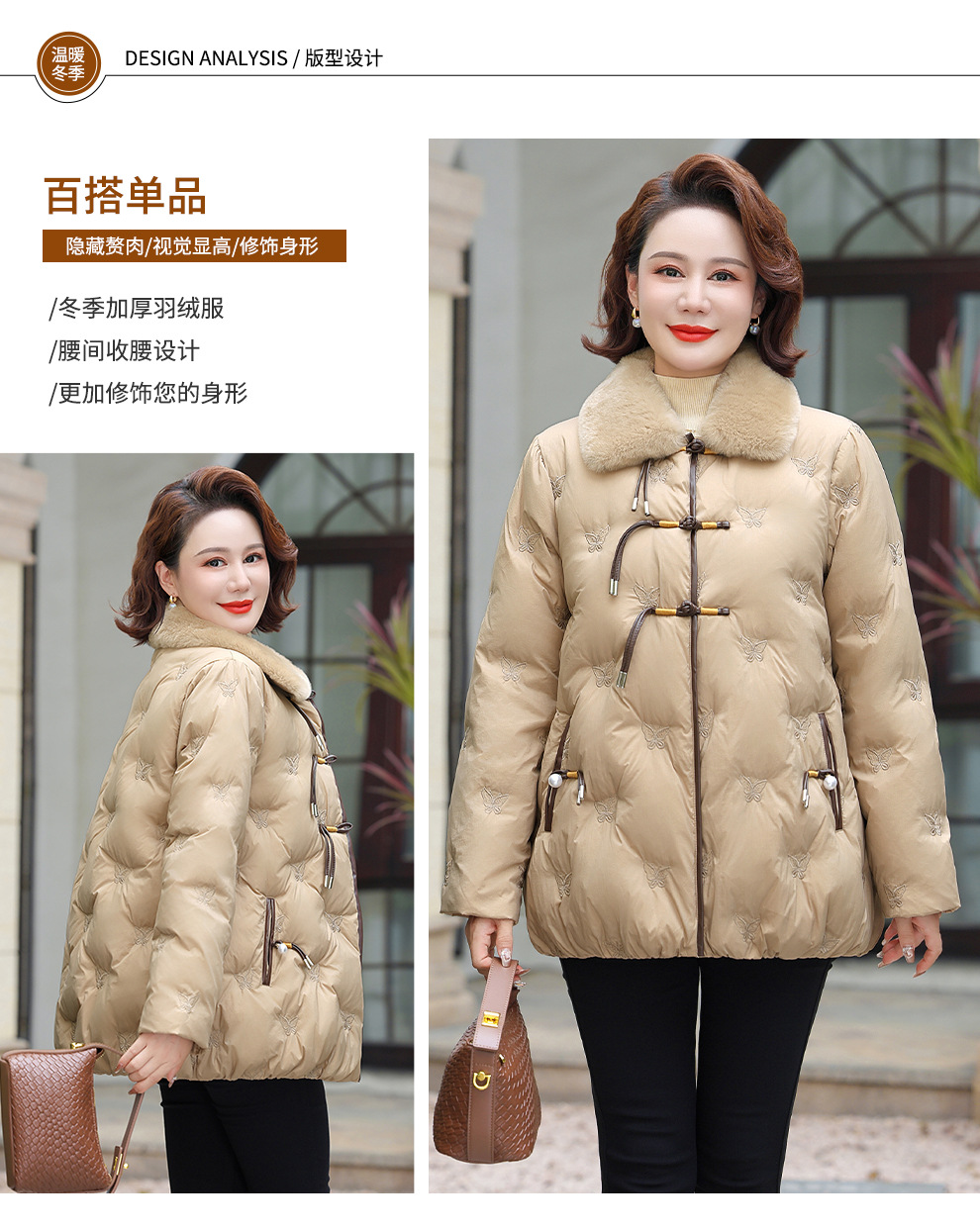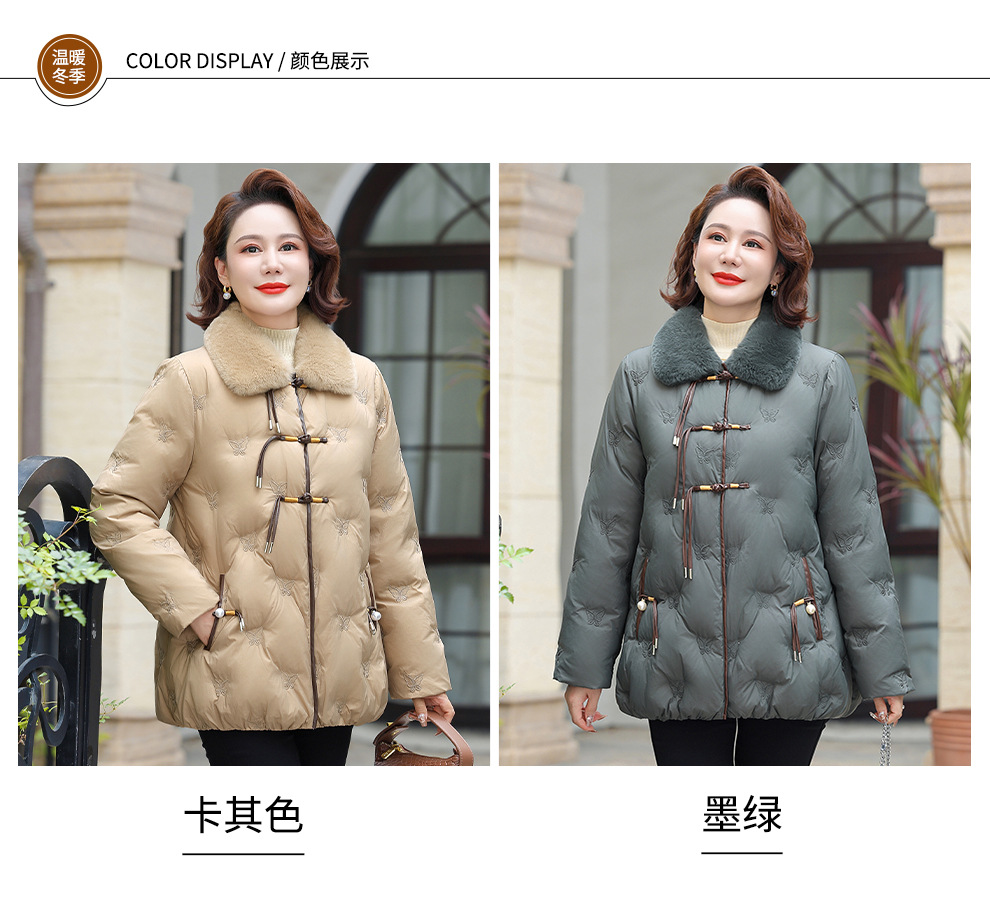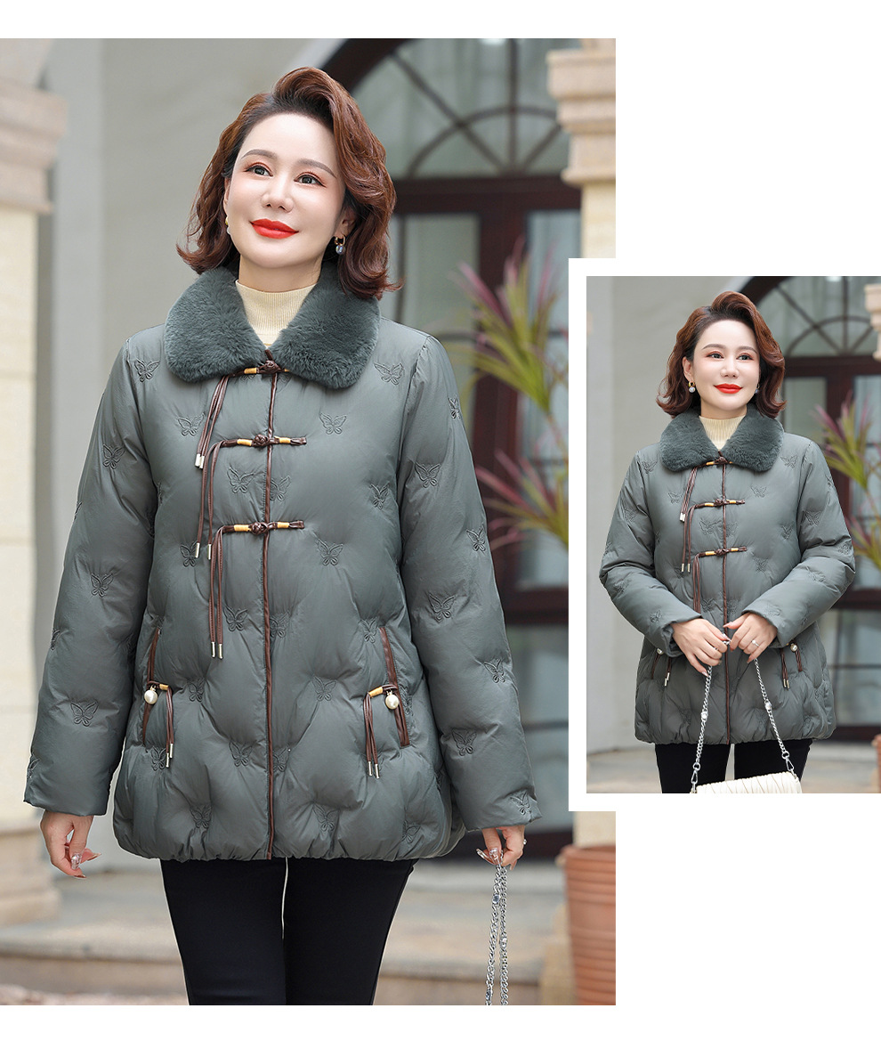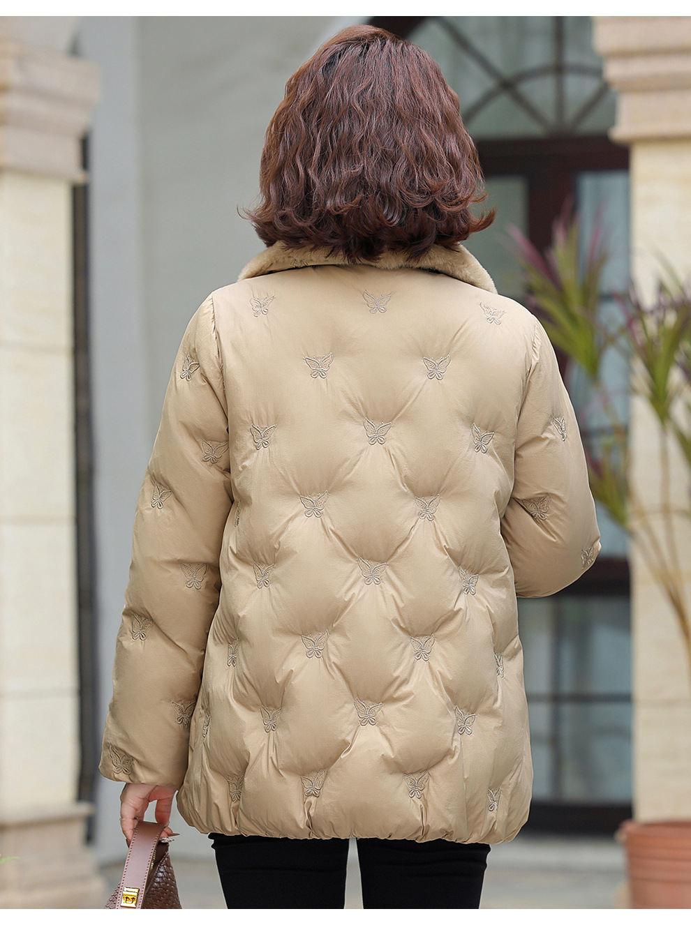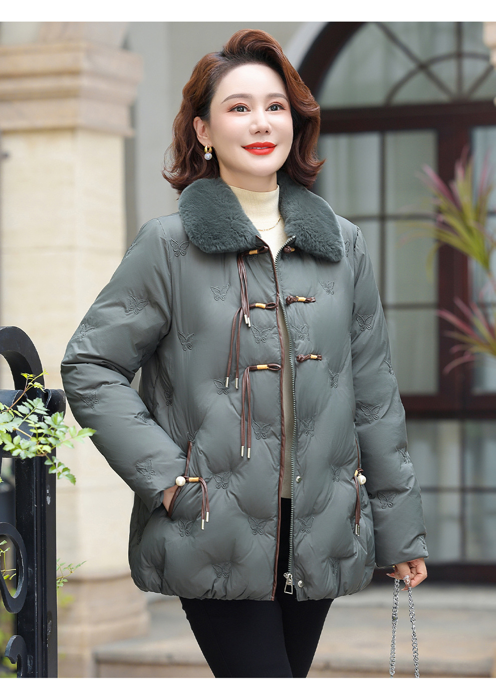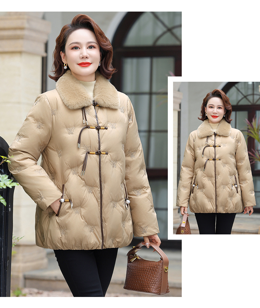 Белый утиный пуховик 2024 зимний новый средний и пожилой мамы утолщенный модный холодный средний длинный шерстяной воротник