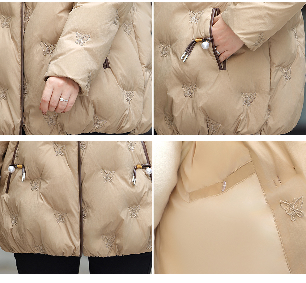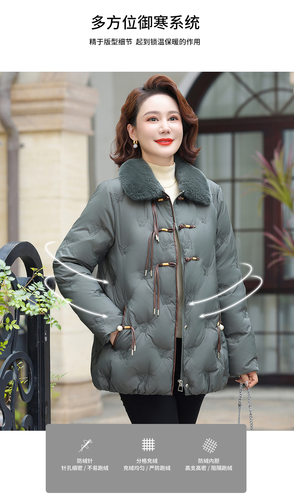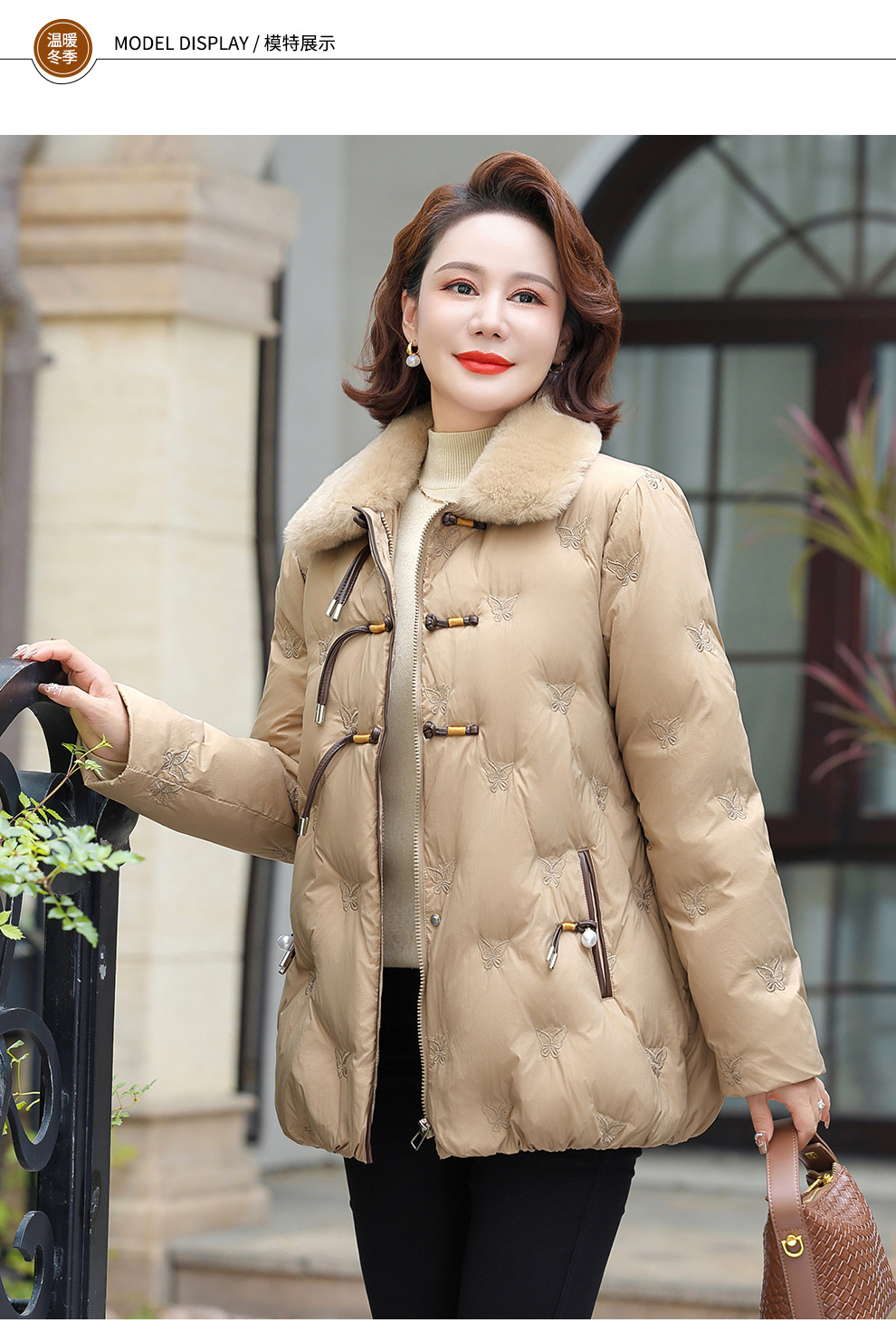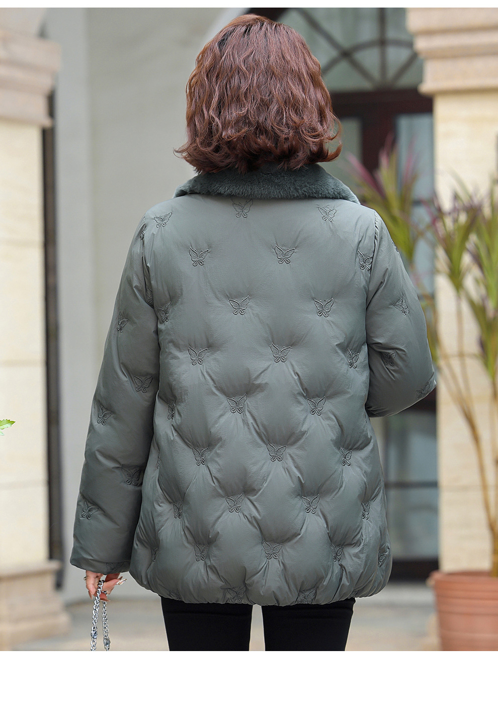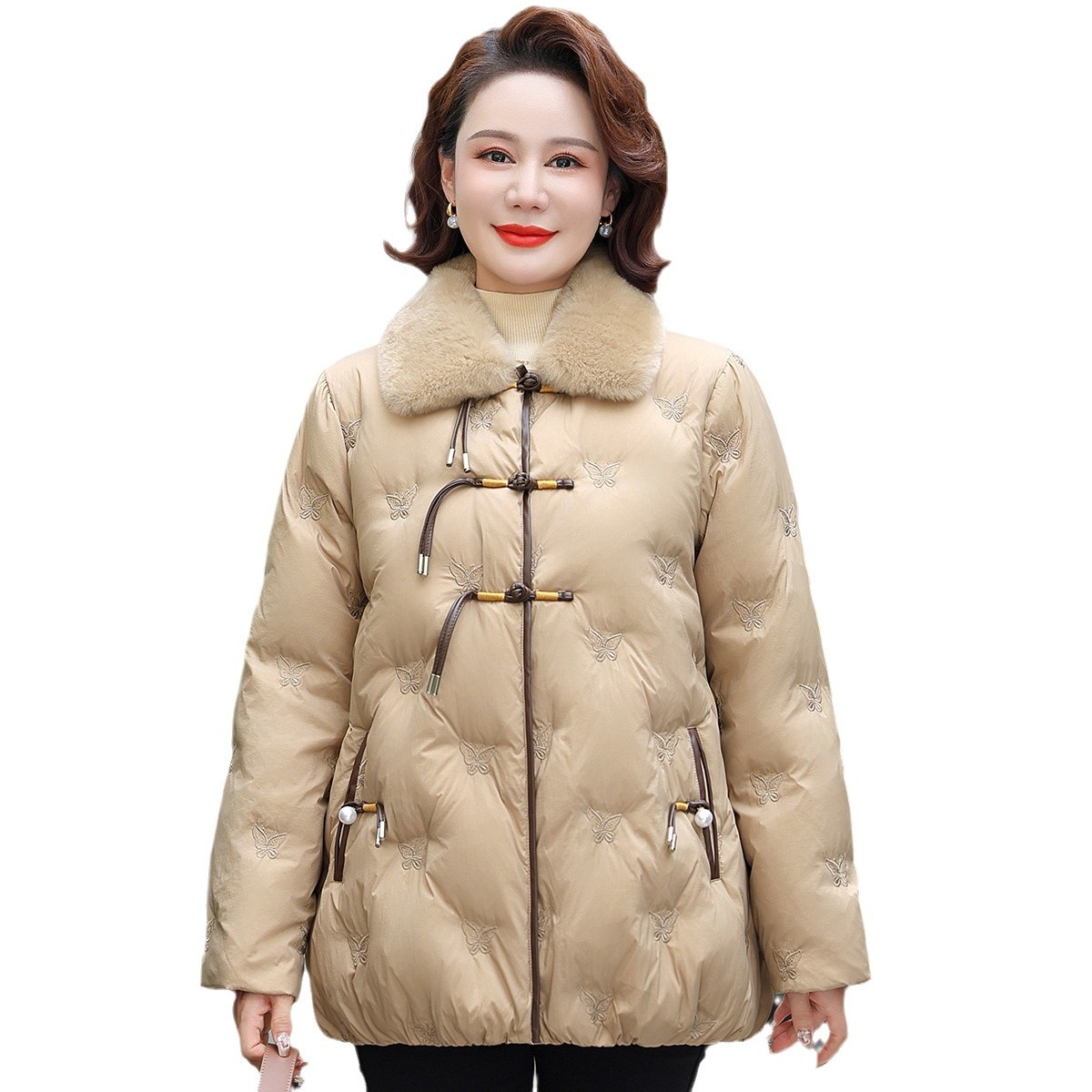 Белый утиный пуховик 2024 зимний новый средний и пожилой мамы утолщенный модный холодный средний длинный шерстяной воротник