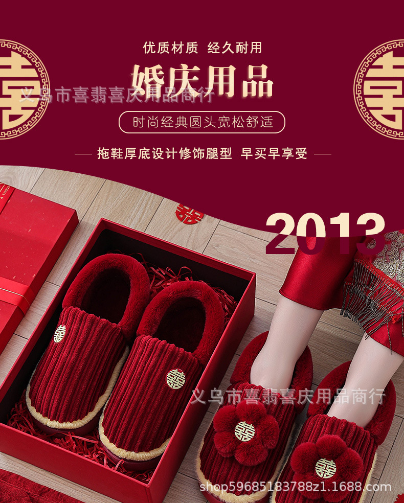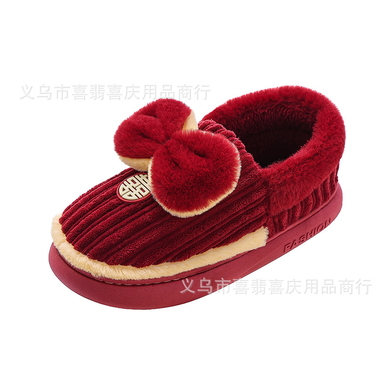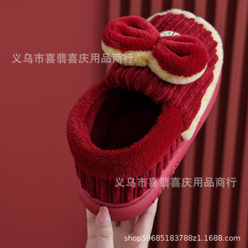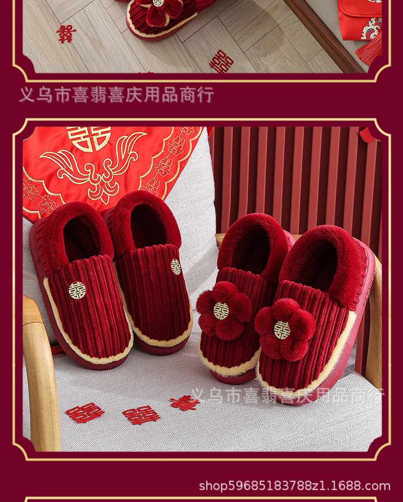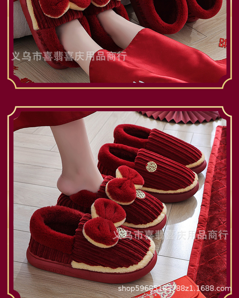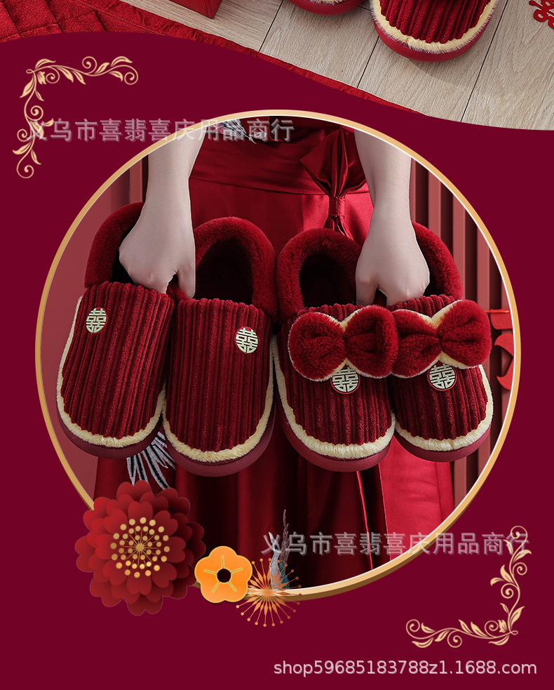 Зимние хлопковые тапочки для пар, свадебное торжество, бордовая пара, домашняя плюшевая приданое невесты, доступная роскошная подарочная коробка для молодоженов.