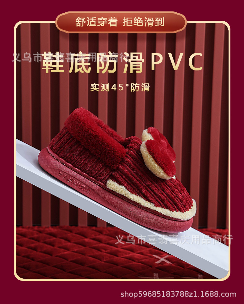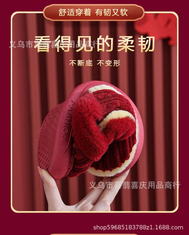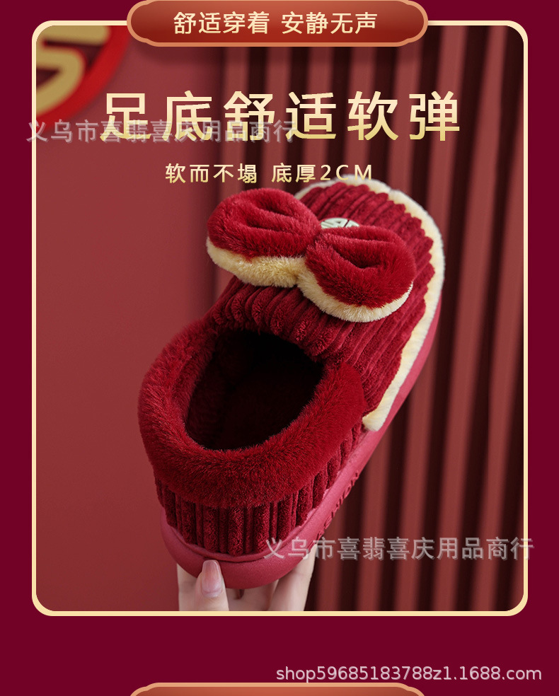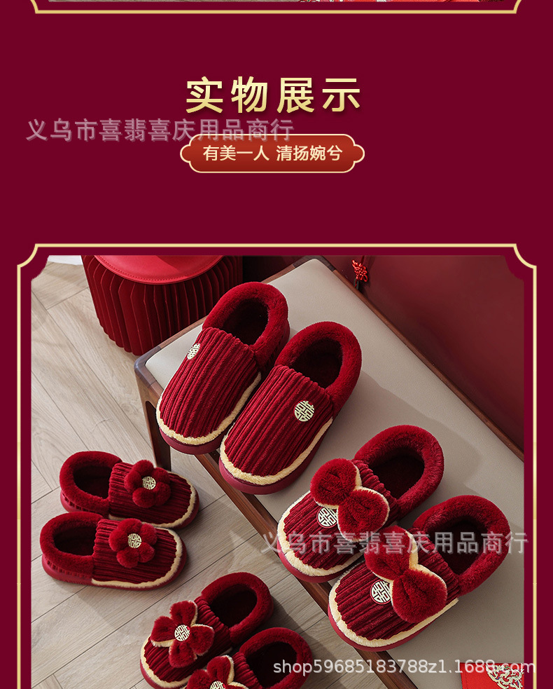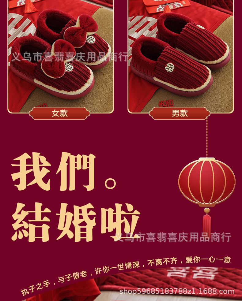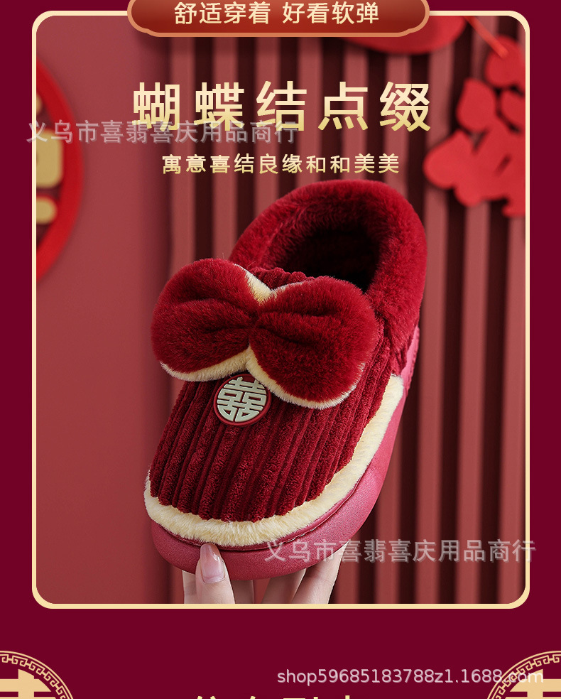 Зимние хлопковые тапочки для пар, свадебное торжество, бордовая пара, домашняя плюшевая приданое невесты, доступная роскошная подарочная коробка для молодоженов.